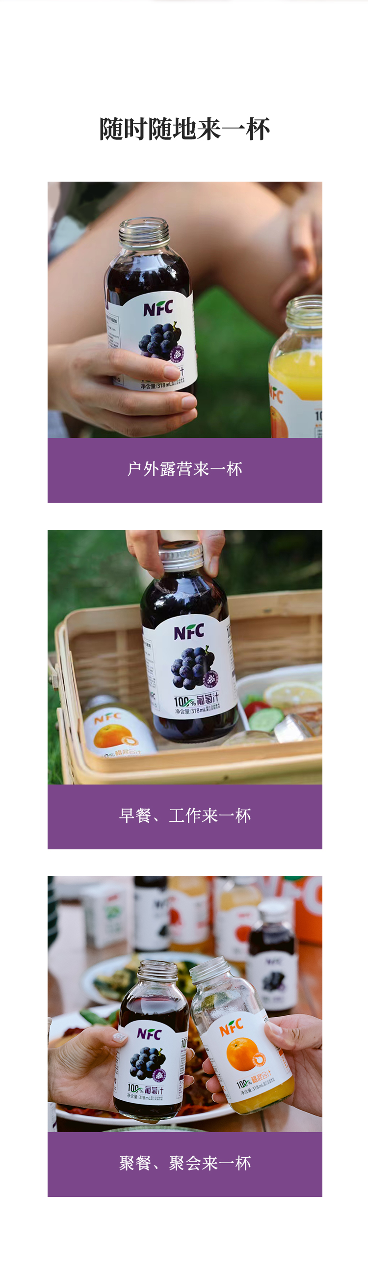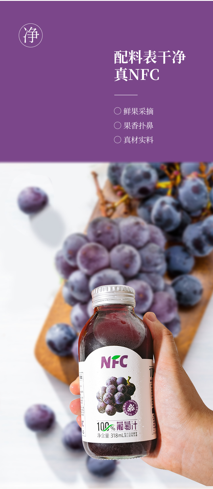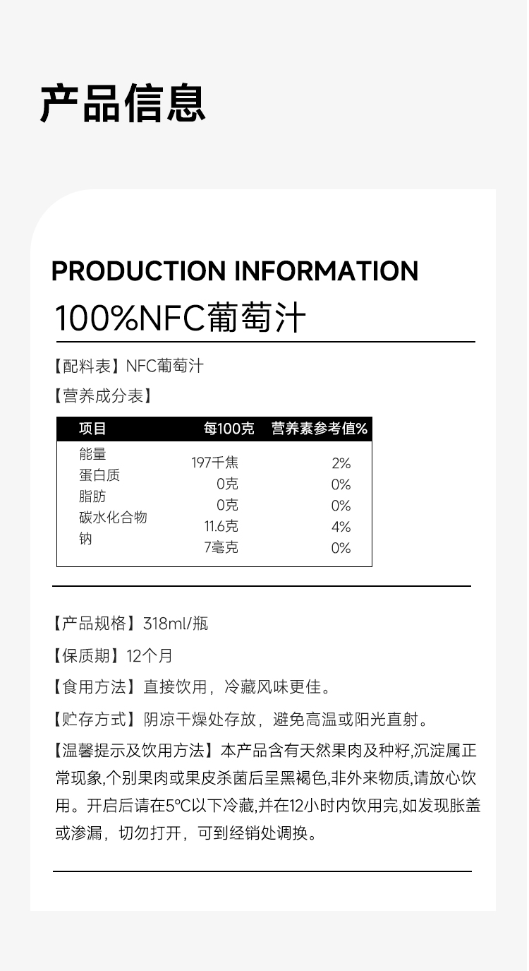 【新疆帮扶】西域小白丨NFC果汁系列 葡萄汁 318ml*5罐