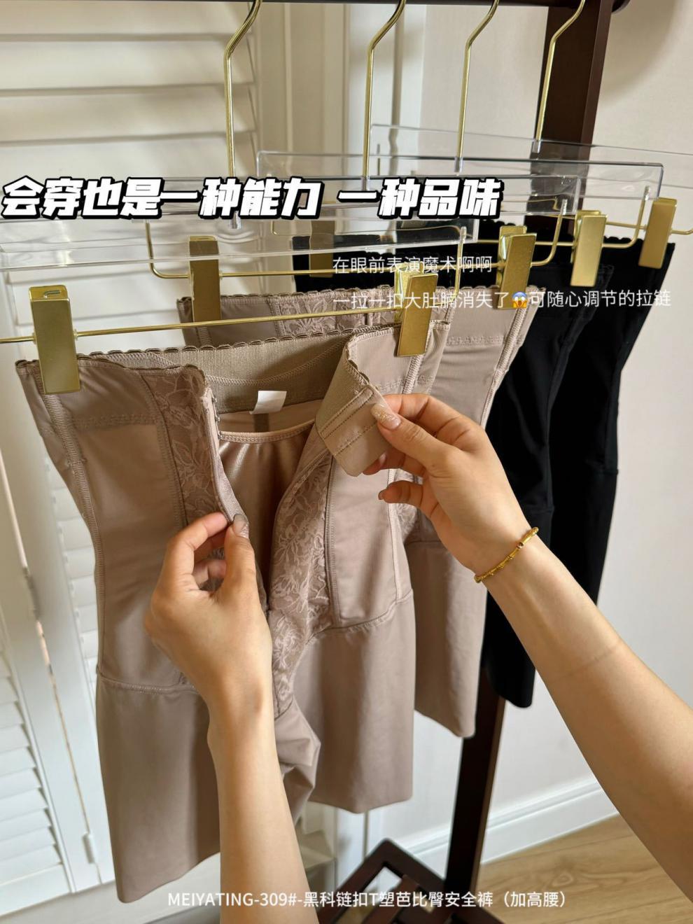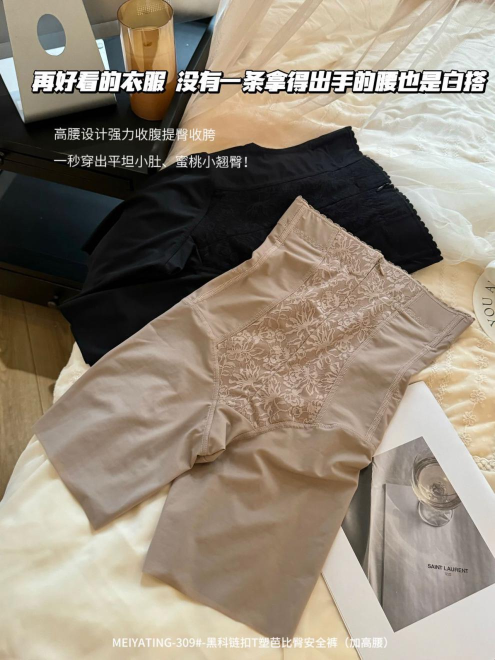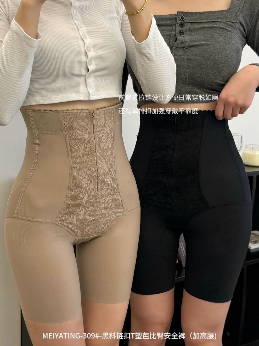 拉链排口提花高腰塑身收腹裤不卷边舒适修身美体平角束腰安全裤女