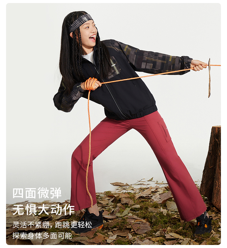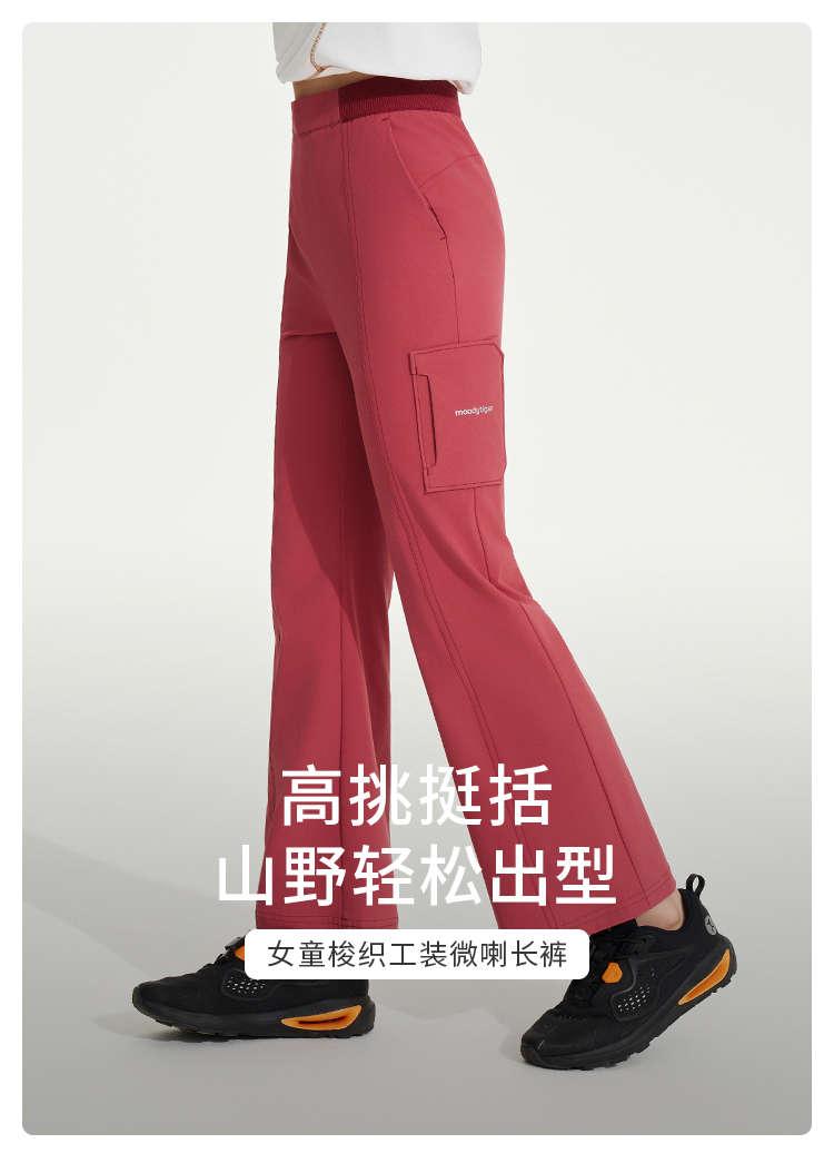 【24年秋新】moodytiger24秋新女童防风拒水户外运动透气速干长裤43211304