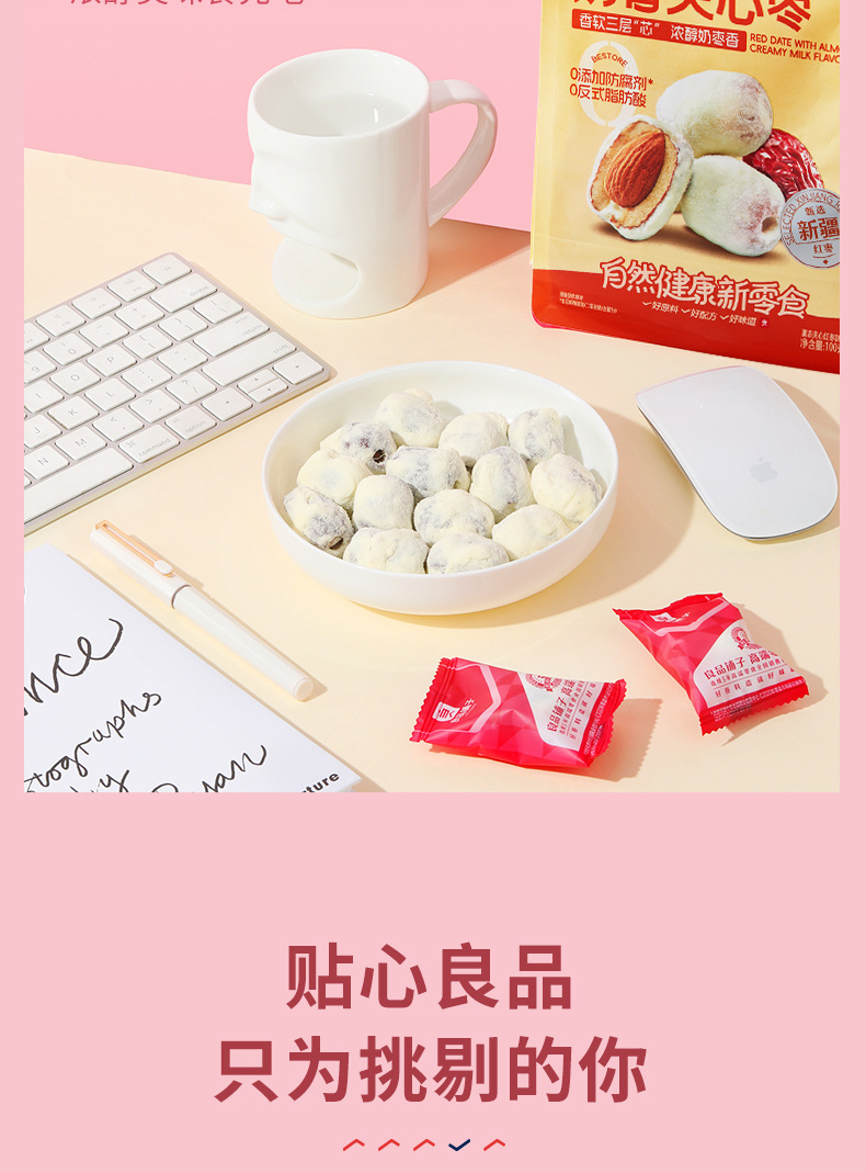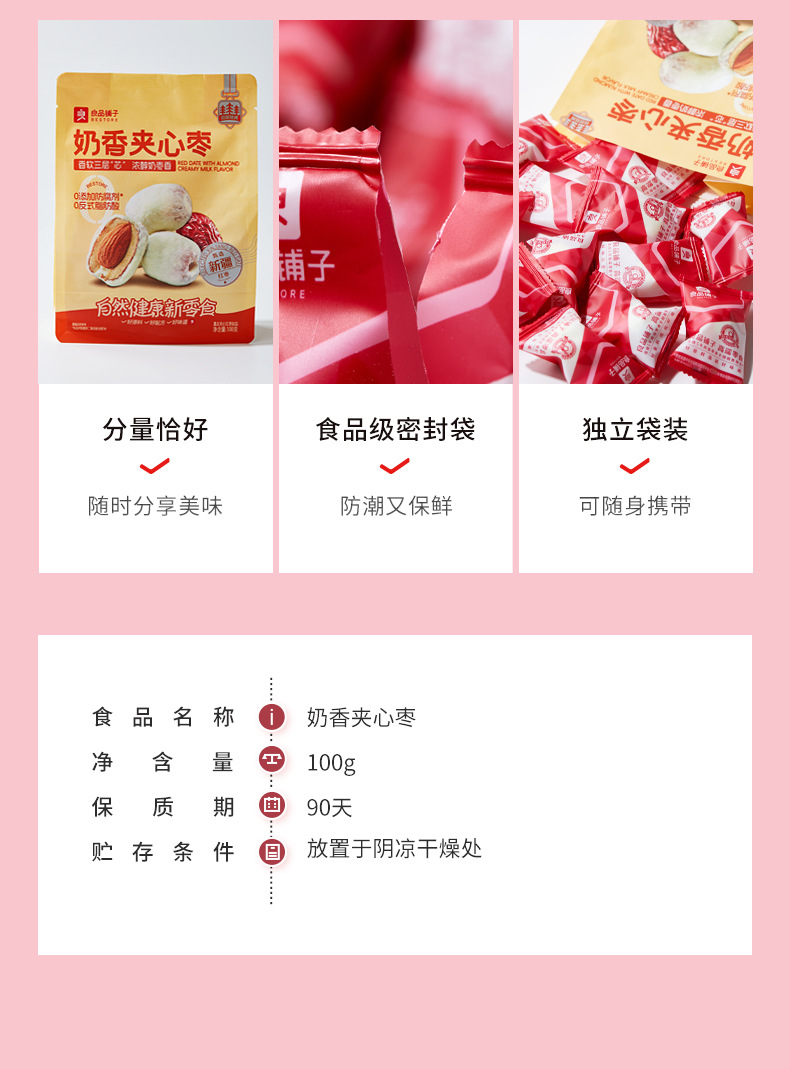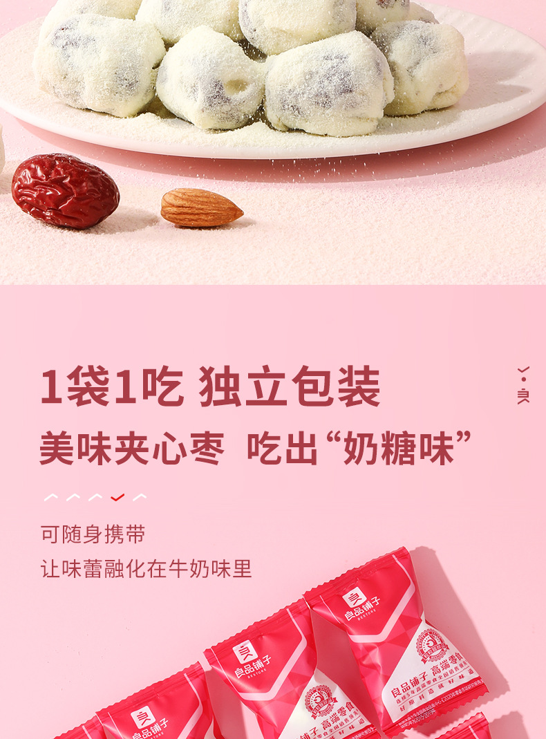 良品铺子奶香夹心枣100g红枣干货奶枣巴旦木夹心新疆特产奶酪零食