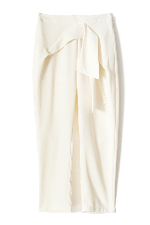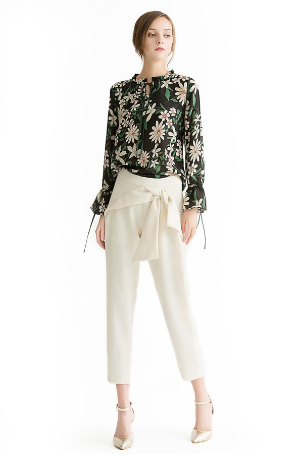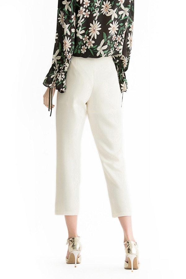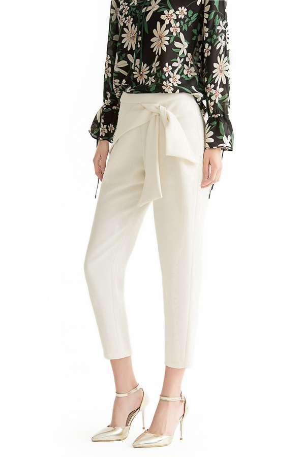 WEN&VI 米白色系带修身长裤 1105