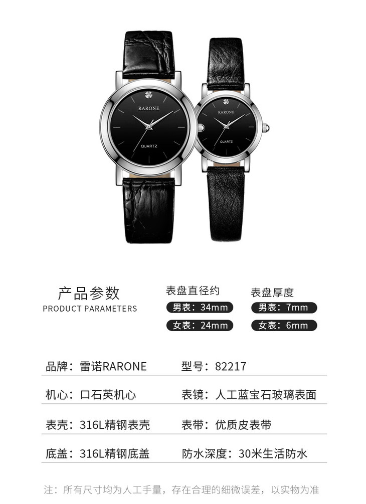 RARONE雷诺表高光系列石英对表82217
