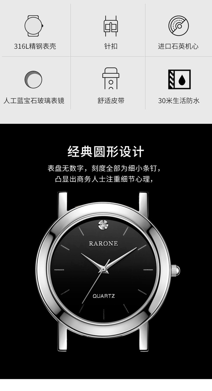 RARONE雷诺表摩登系列石英腕表830056
