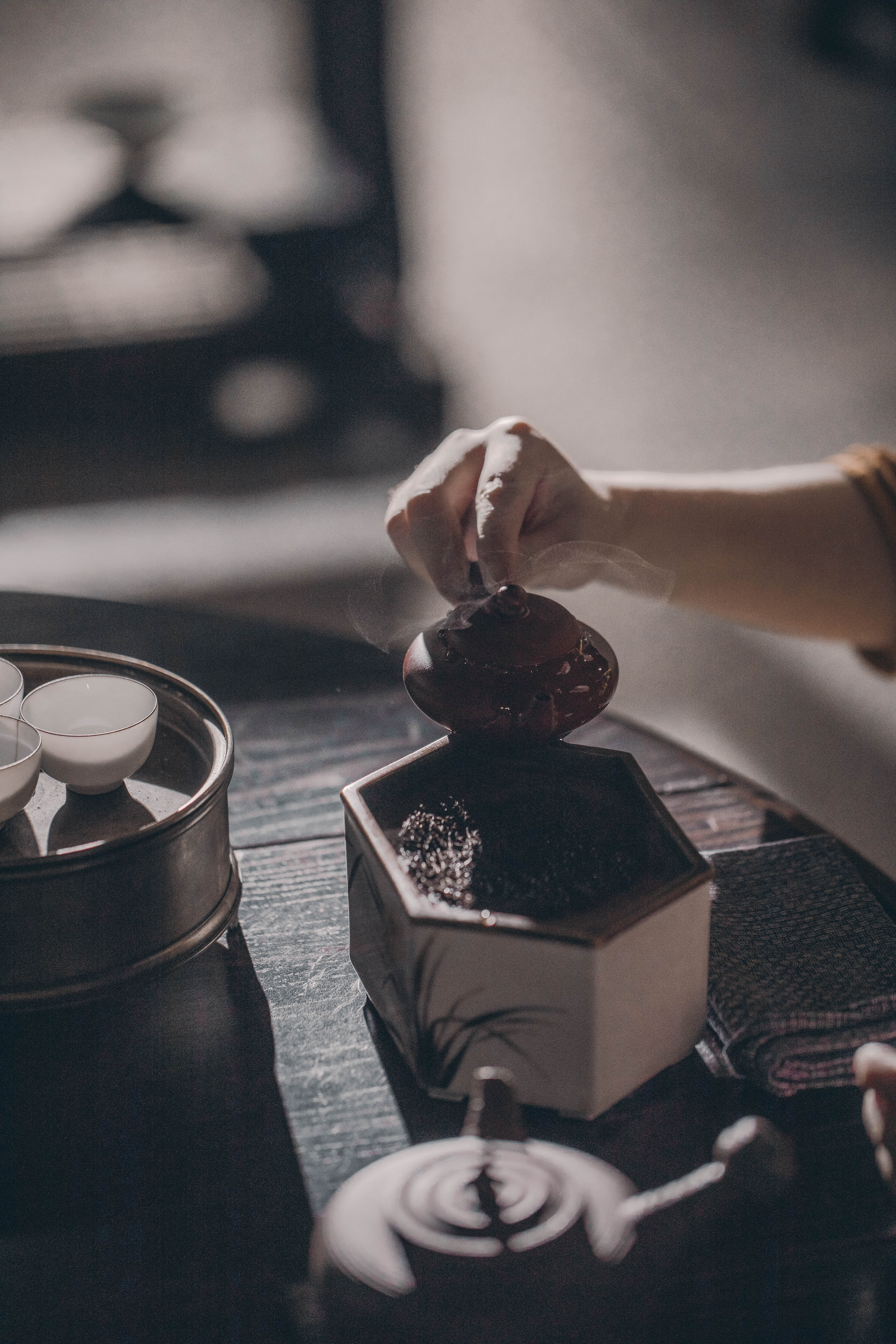 器型来源:清末潮州朱泥掇只小壶,老壶泥料疏朗松轻,拿捏轻盈。新壶用潮州朱泥,用传统制陶方法一次性拉坯成型经高温烧成;小巧精致,传统独孔出水流畅,断水干脆利落。