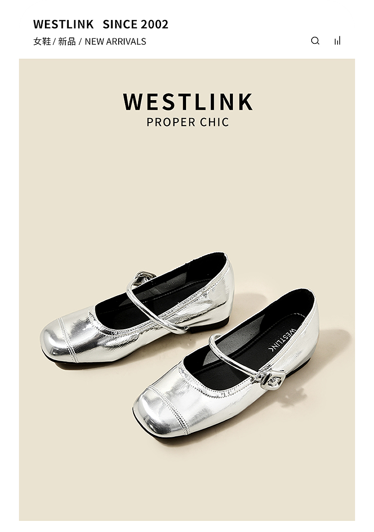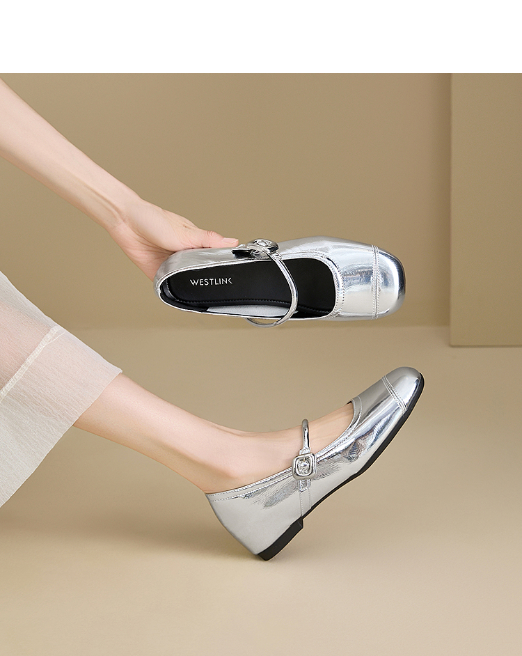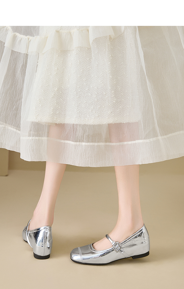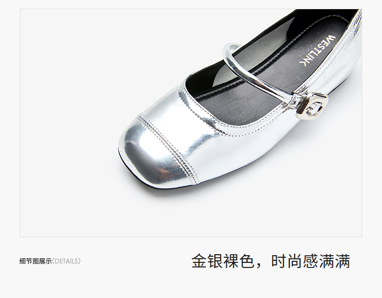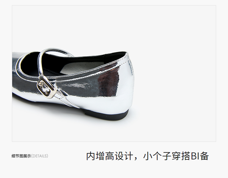 【限时秒杀】西遇玛丽珍鞋女新款秋季小个子内增高女鞋配裙子圆头银色单鞋K0057047