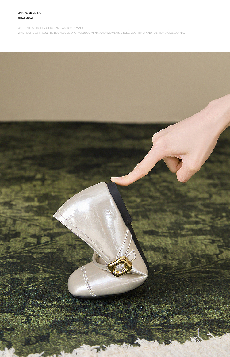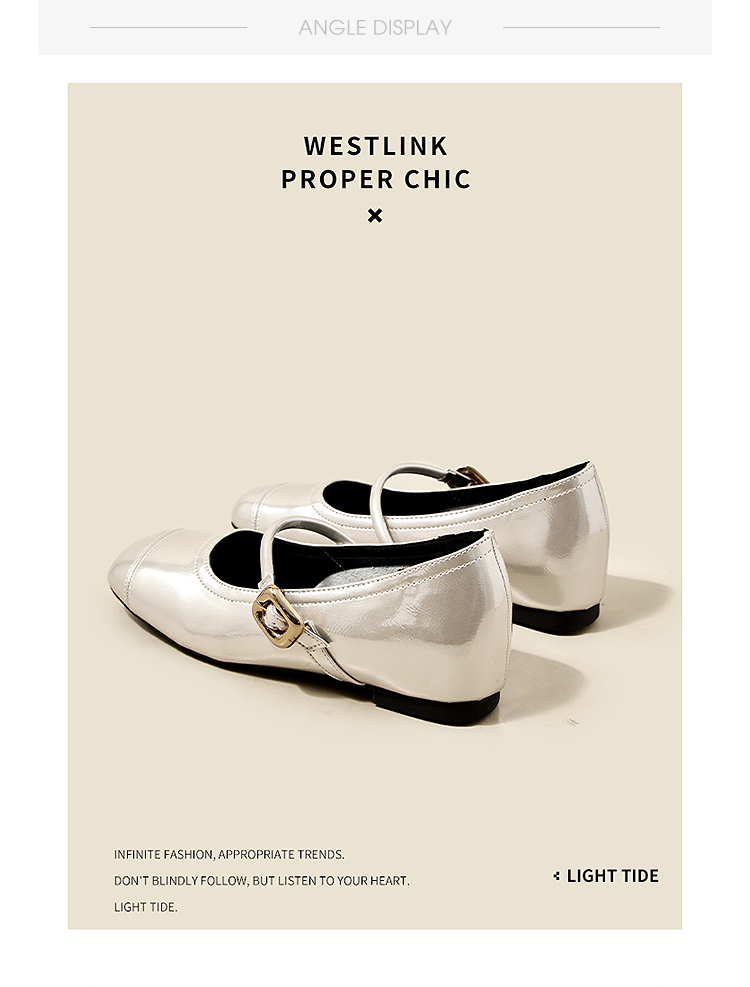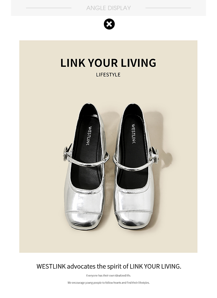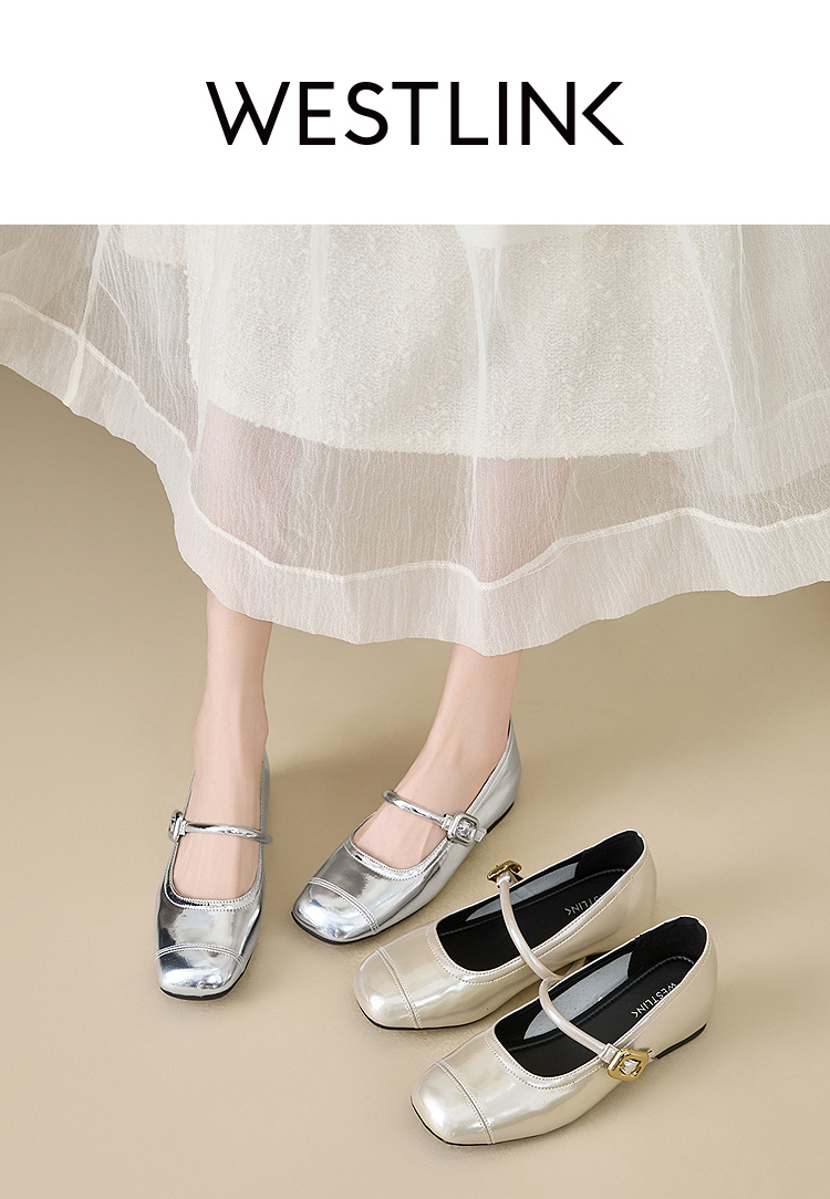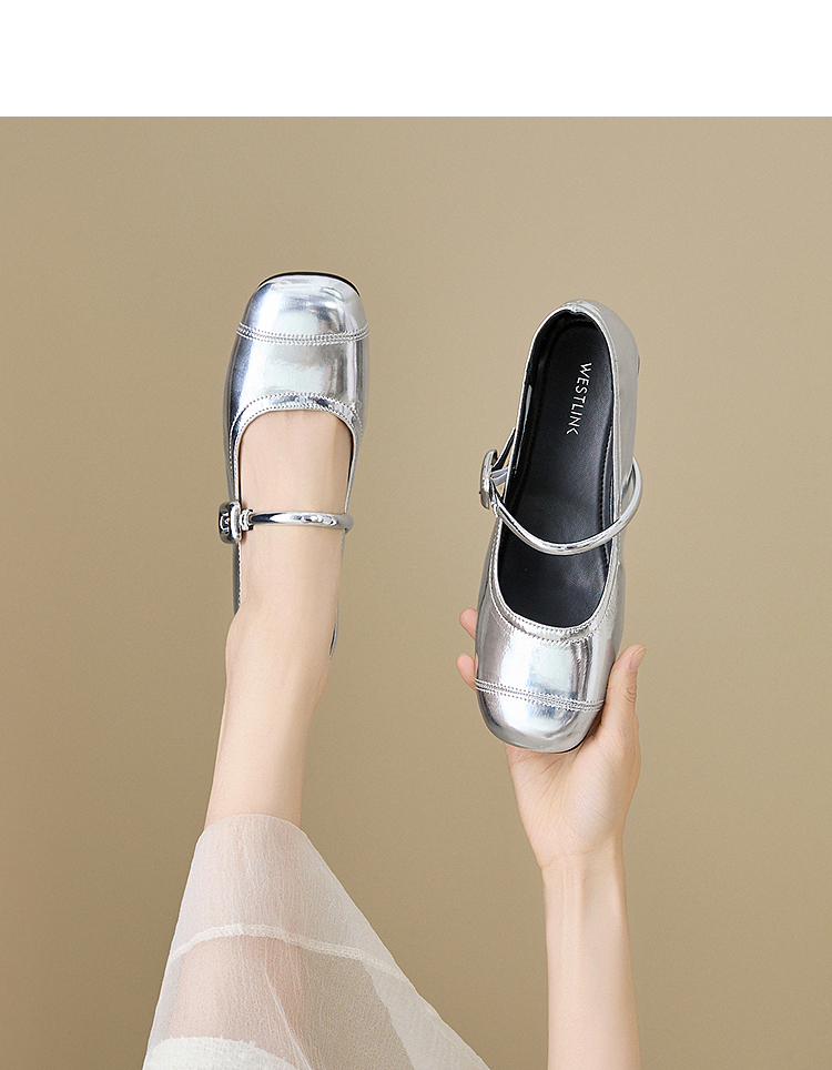 【限时秒杀】西遇玛丽珍鞋女新款秋季小个子内增高女鞋配裙子圆头银色单鞋K0057047