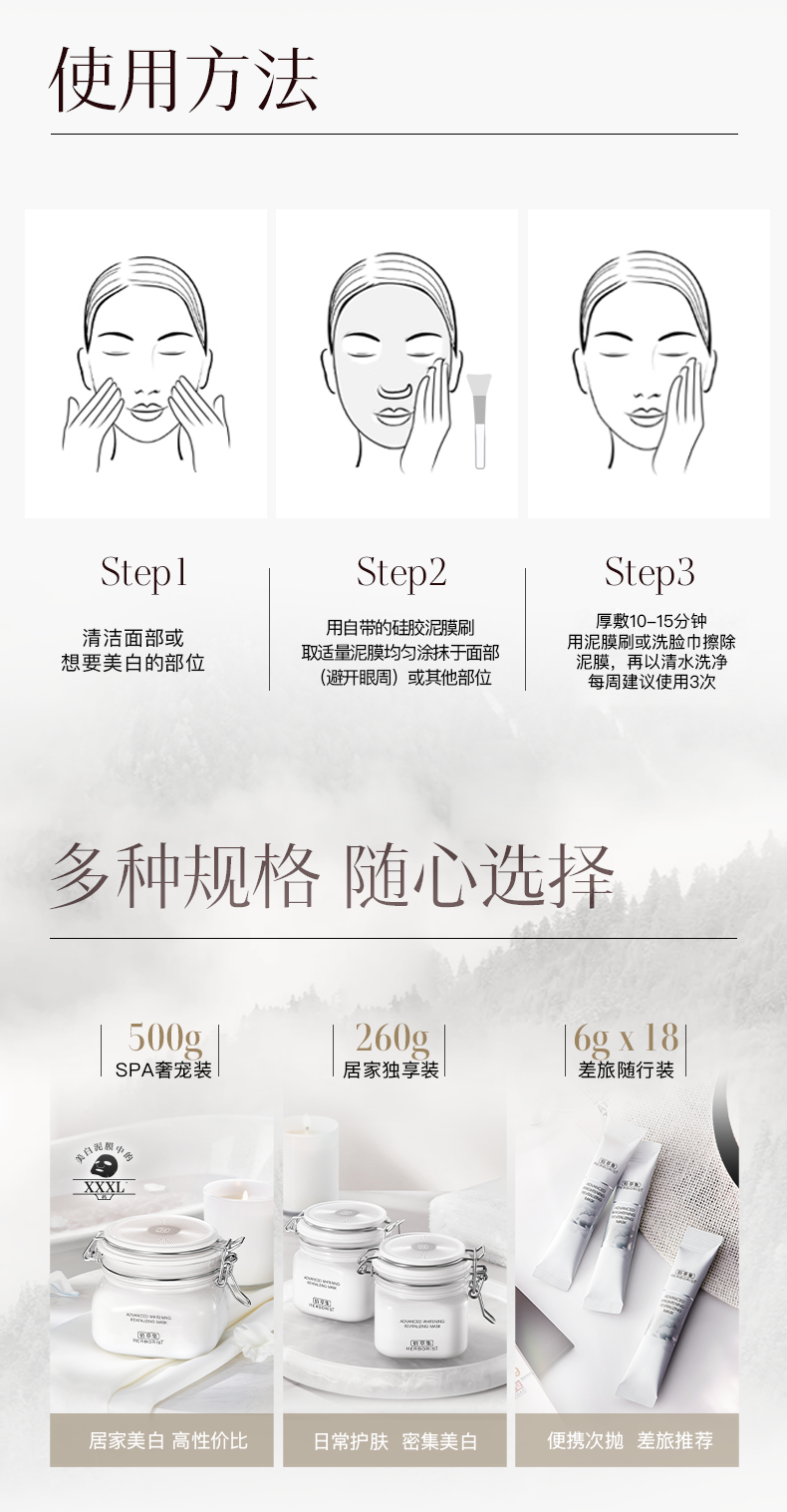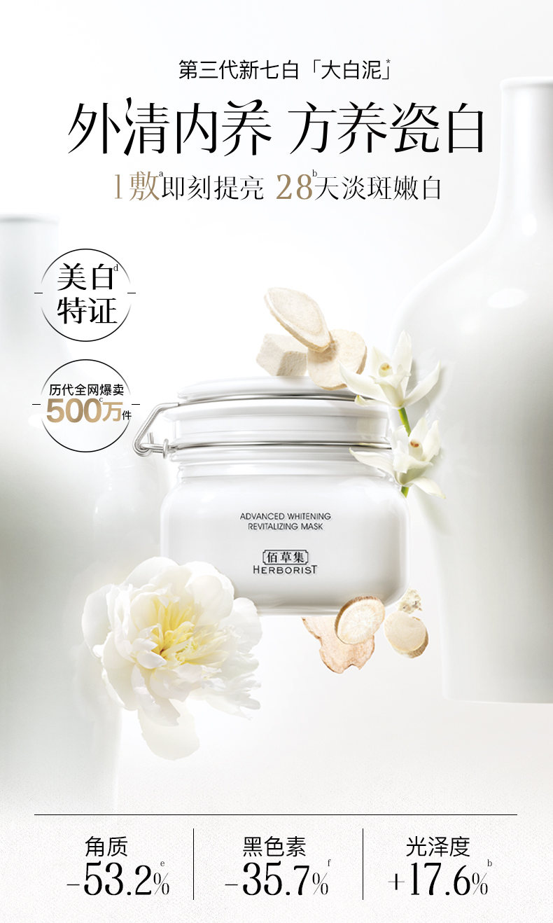 【春日美白防晒CP】佰草集大白泥500g+新清透修护防晒乳40g 日防晒 夜修护美白面膜 持证美白泥膜