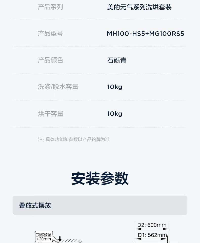 美的10kg洗+10kg烘 MG100RS5+MH100-HS5 洗烘套装