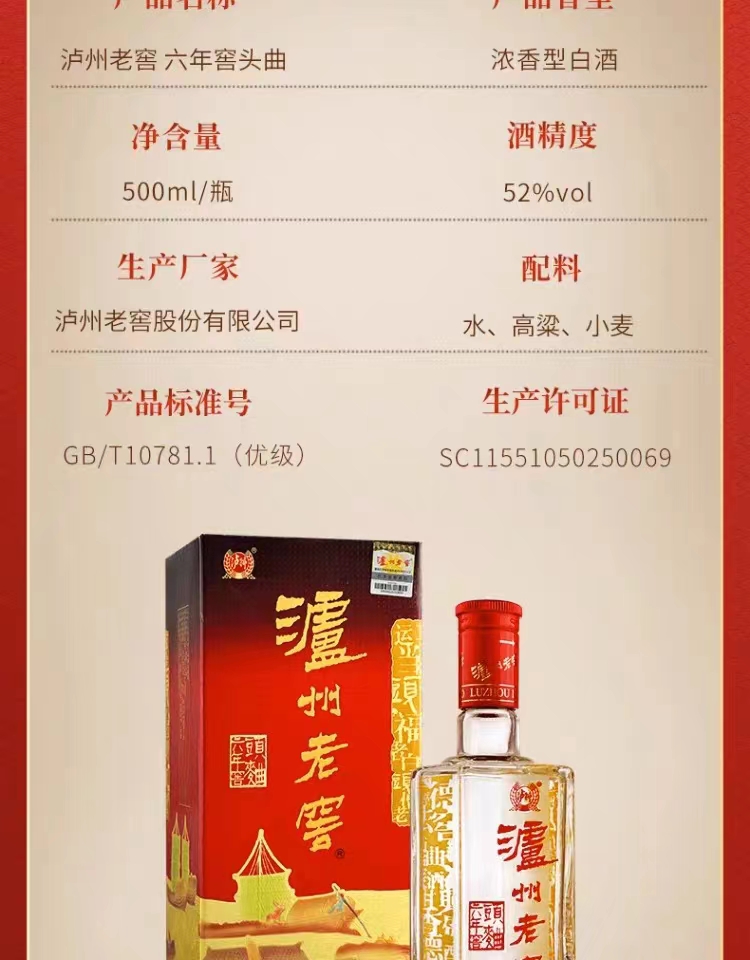 【扫码有好礼】泸州老窖六年窖头曲52度500ml*6 泸州老窖官方旗舰店
