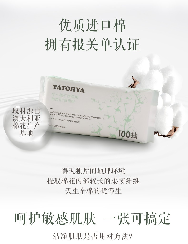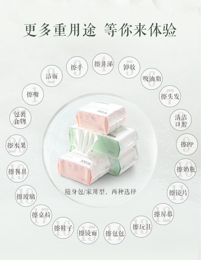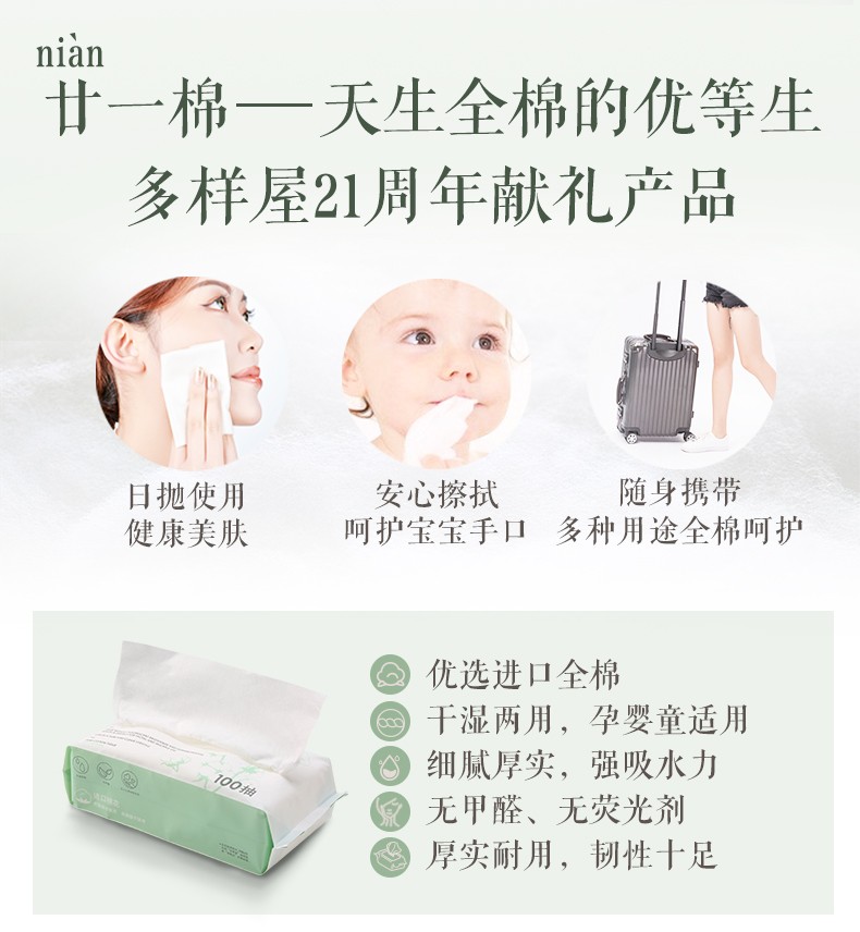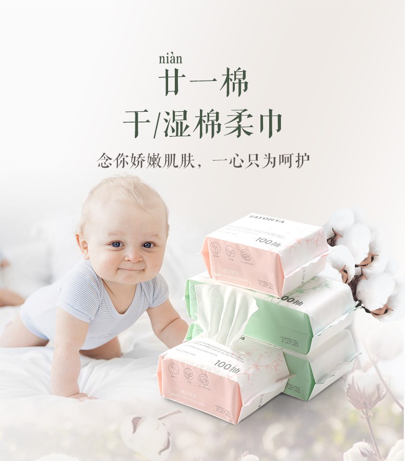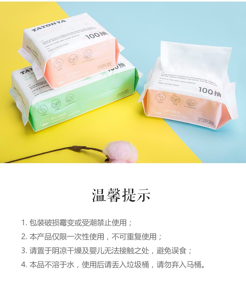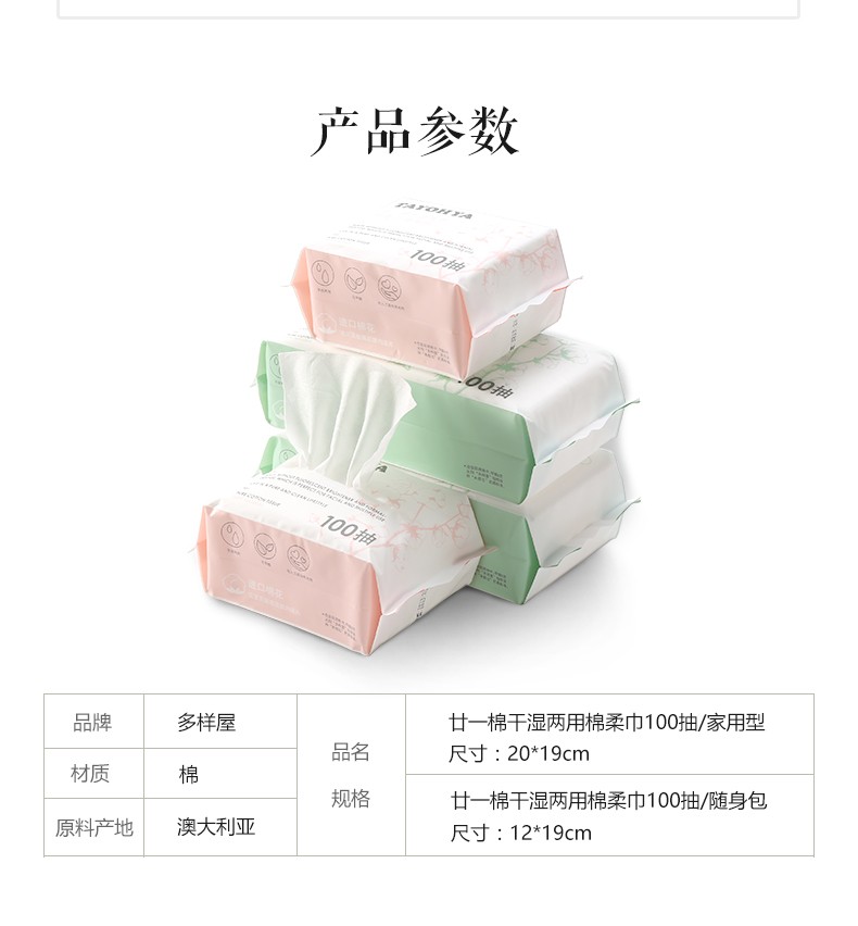 【专柜多样屋】-一次性洗脸巾婴儿用手帕纸干湿两用抽纸巾湿水可用 加厚棉柔巾洁面巾女家用巾美容 100抽随手包