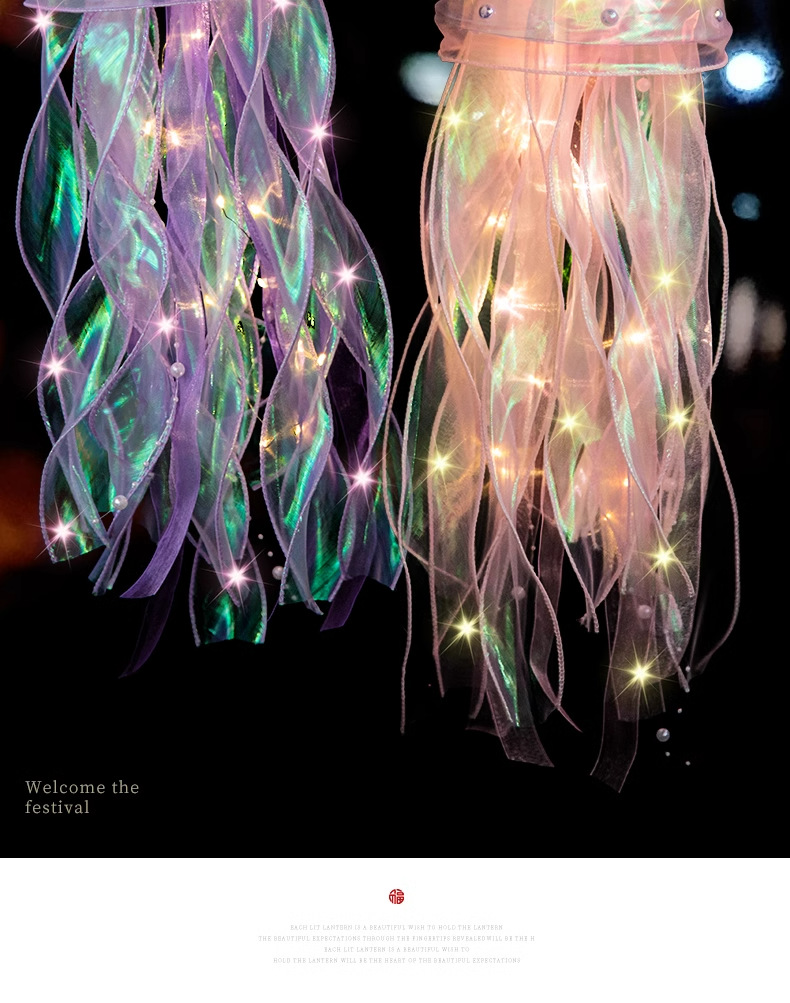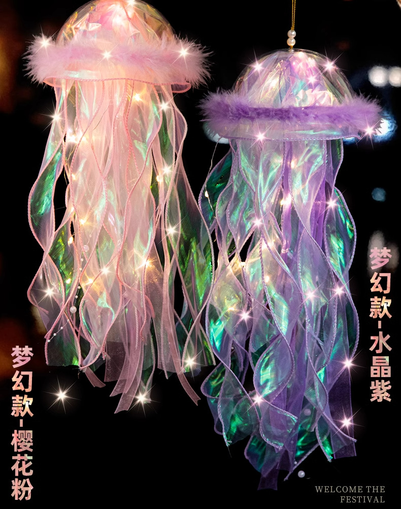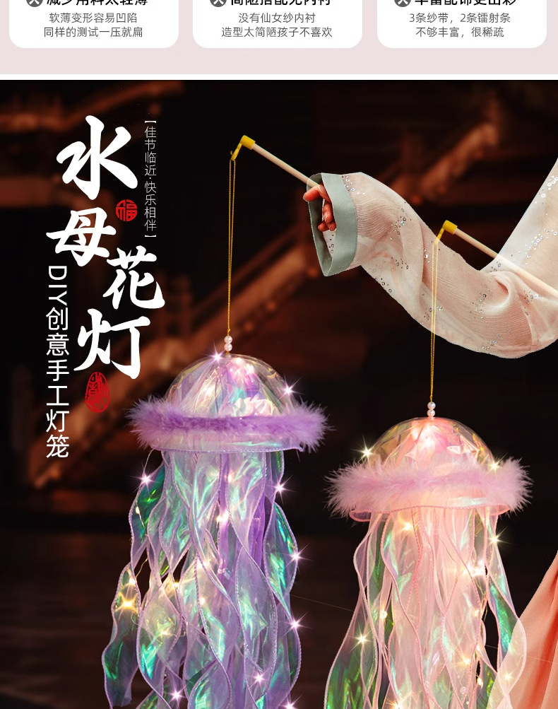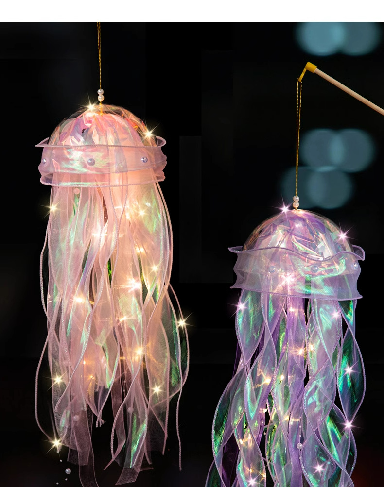 中秋节水母灯笼手工diy材料包手提花灯发光小兔子灯笼
