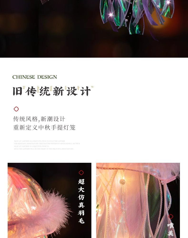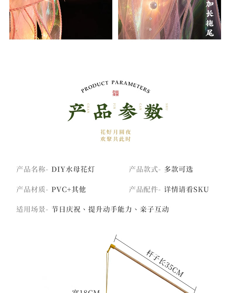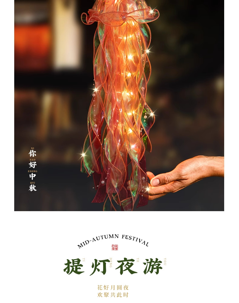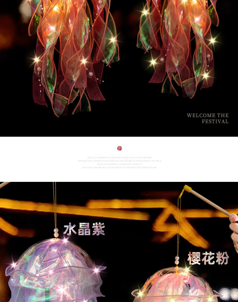 中秋节水母灯笼手工diy材料包手提花灯发光小兔子灯笼
