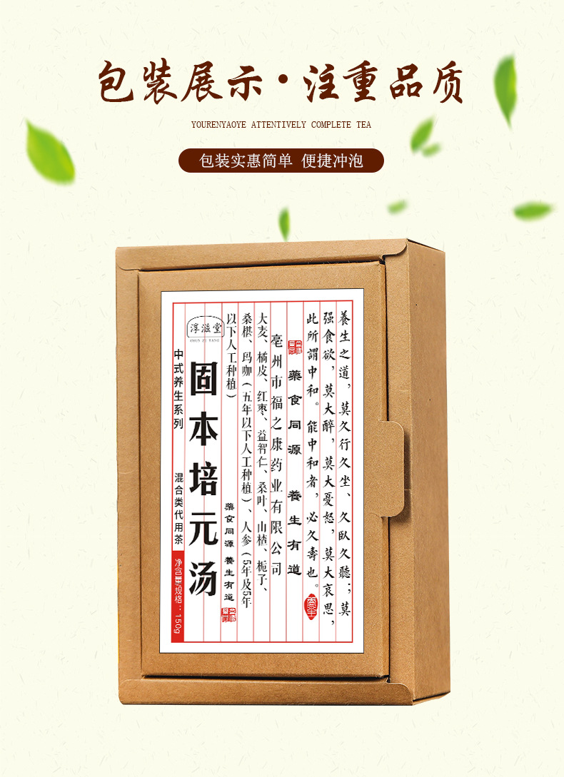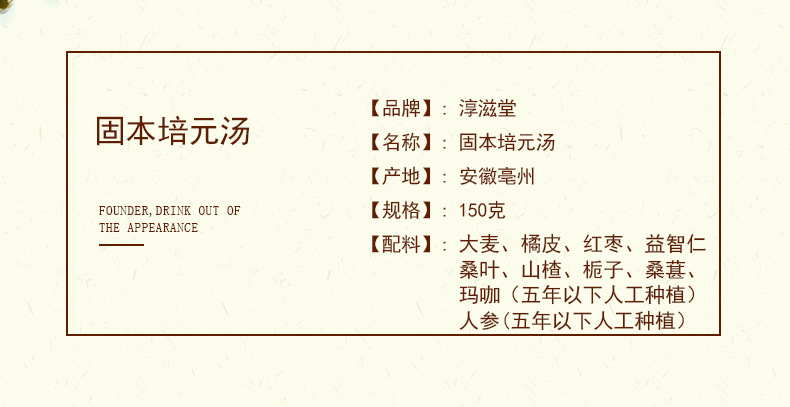 淳滋堂固本培元汤30包 人参桑椹茶金枪茶五宝茶固本茶养生茶150g