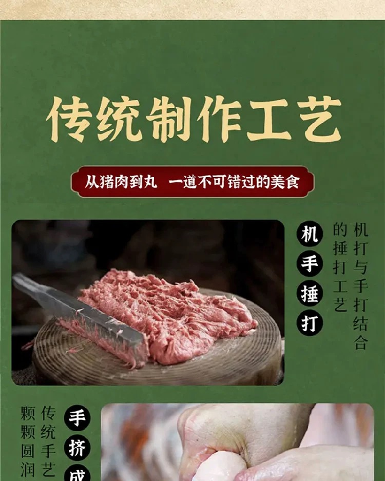 潮汕猪肉丸猪肉饼,非遗传承,上千次捶打手工制作,一口咬下,牙齿划过肉层,鲜味四溢!【G】