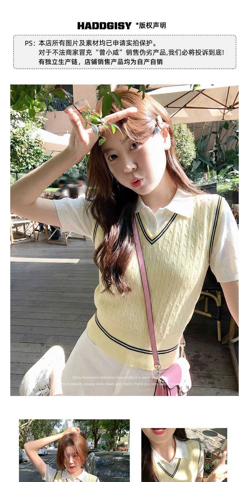 <曾小咸推荐>学院风假两件短袖t恤女夏上衣