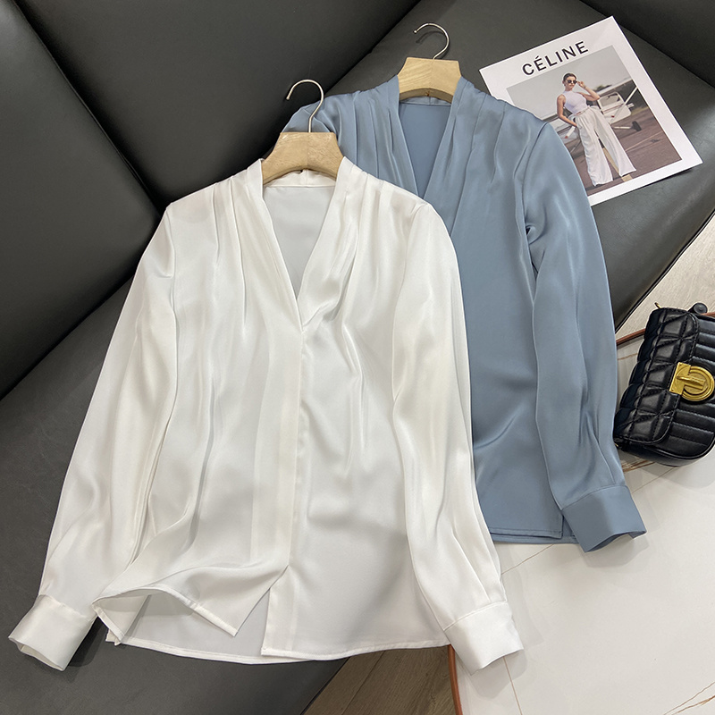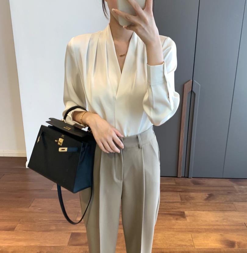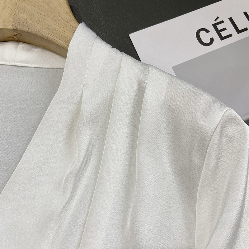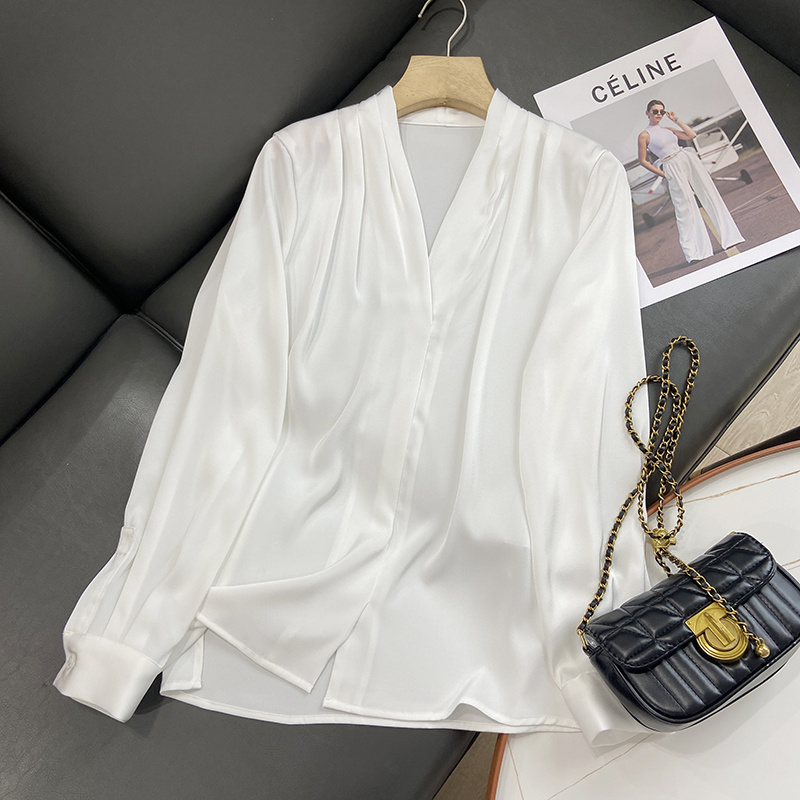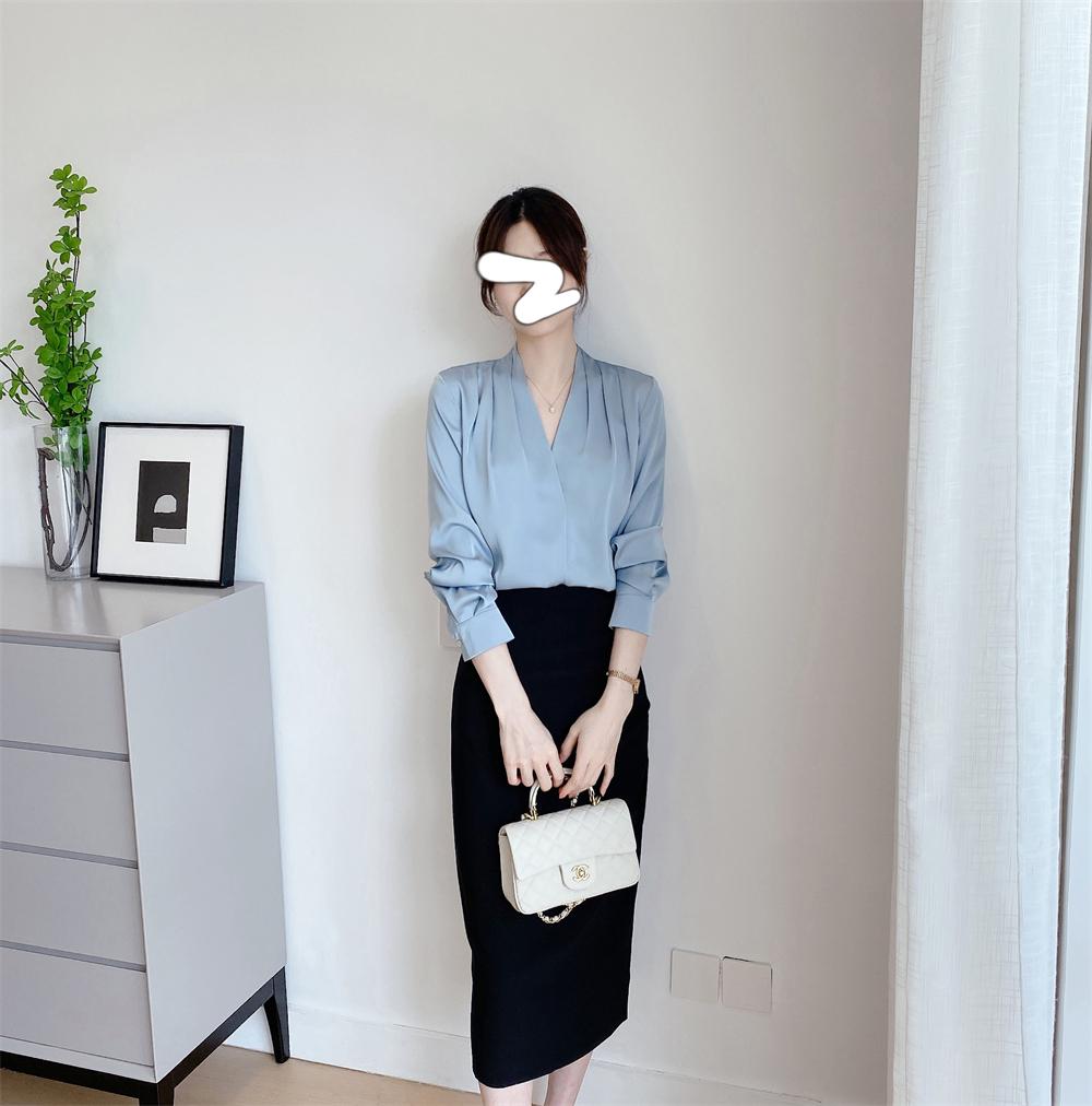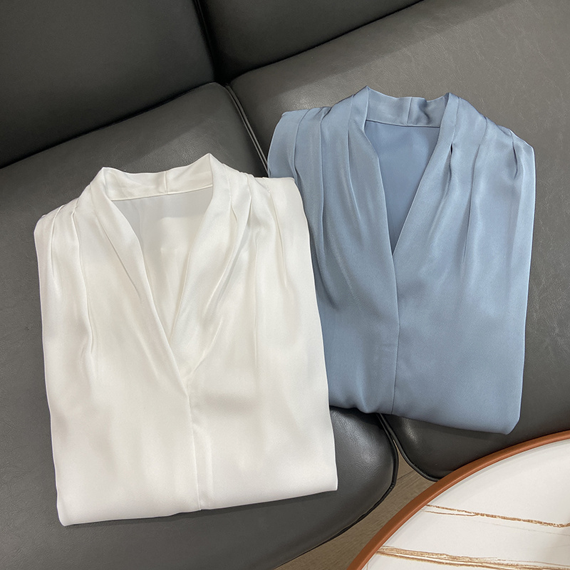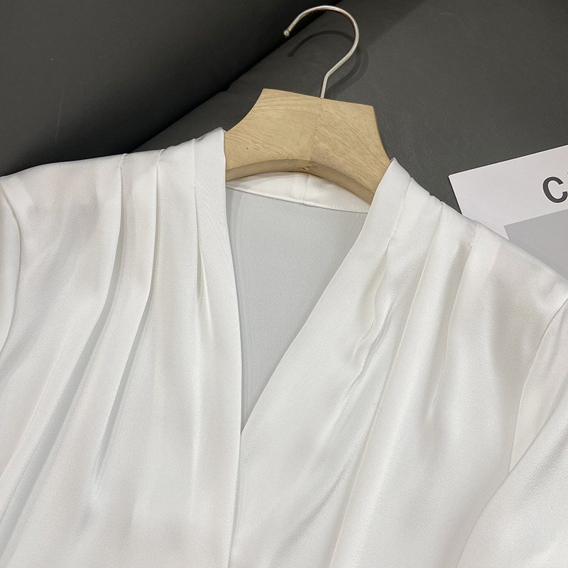 【商品名称】法式温婉柔软亲肤光泽感V领两侧褶皱衬衫
