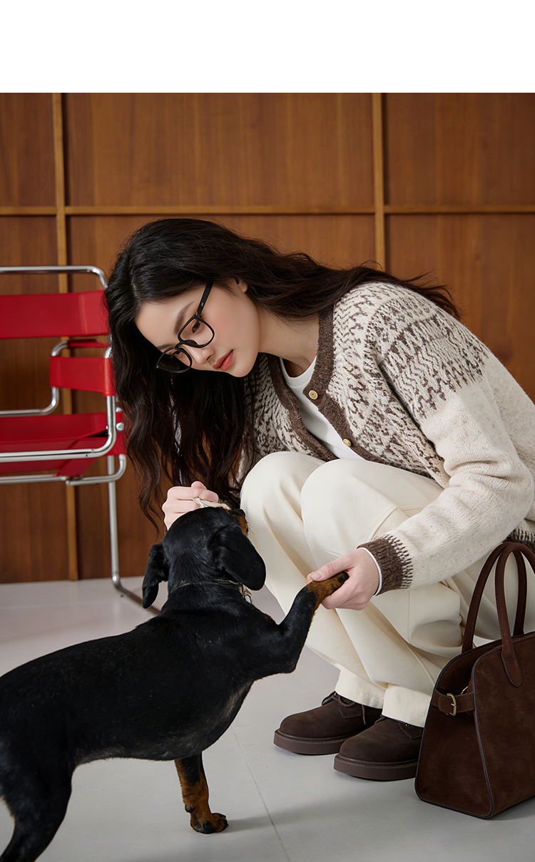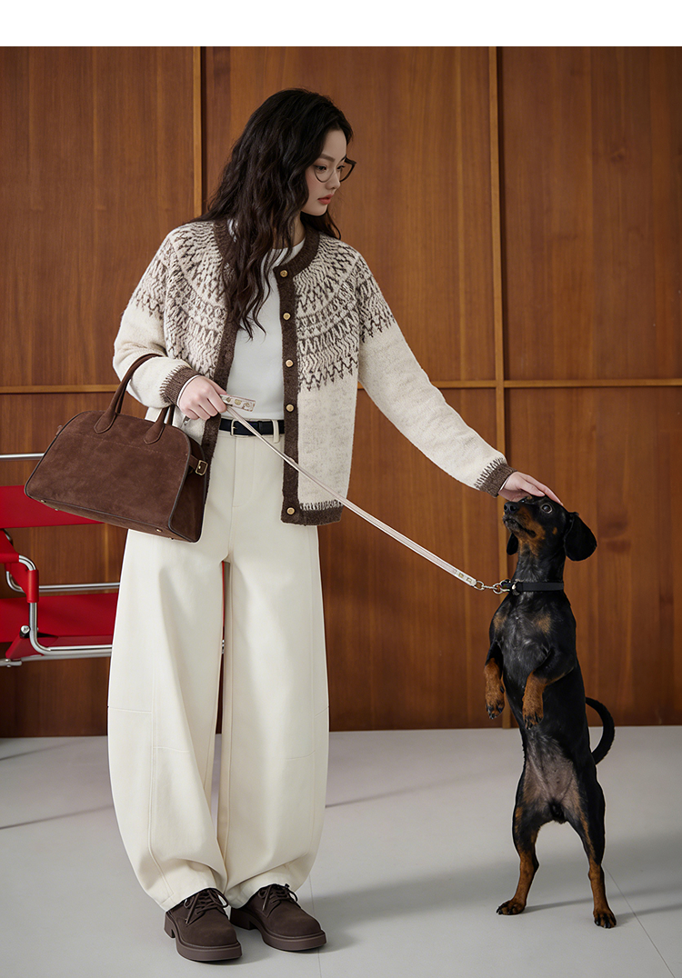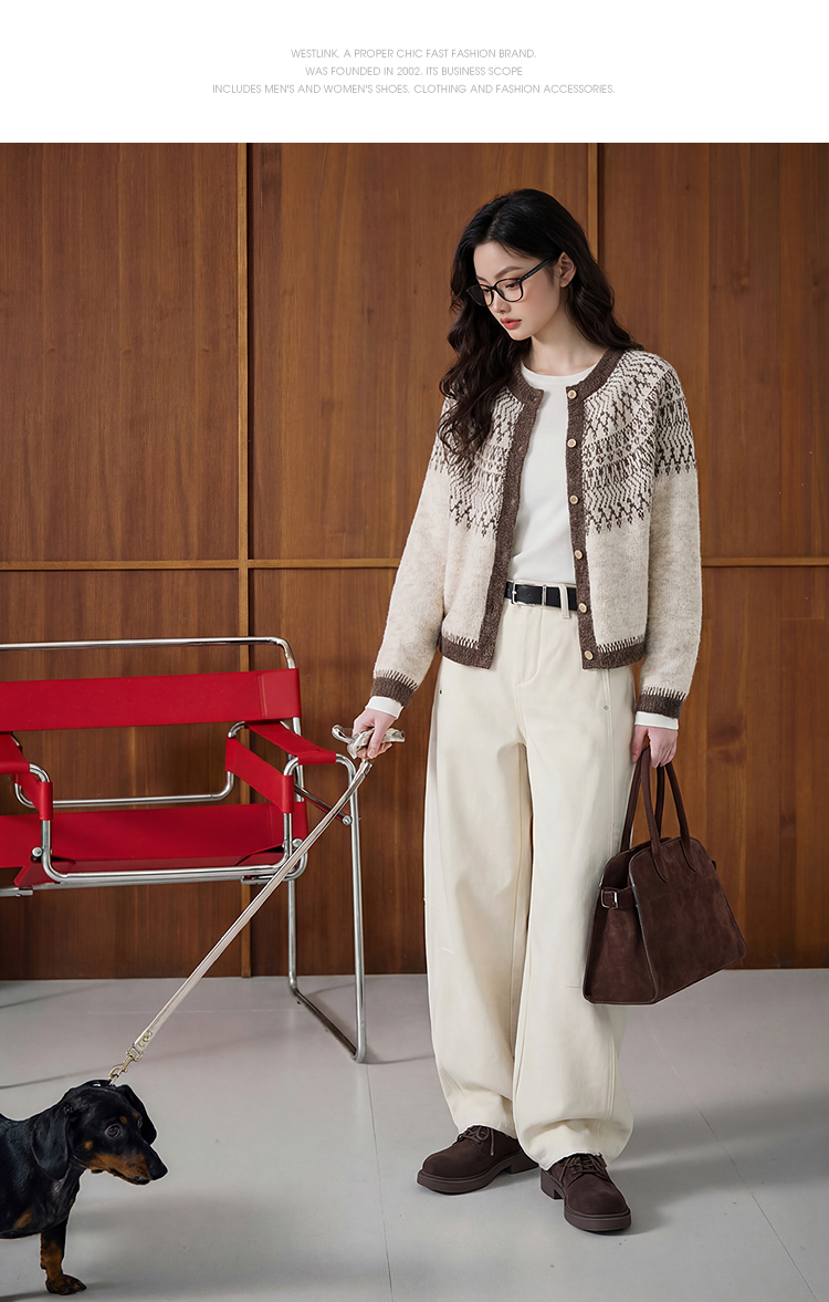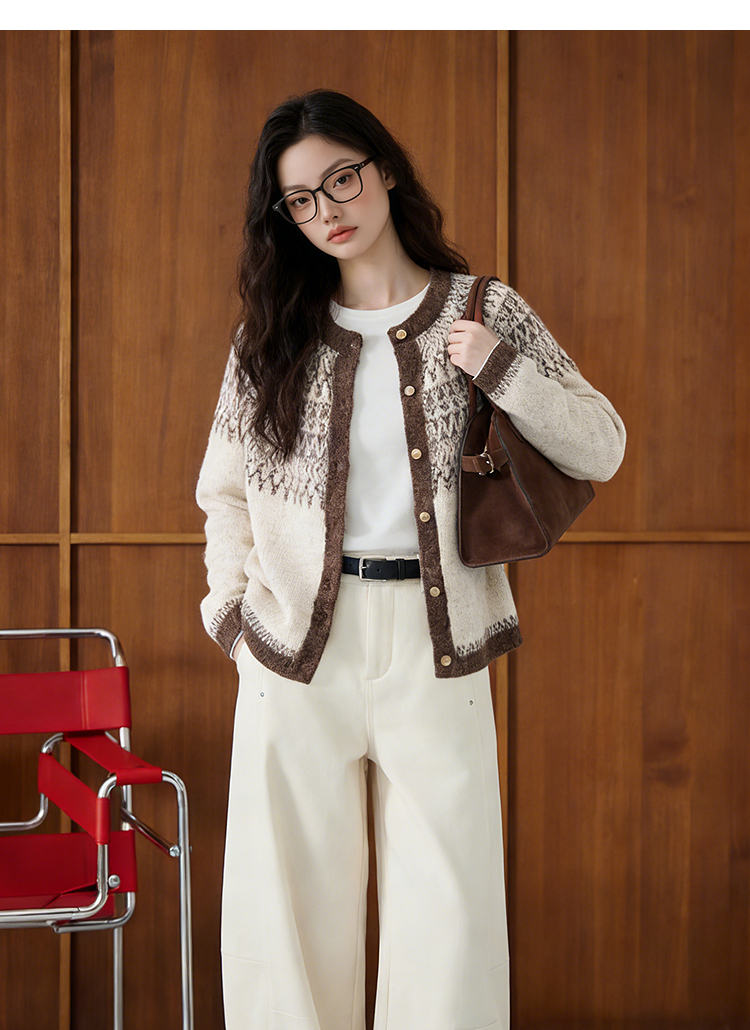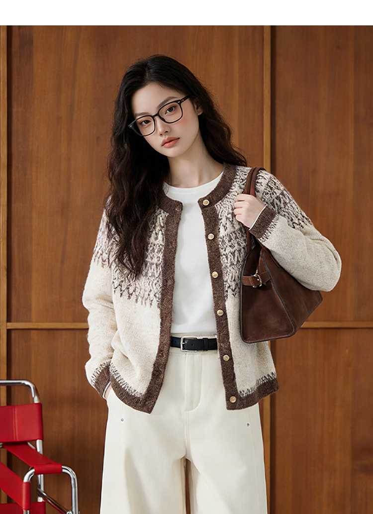 西遇北欧风费尔岛毛衣女2026春季新提花复古休闲杂色加厚针织开衫E0060079