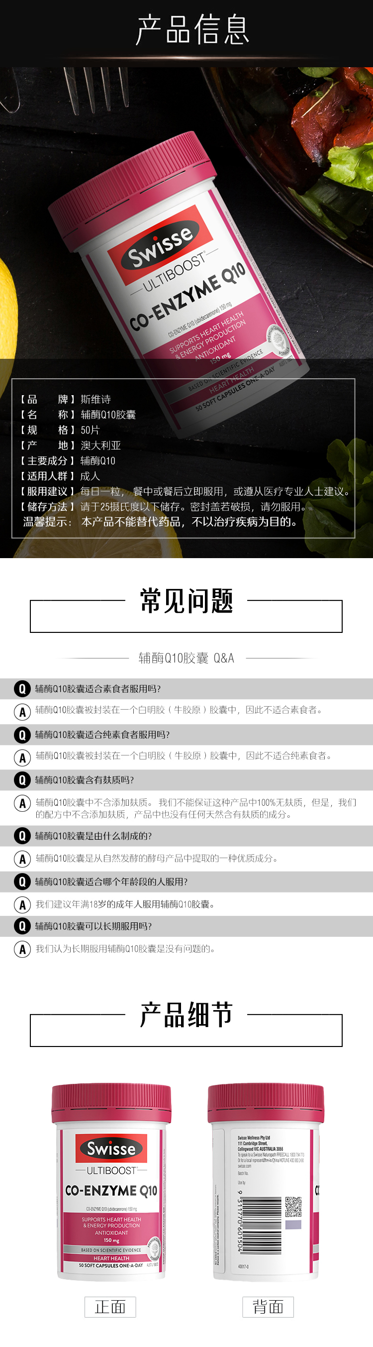 SWISSE斯维诗 辅酶Q10胶囊 150mg 50粒【安琪全球购.保税仓直发】