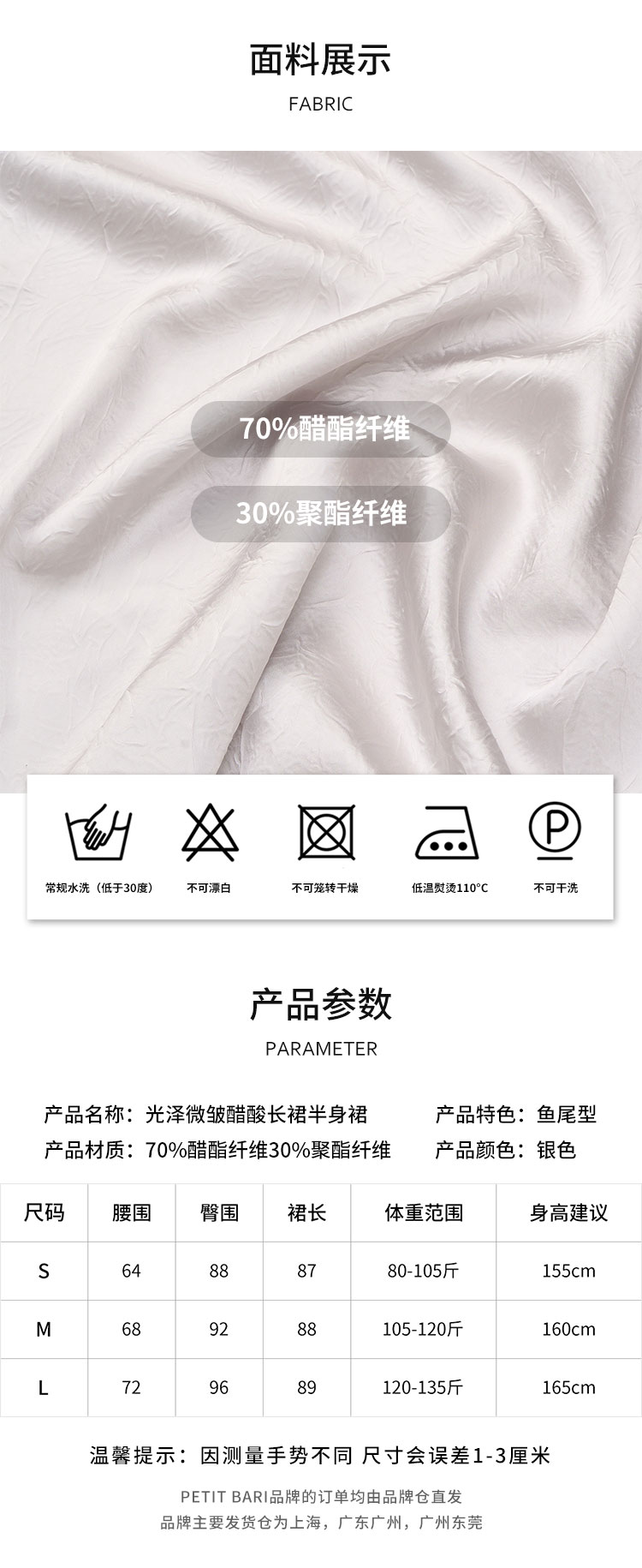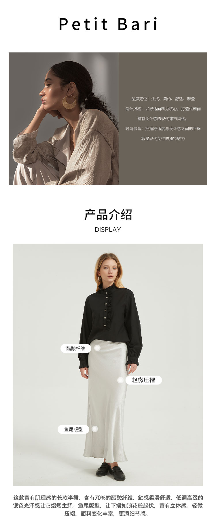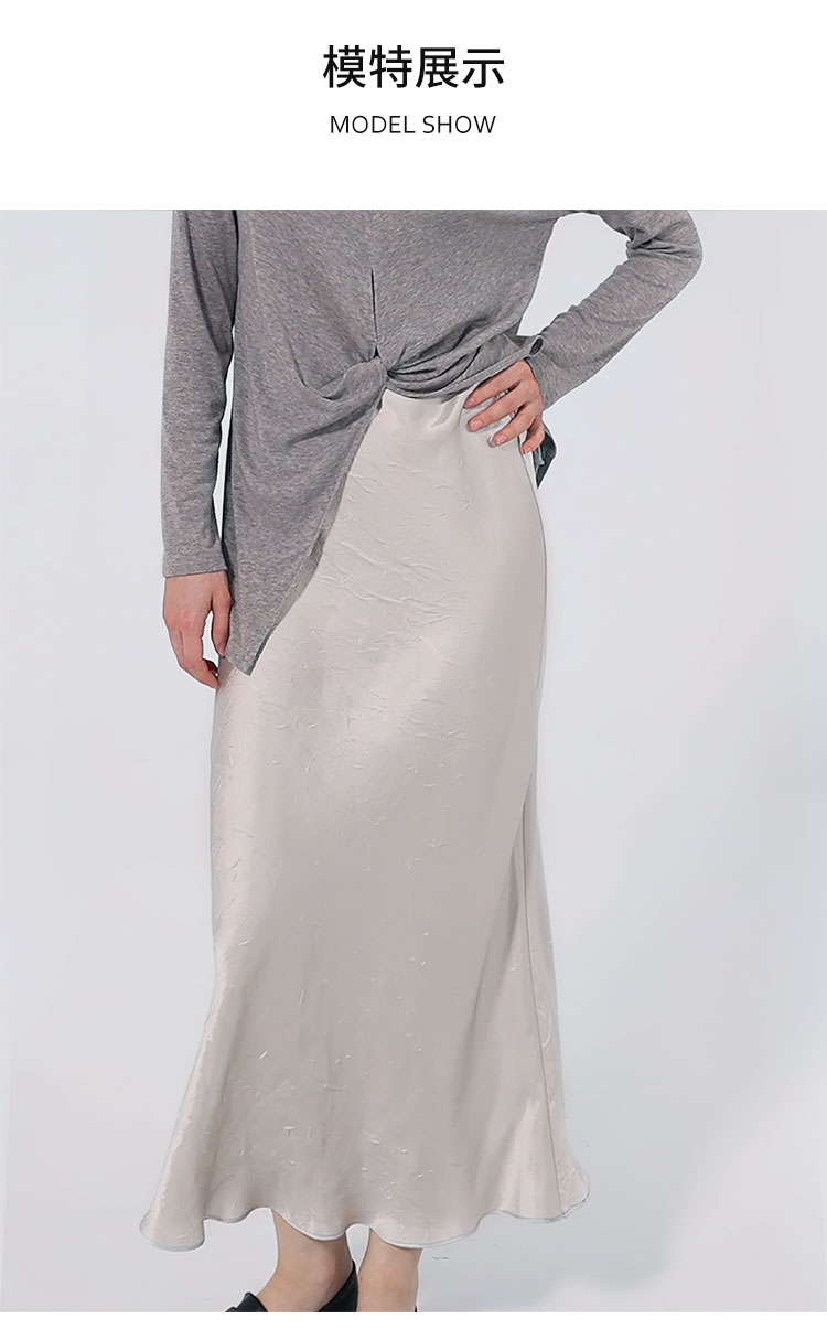 【2件9折】【Petit Bari】光泽微皱醋酸长裙半身裙鱼尾裙