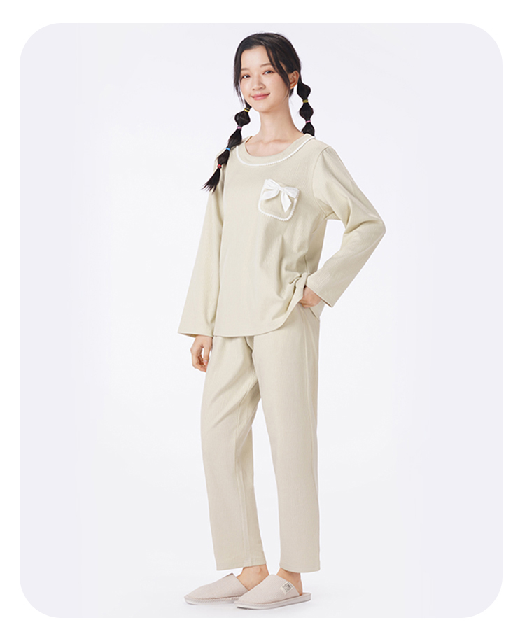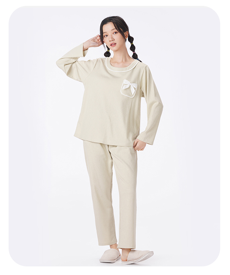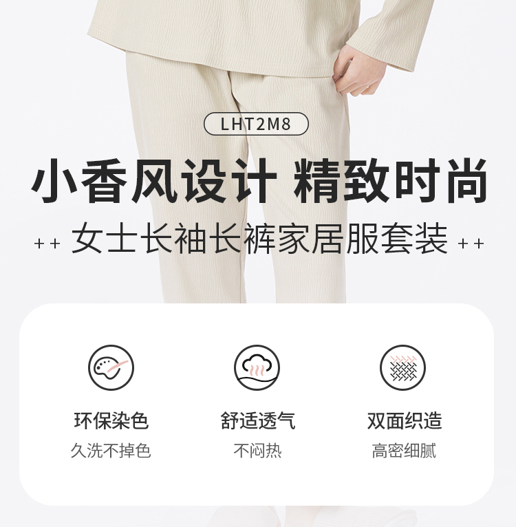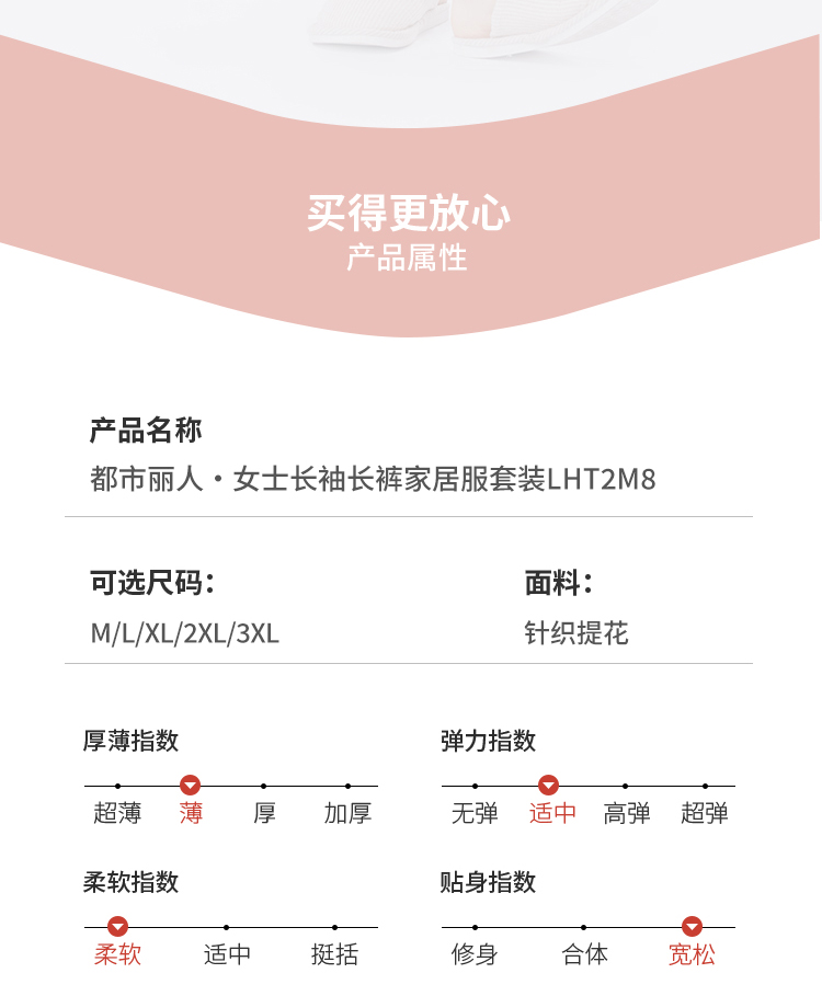 都市丽人睡衣好睡好眠长袖家居服针织提花薄女士棉质套装LHT2M8