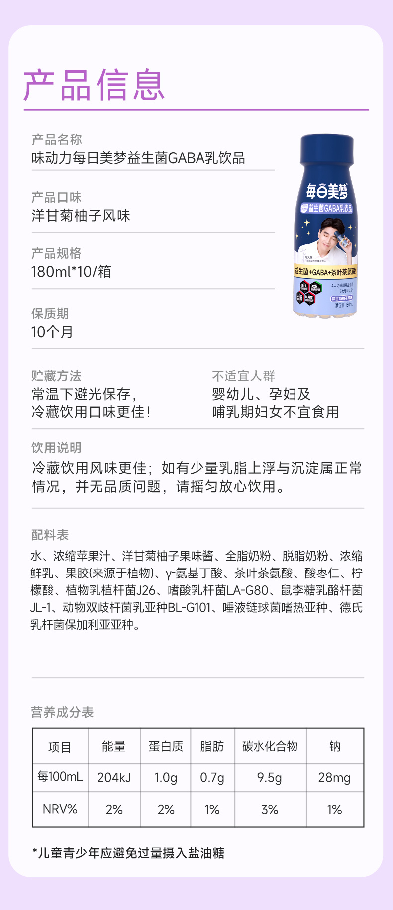 【赵又廷同款】第三代味动力每日美梦GABA美梦水180mL*10/箱