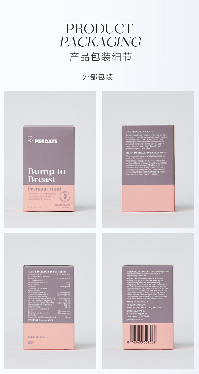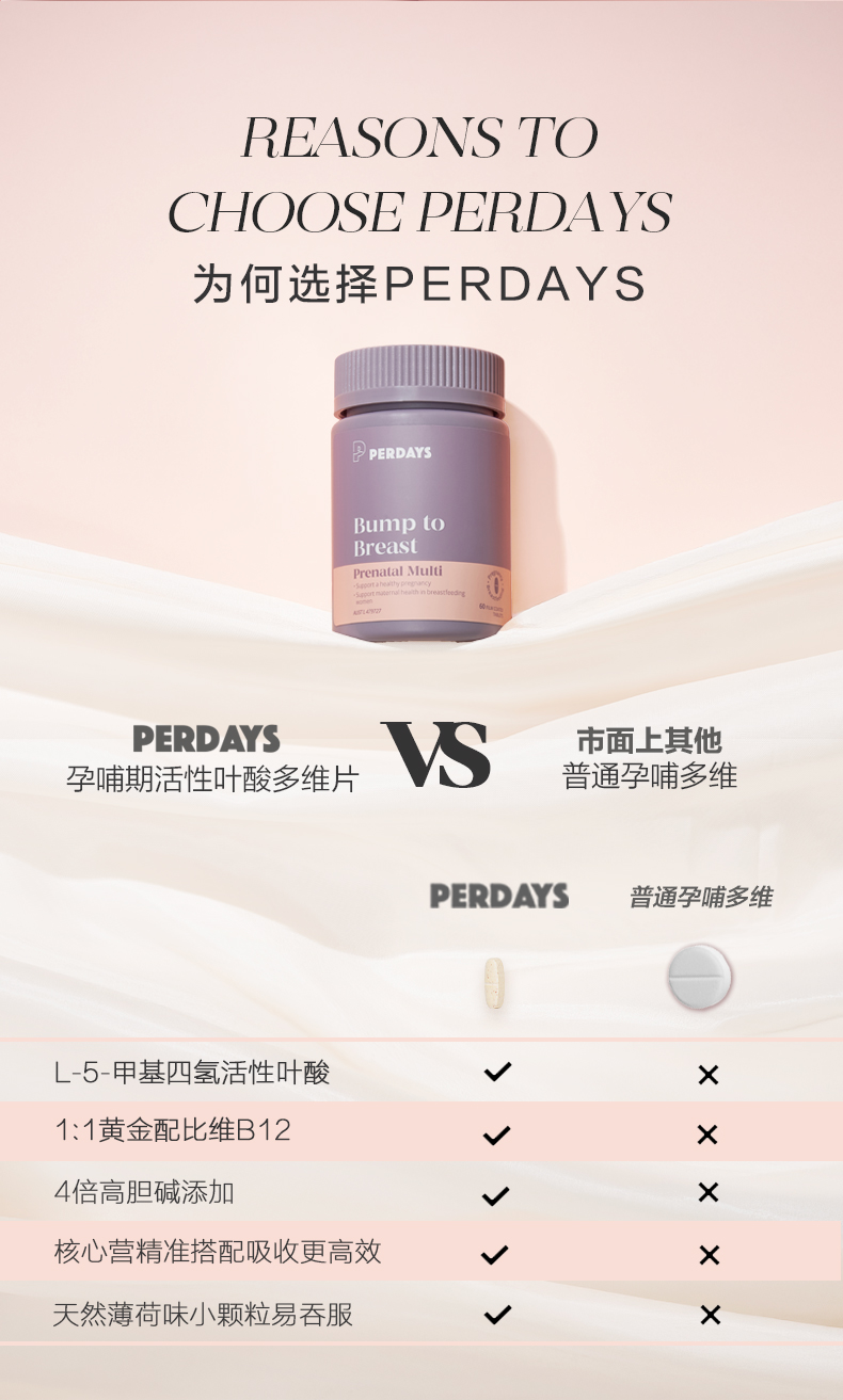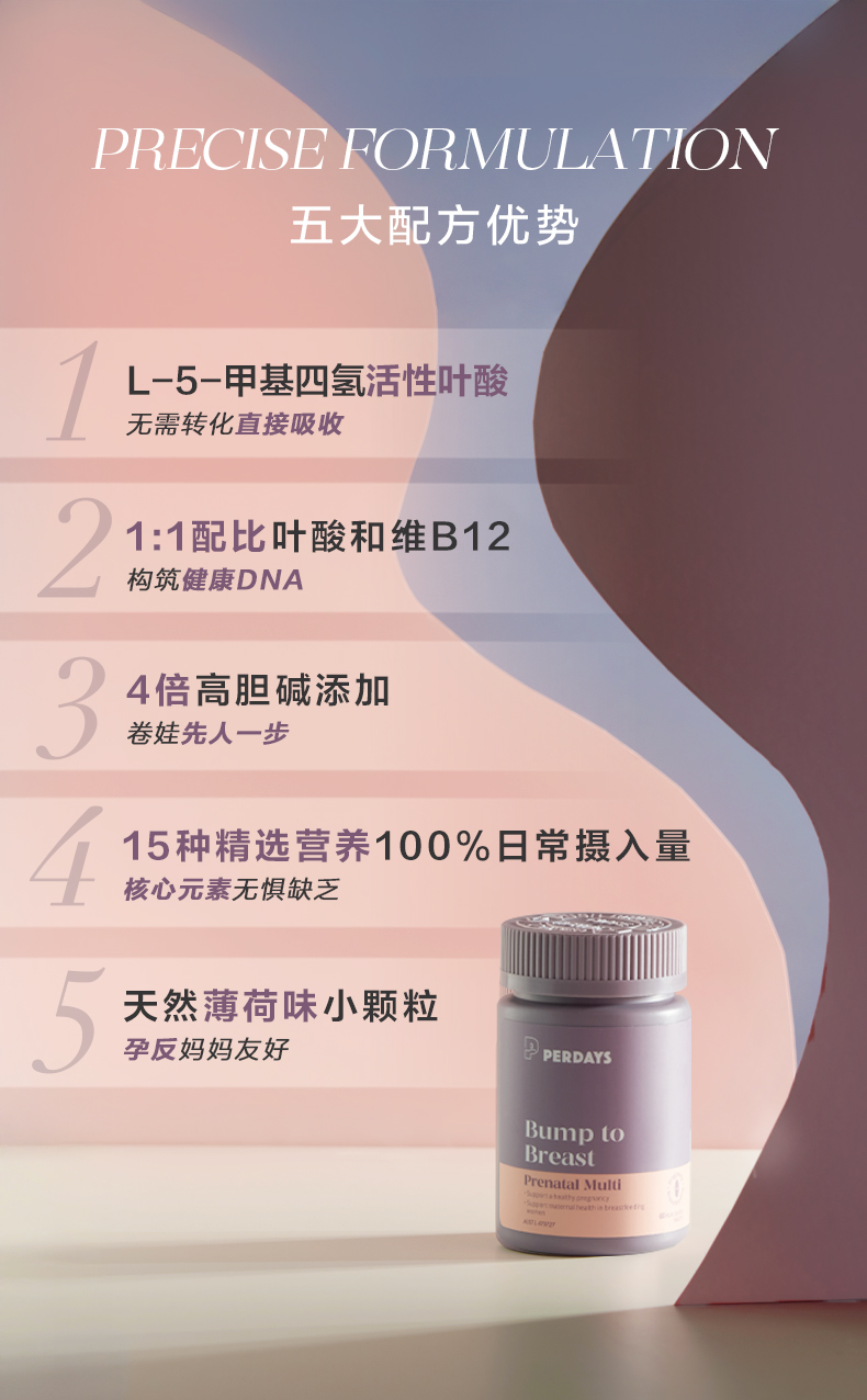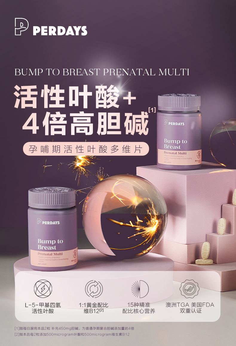 perdays女士多种复合维生素4倍高胆碱孕妇活性叶酸15种孕期营养