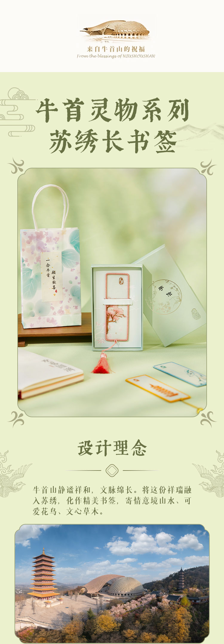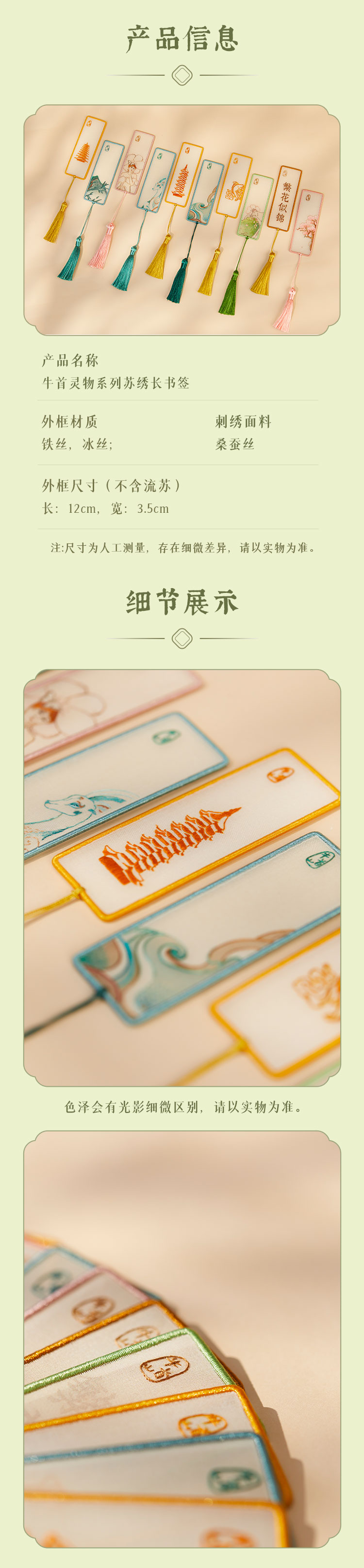 牛首山文创牛首灵物系列高档精致苏绣长书签创意古典中国风伴手礼