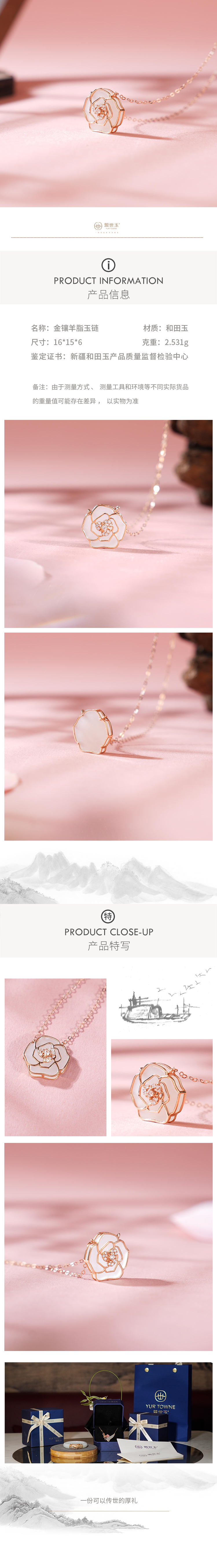 新疆国玉盟世玉和田玉 执手相伴·女人花 晶钻玫瑰 金镶玉项链【带证书·顺丰物流】