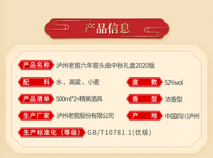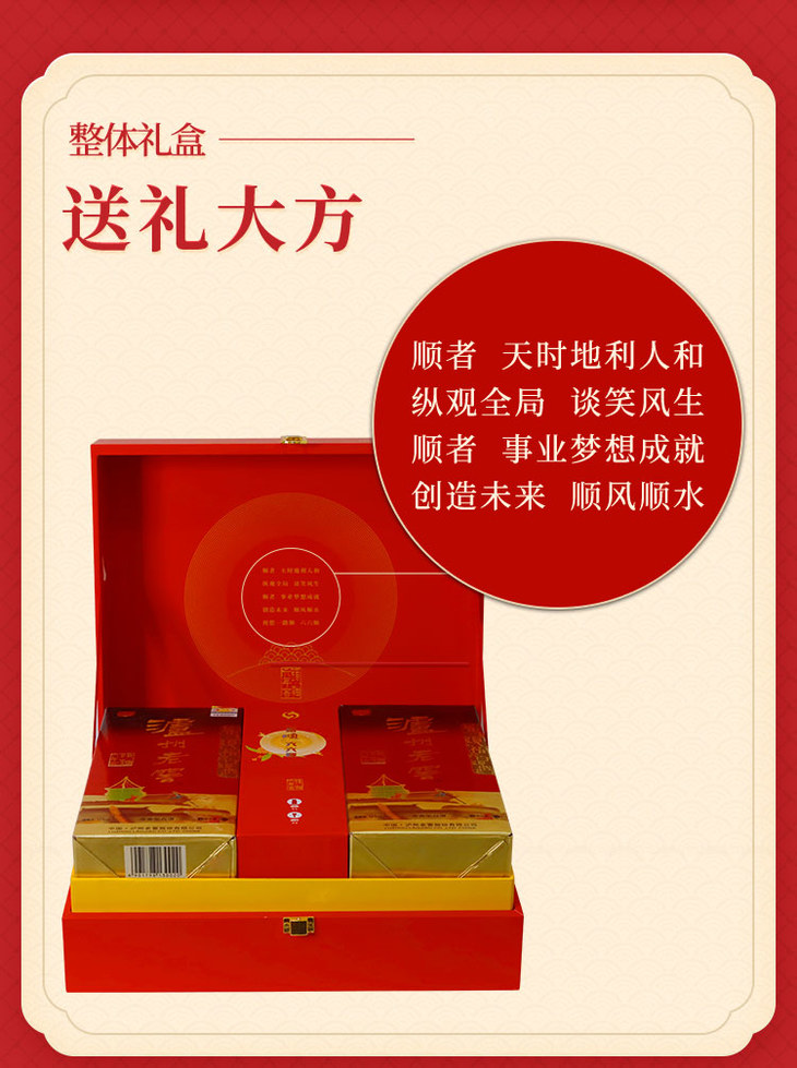 【头曲官旗】52度 泸州老窖头曲六六顺礼盒(2020中秋版)500ml*2