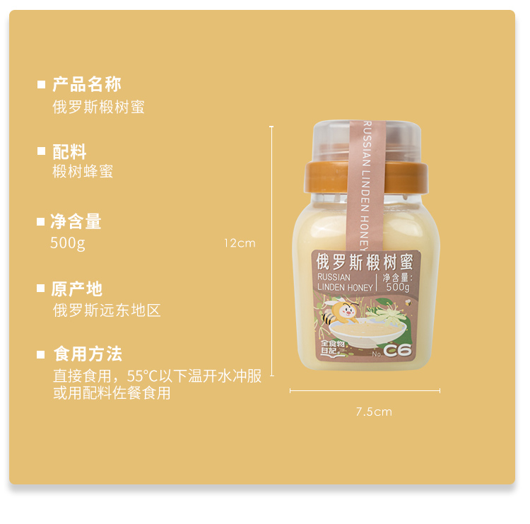 全食物日记C6俄罗斯椴树雪蜜 500g