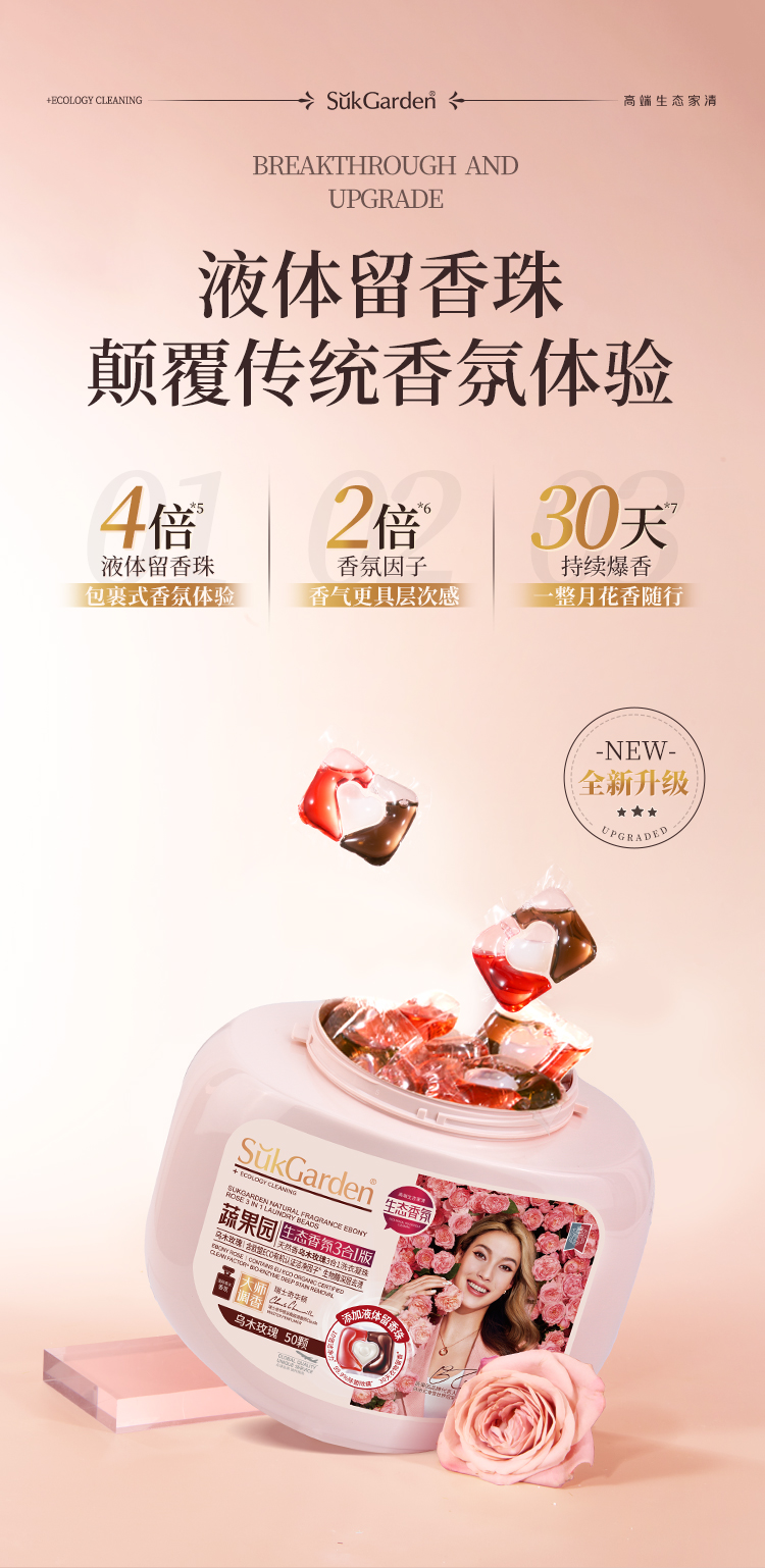 蔬果园天然乌木玫瑰精油香氛3合1洗衣凝珠(浓缩强效型)-10g*50颗*3盒赠蔬果园乌木玫瑰洗衣液5袋