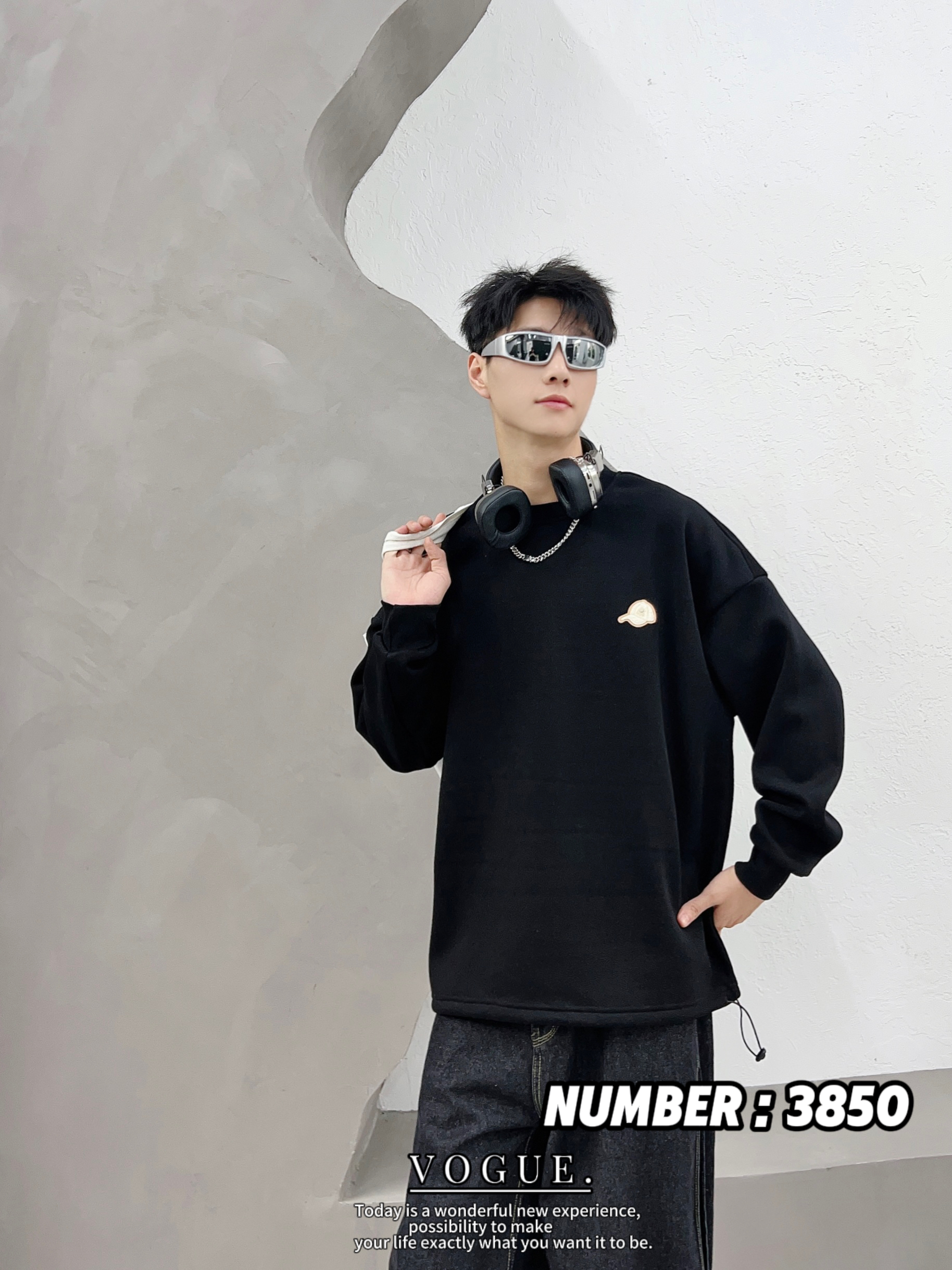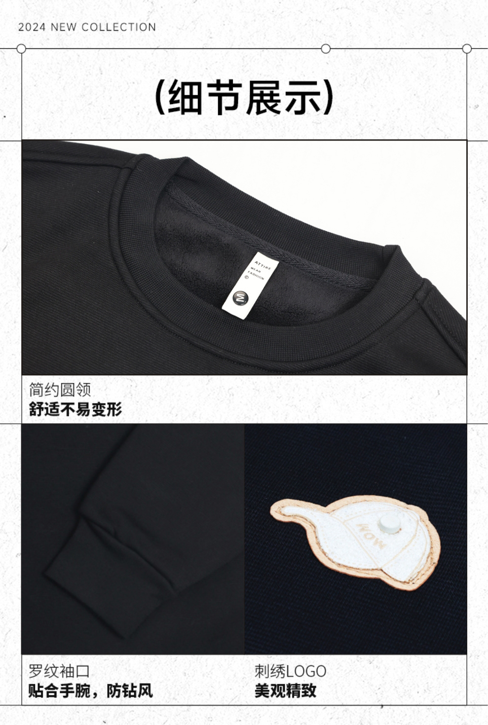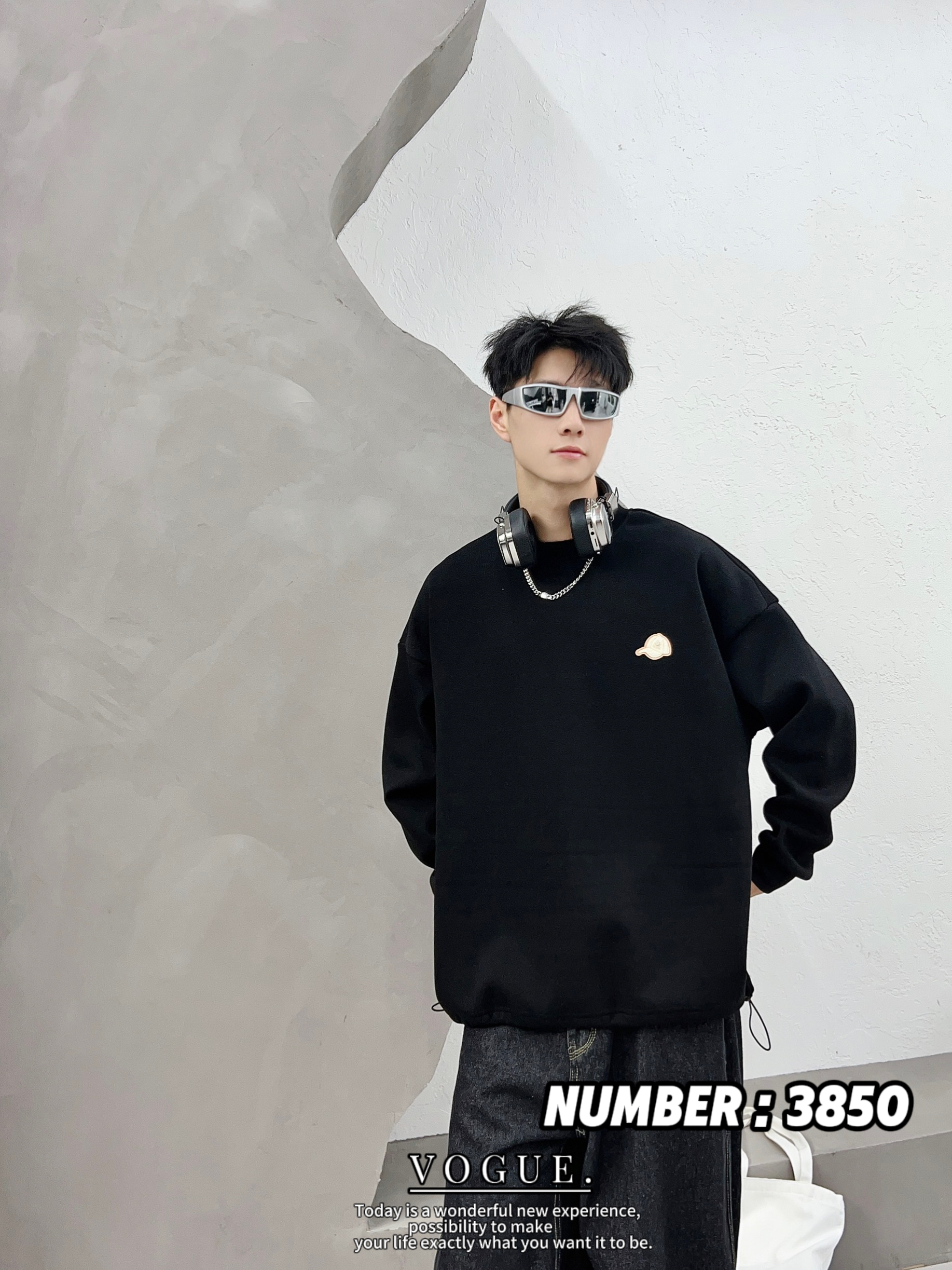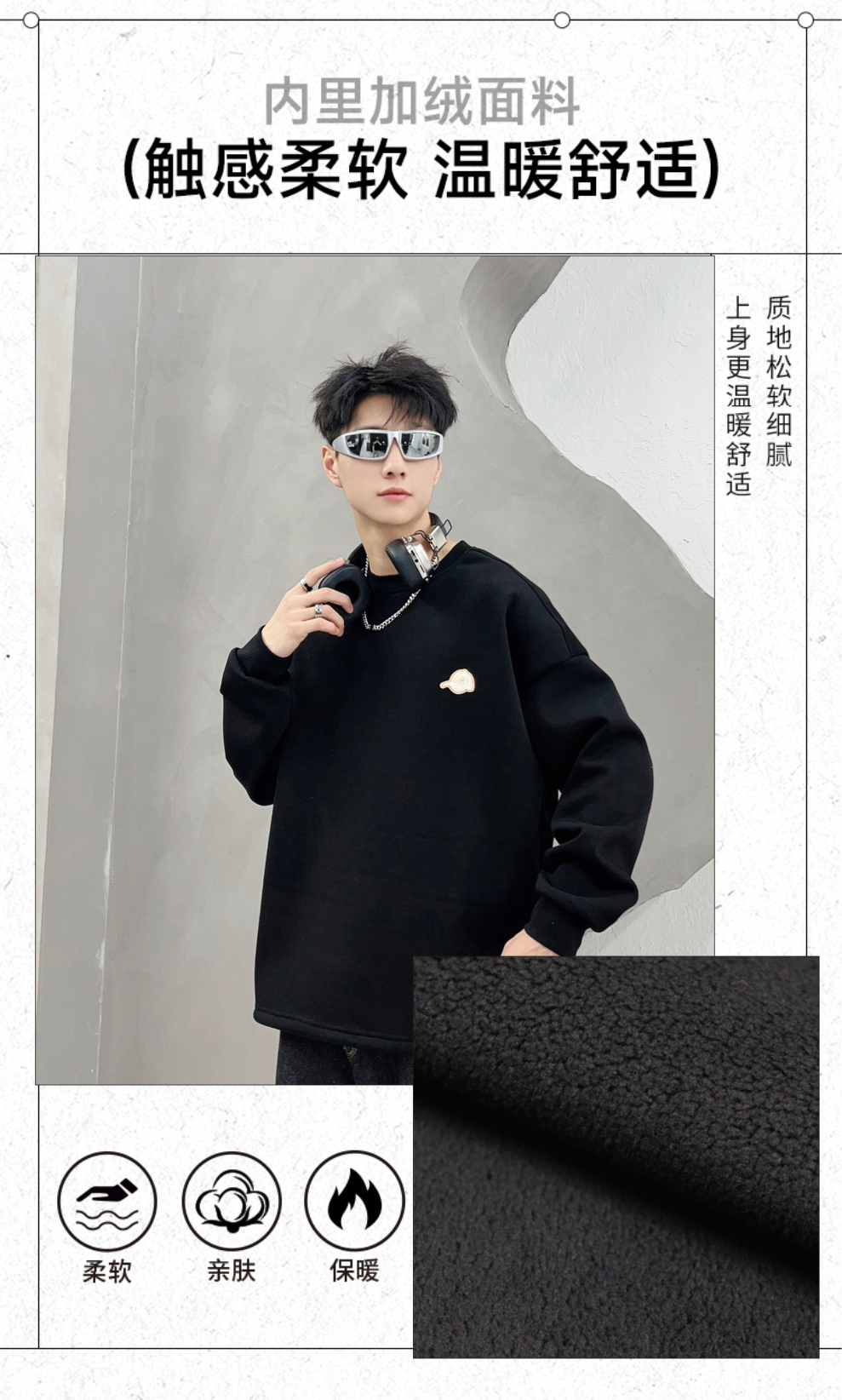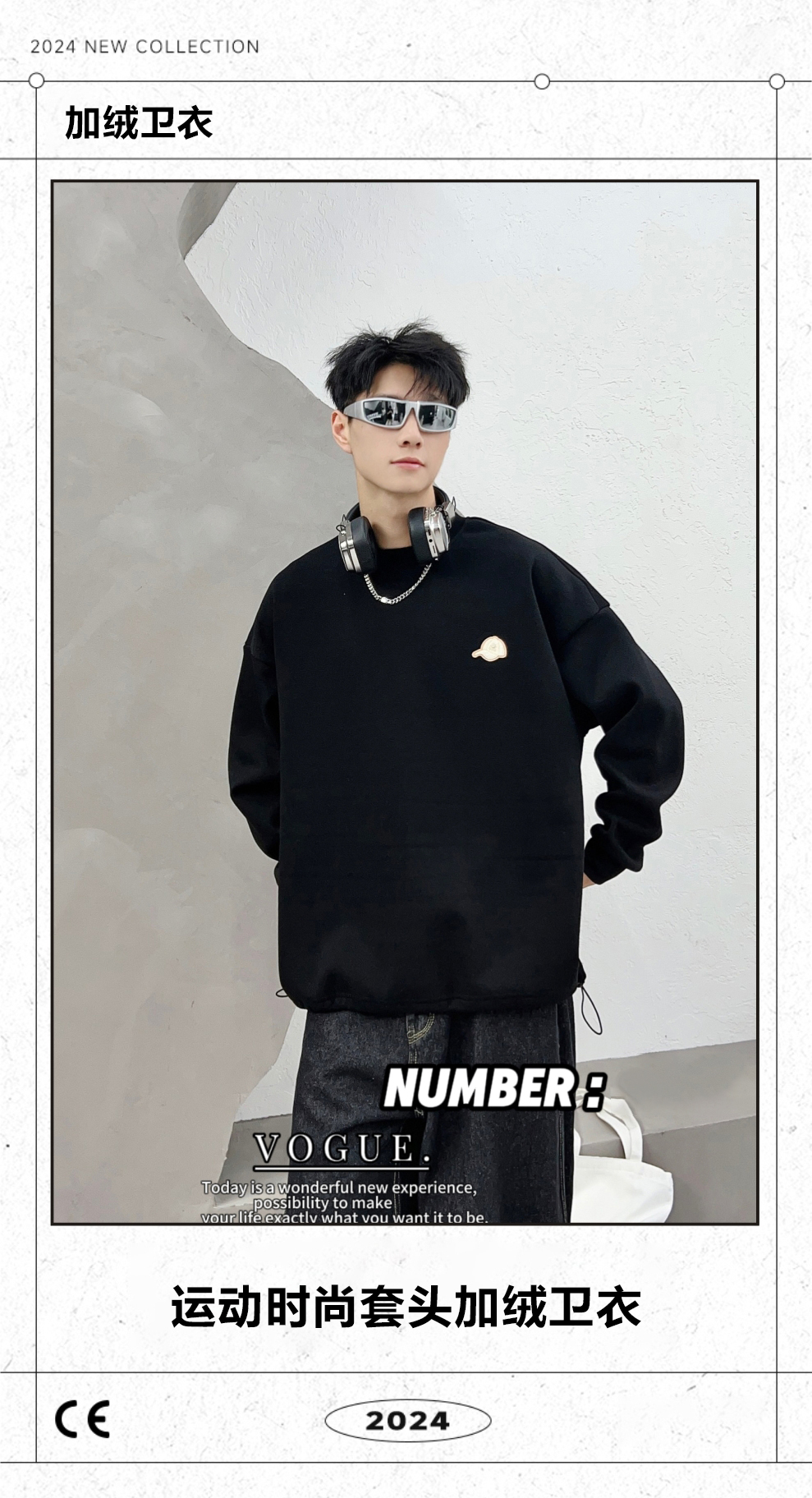 半身缘男装 冬季加绒美式宽松衣脚抽绳加绒卫衣03850