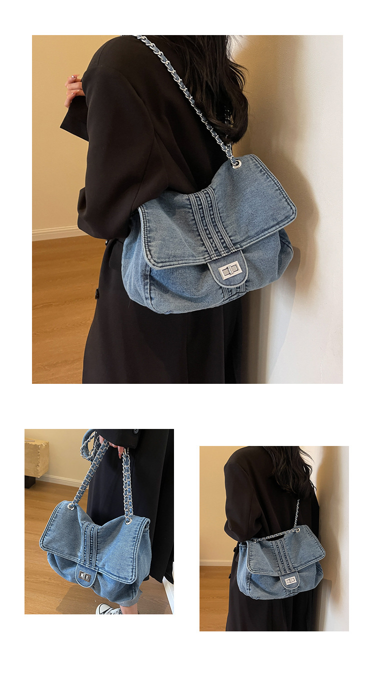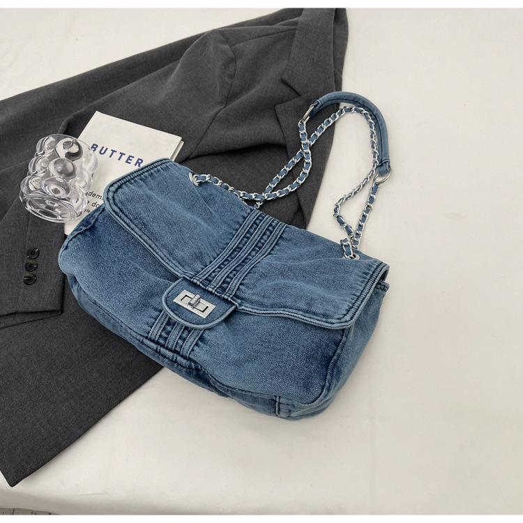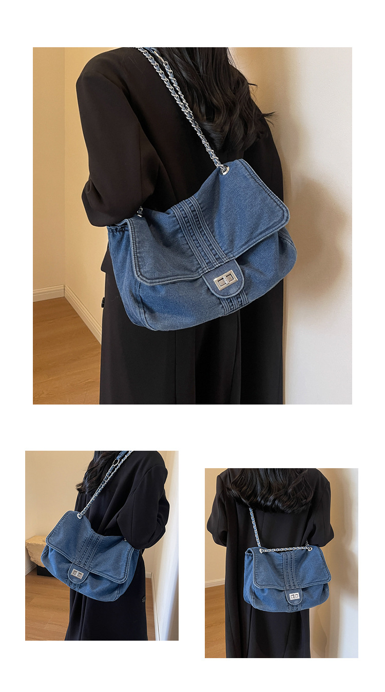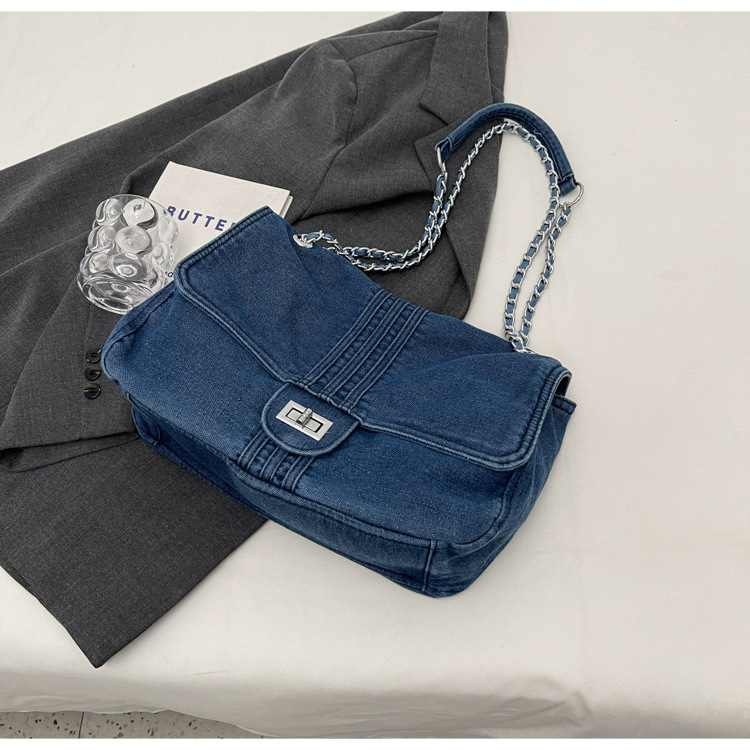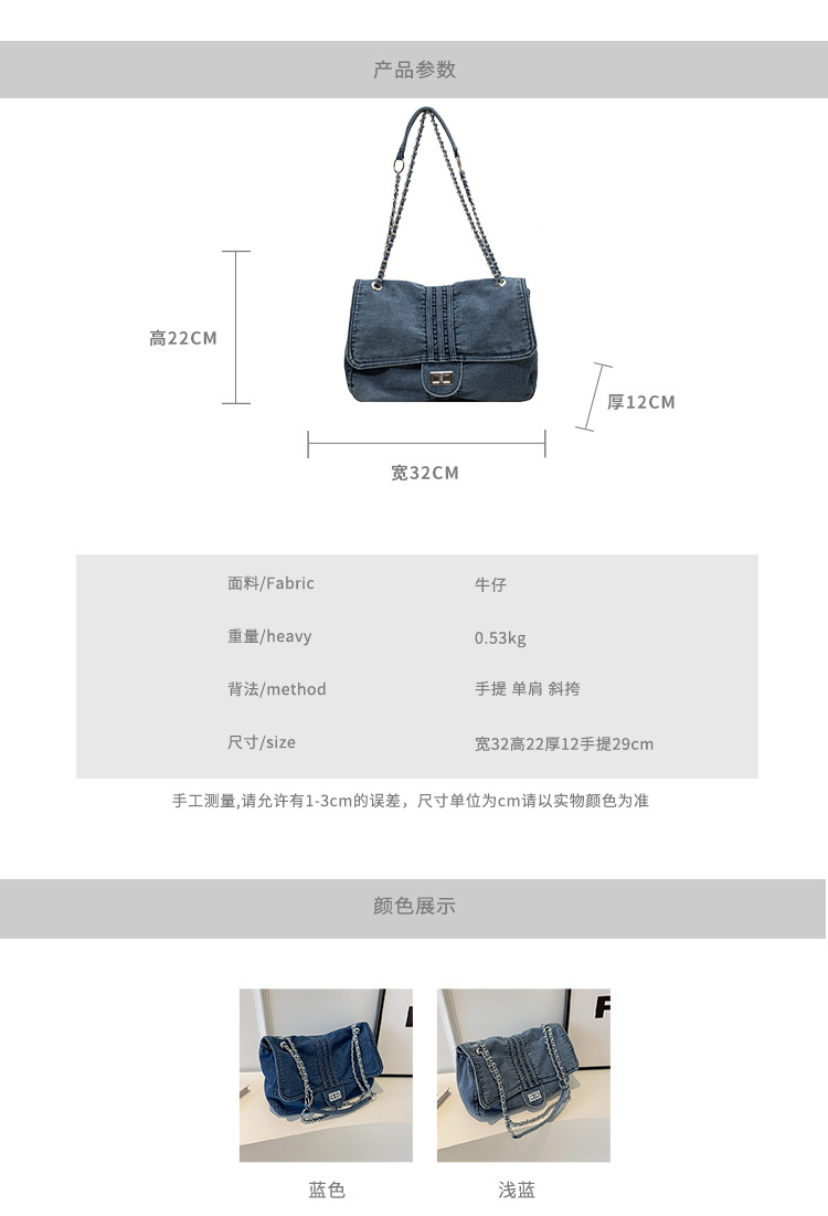 复古休闲牛仔布托特包包女 2024秋新款大容量链条高级感单肩斜挎包