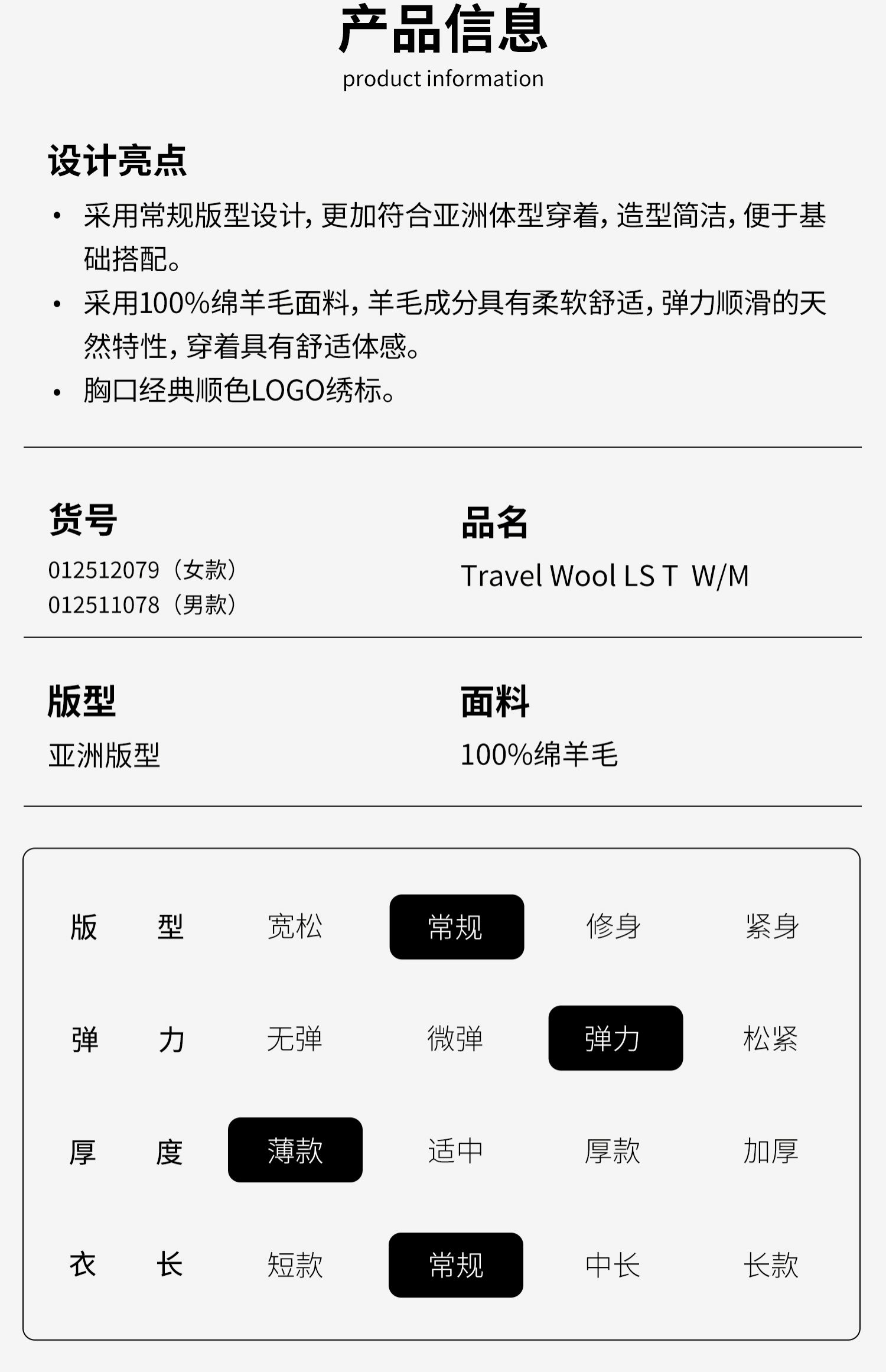 【男女同款】北极狐 户外羊毛长袖T恤衫 2025徒步运动衣012511078