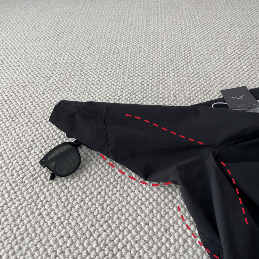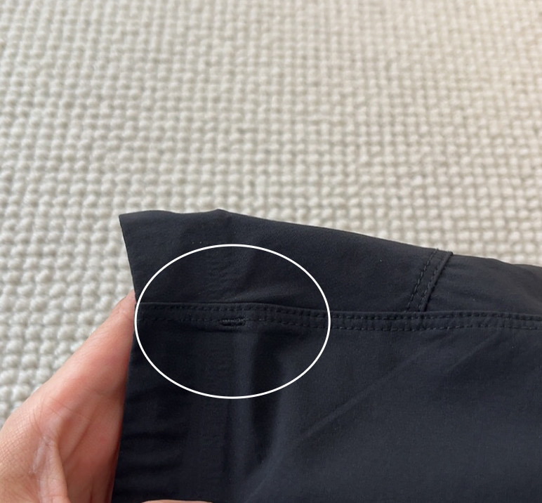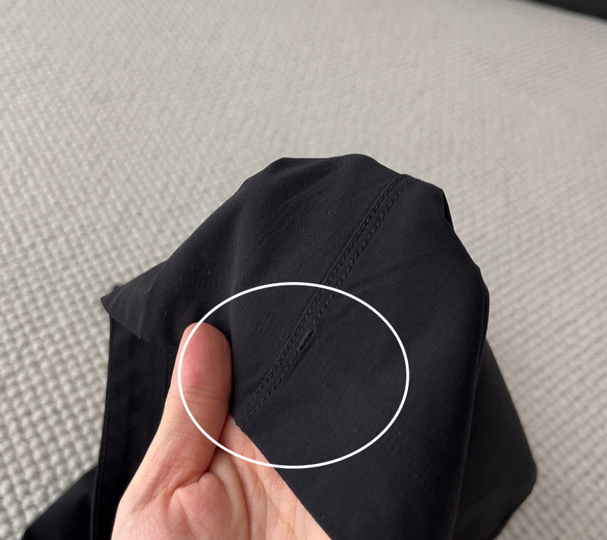 整条裤子全部是无痕压胶加激光来缝缝纫全部都是有斗布的真斗,