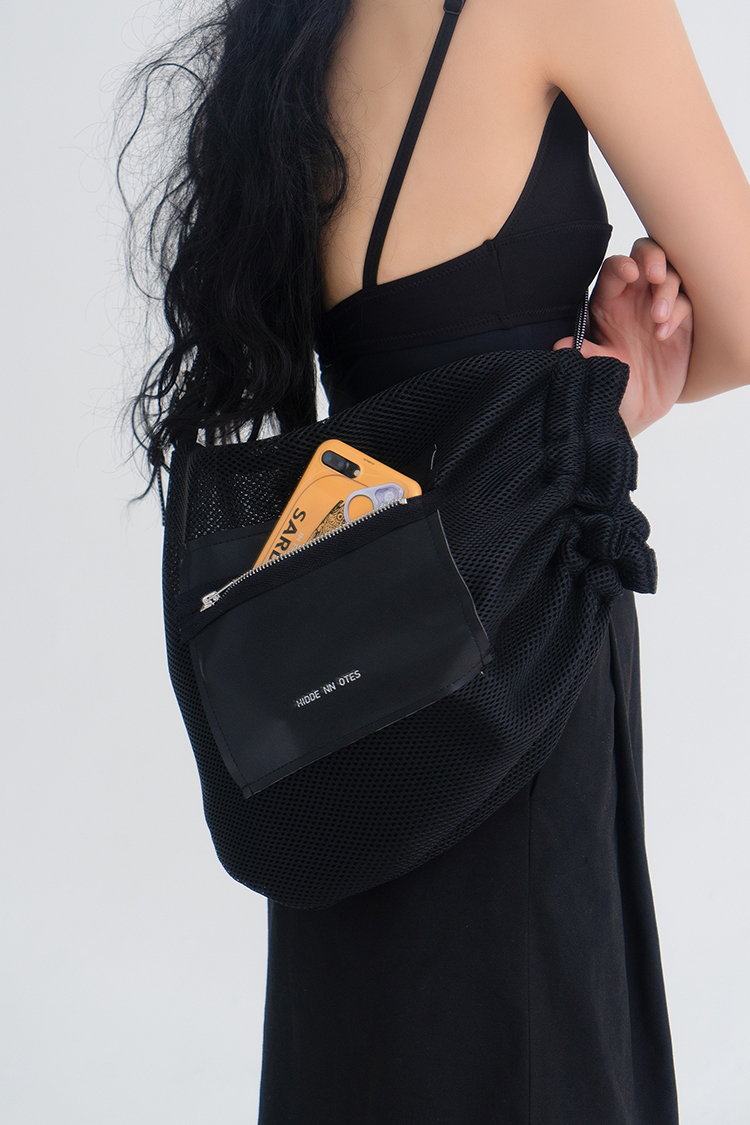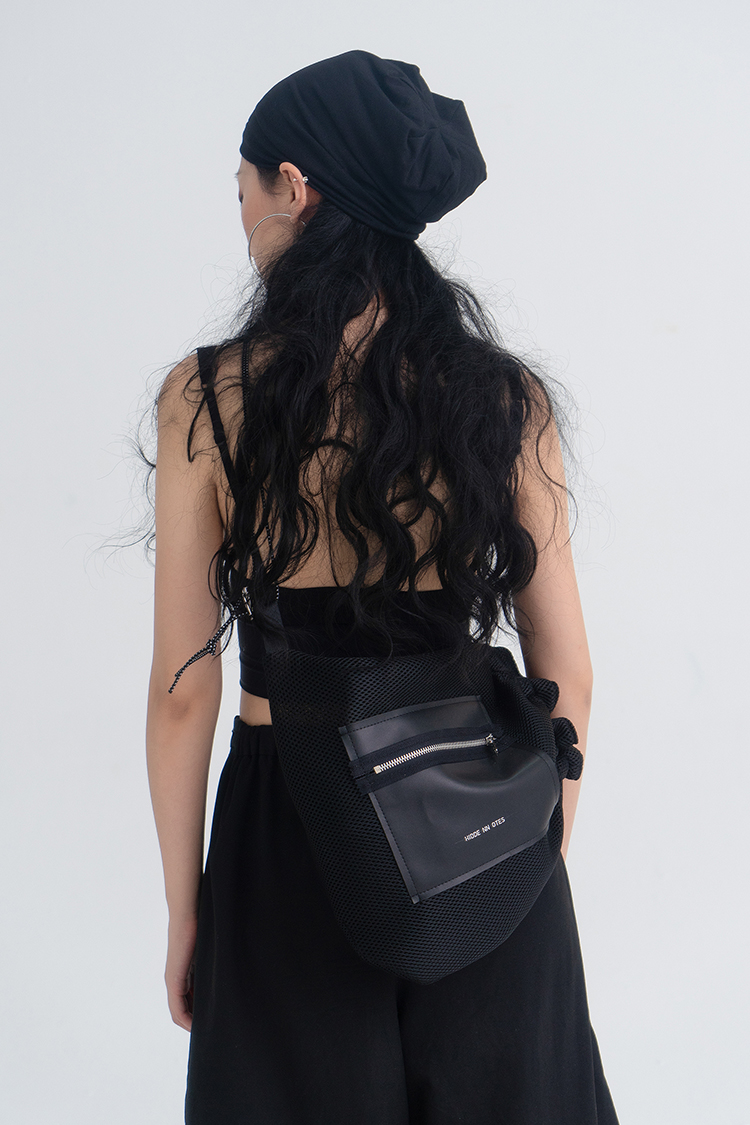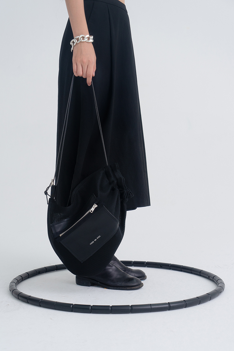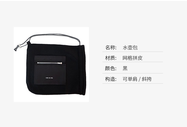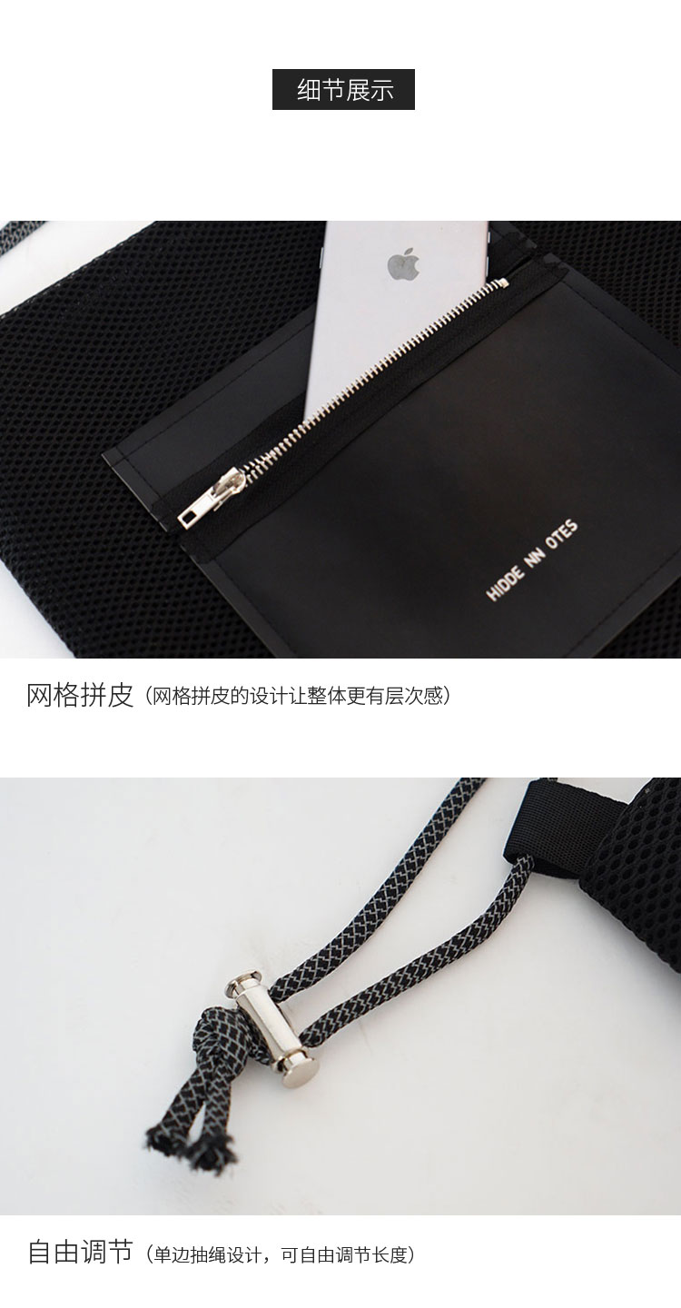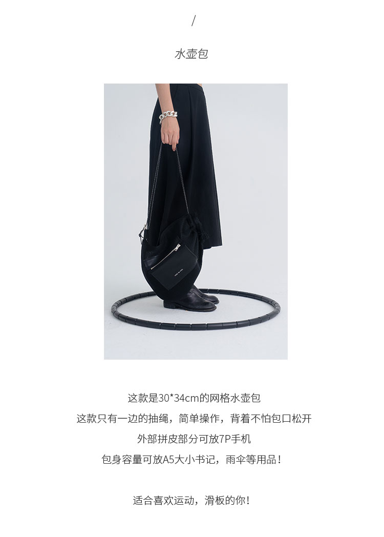 〖HIDDE NN OTES〗原创单肩包 网格抽绳褶皱拼皮运动休闲斜挎包