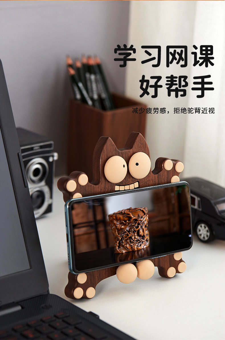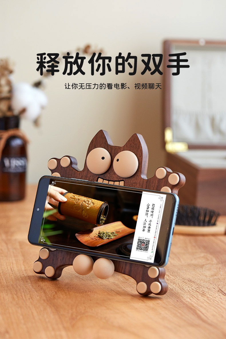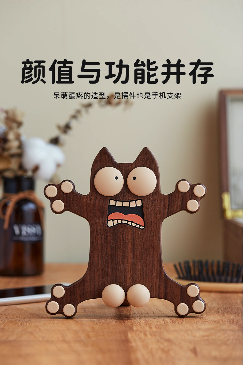 蛋疼猫手机架°胡桃木