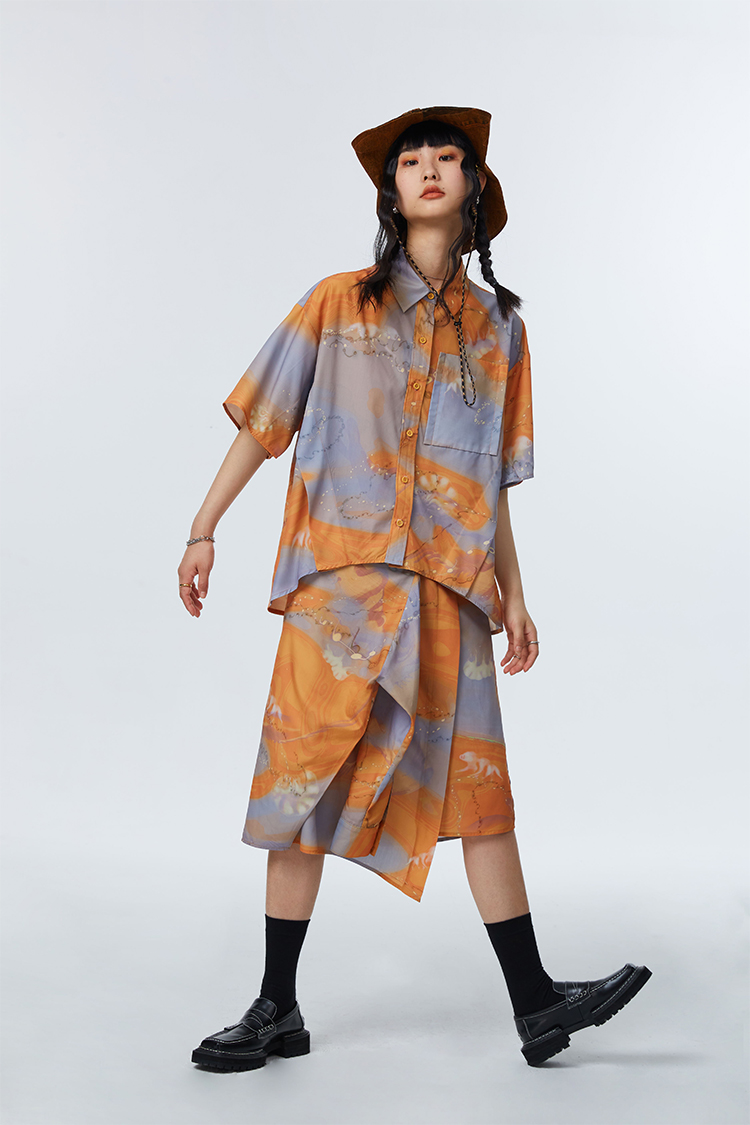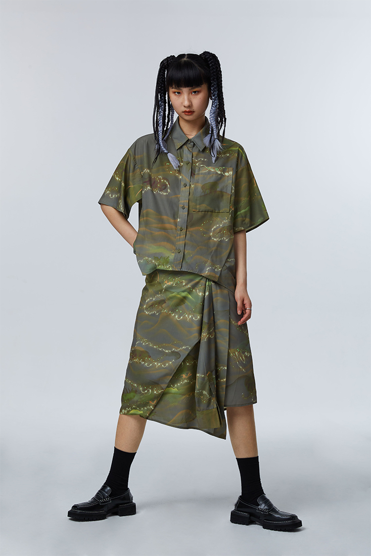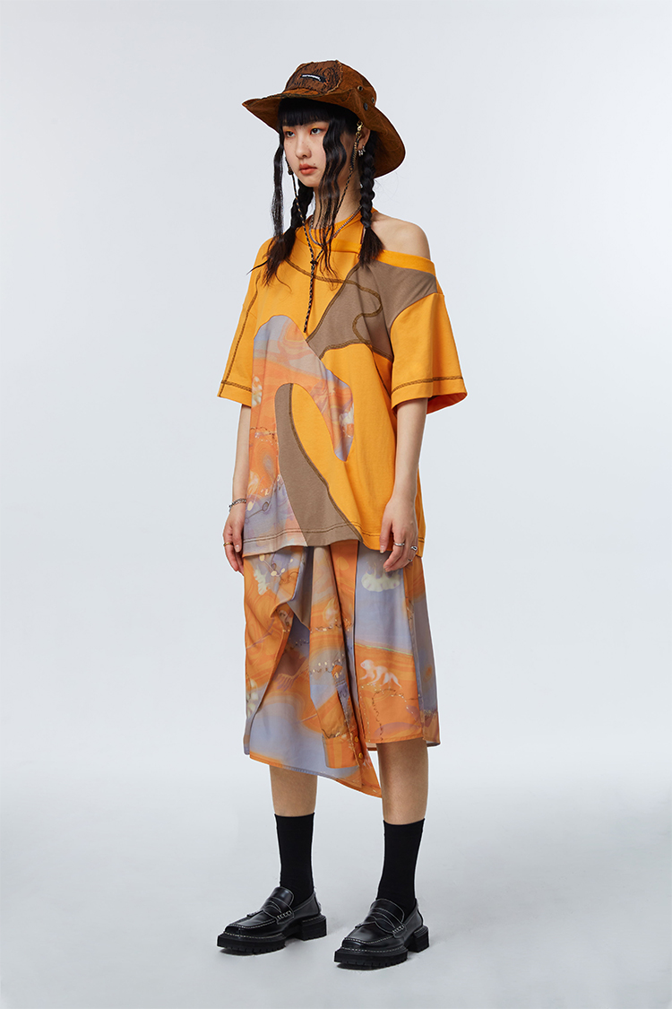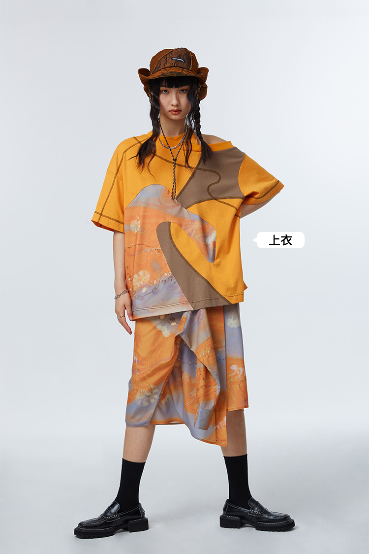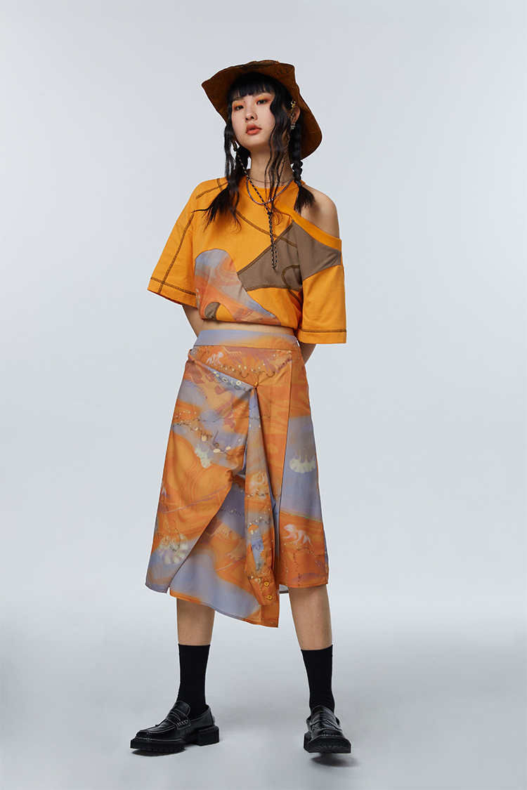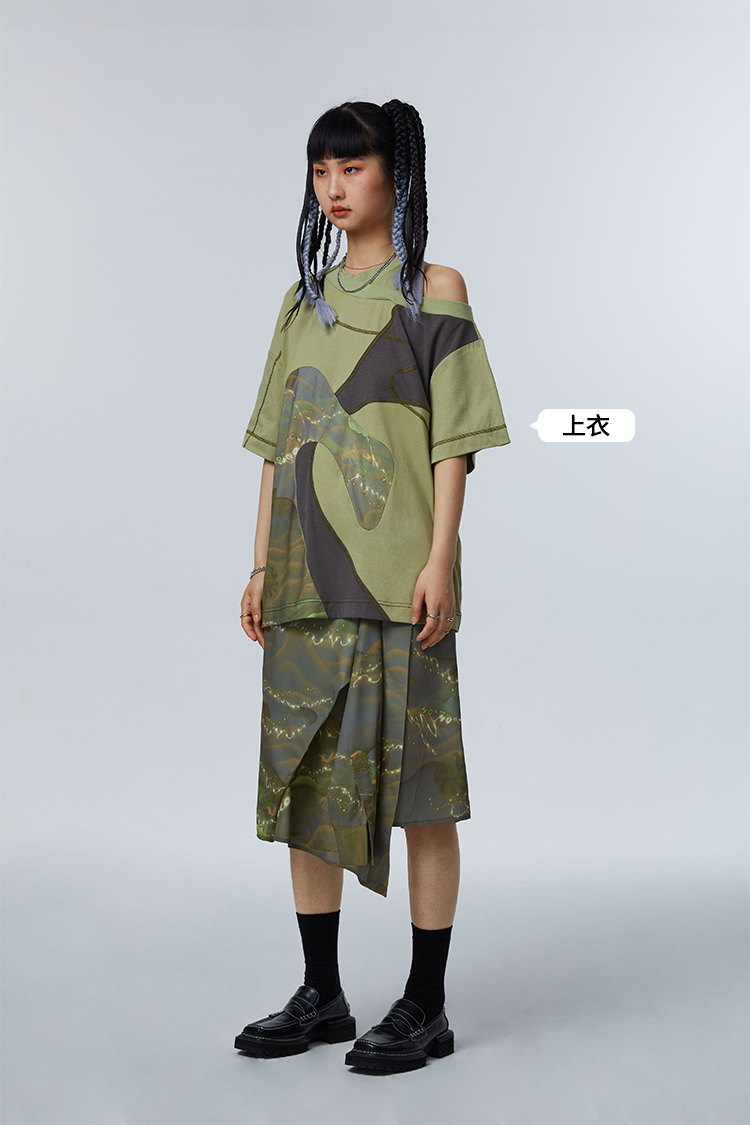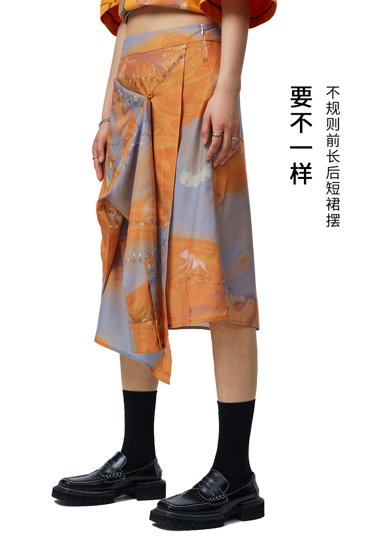 HOLONOMIC「第八大陆」原创设计不规则解构搭片印花半身裙