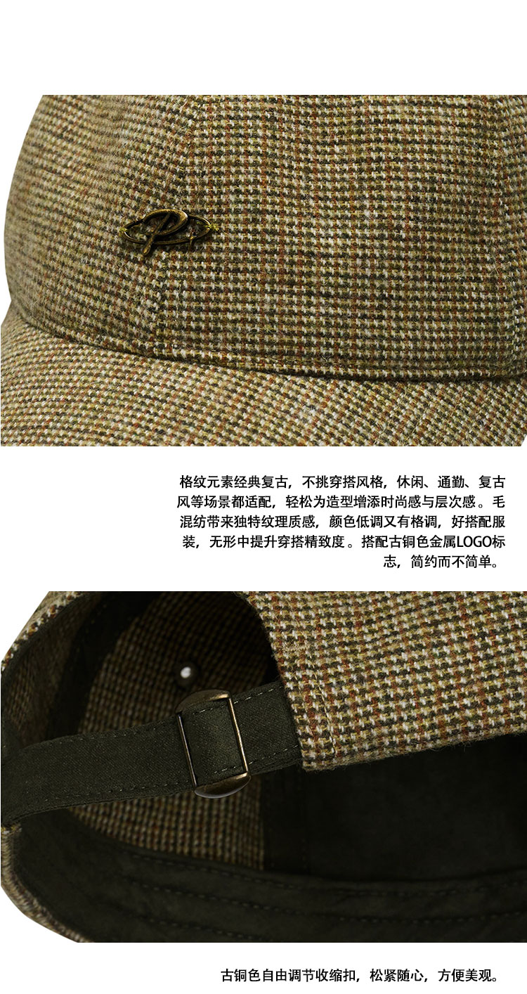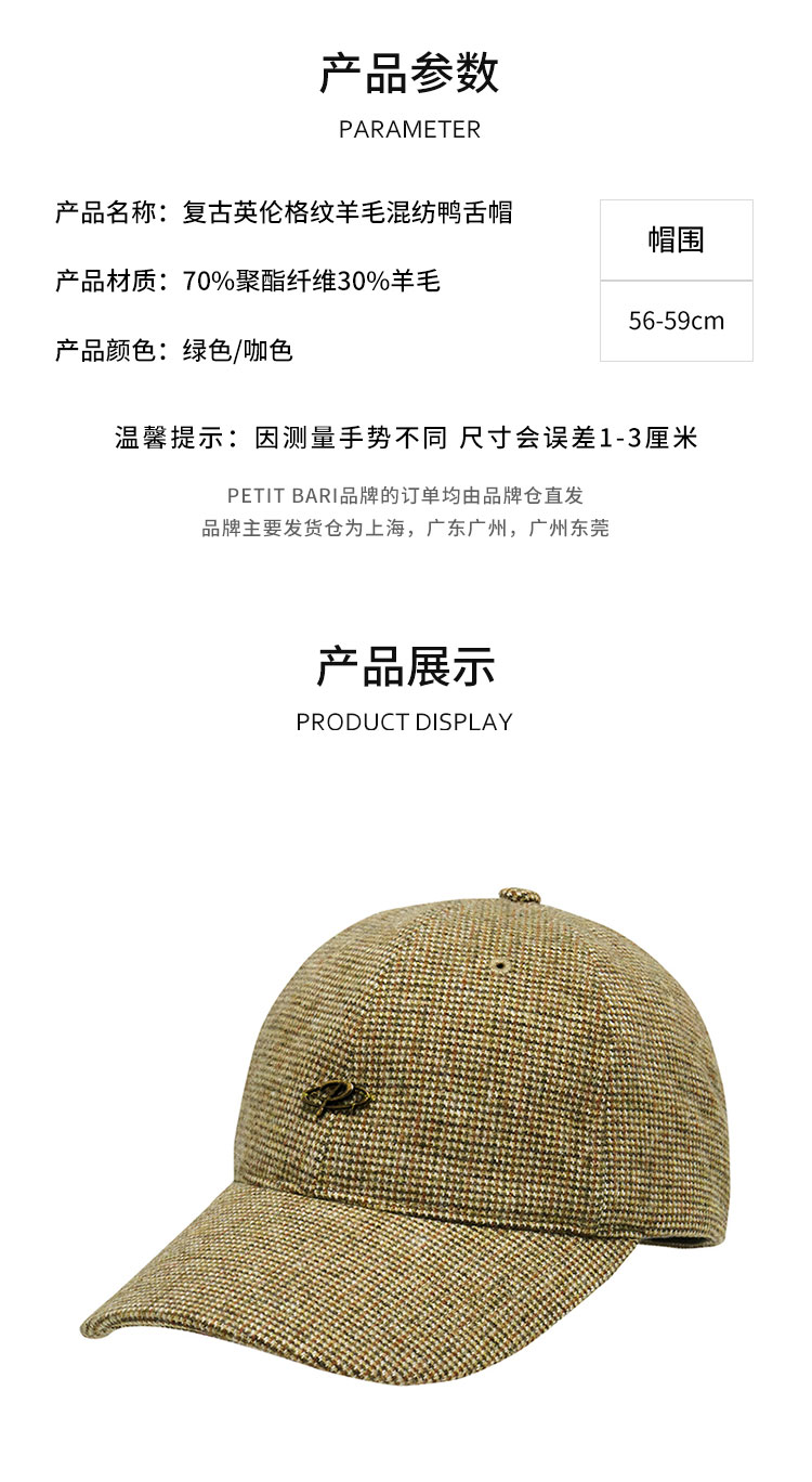 【2件9折】【Petit Bari】(多色)复古英伦格纹羊毛混纺鸭舌帽