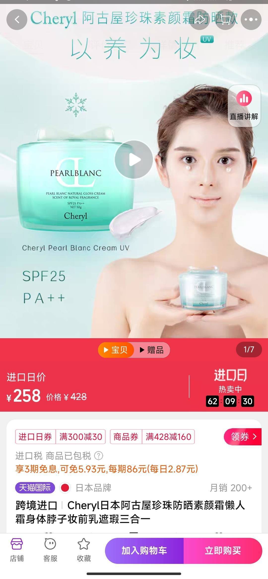 日本cheryl阿古屋珍珠素颜霜,真人间瑰宝!