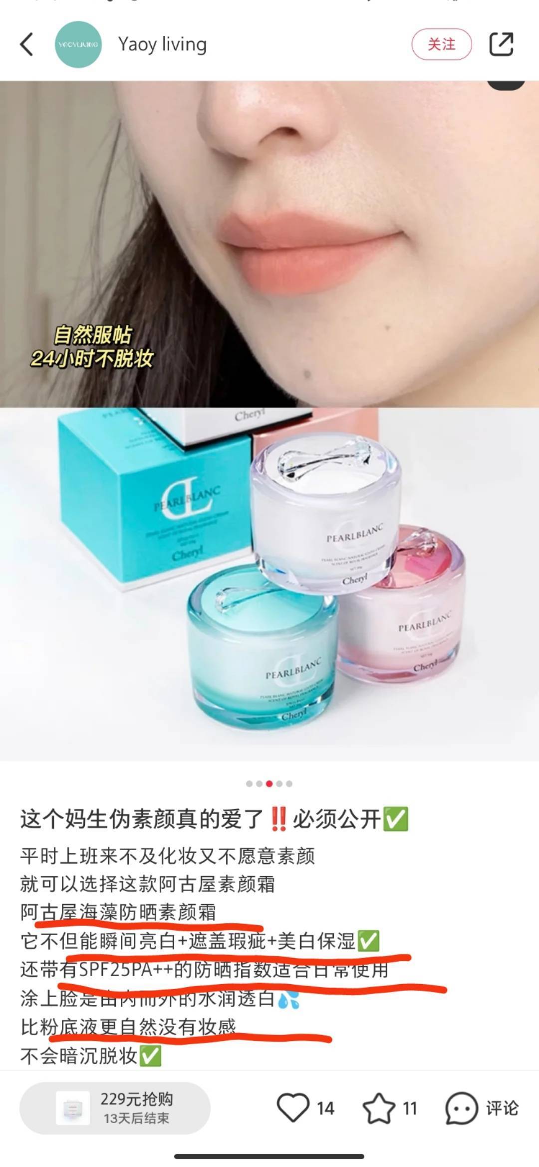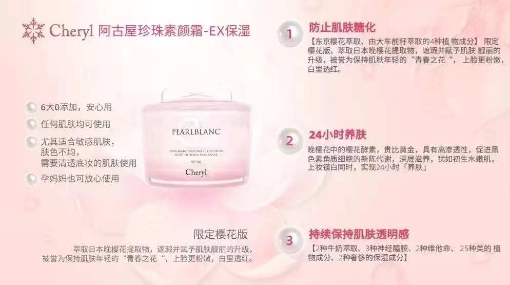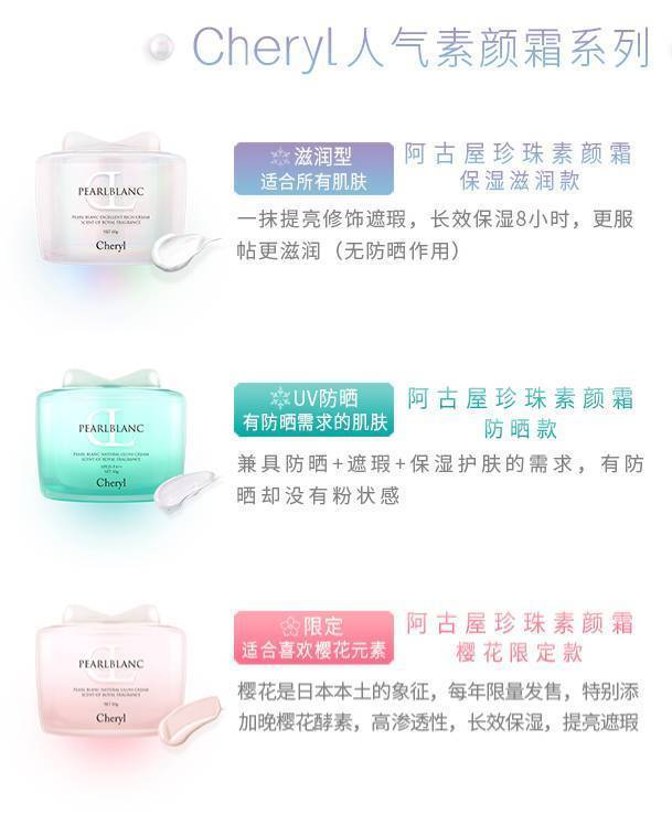 Cheryl阿古屋珍珠素颜霜来自日本自然堂Japan Beauty研究所