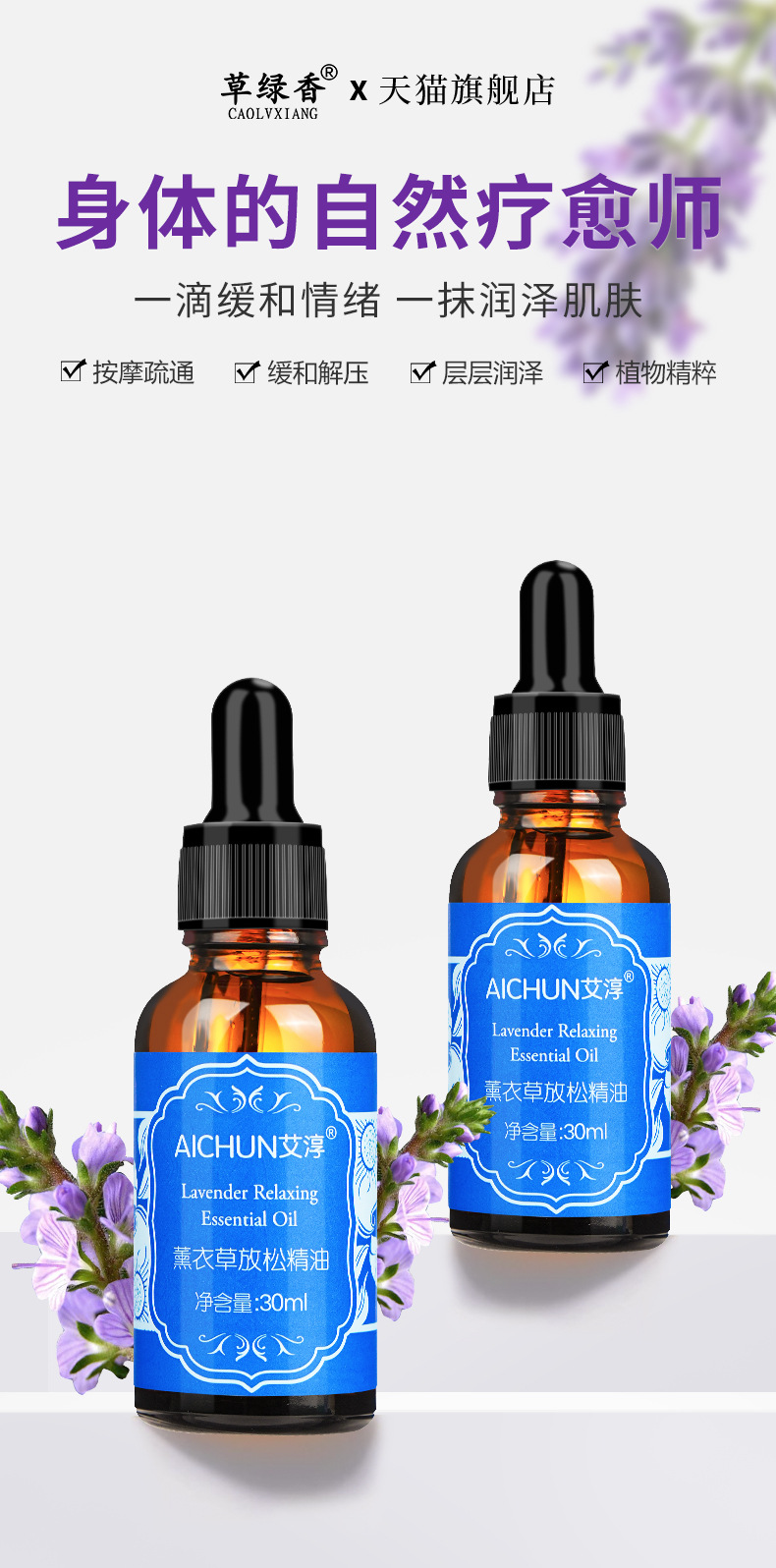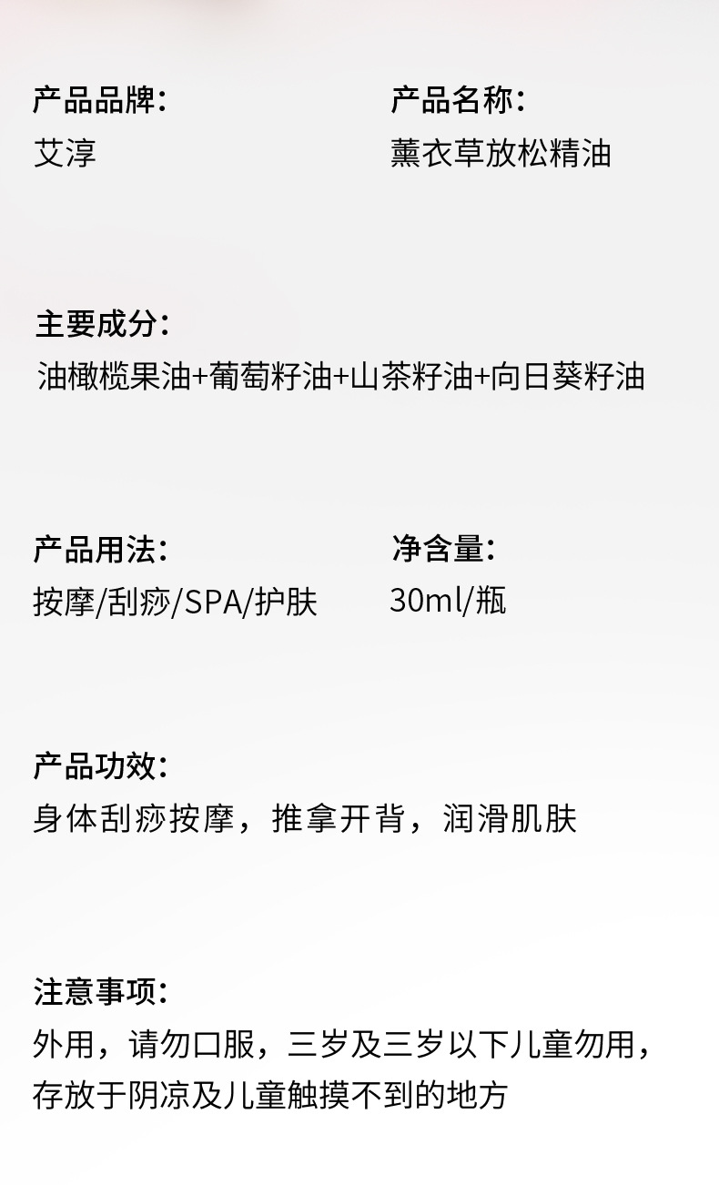 草绿香30ml薰衣草面部按摩精油温和发热植物精油全身通经络肩颈 商品图4