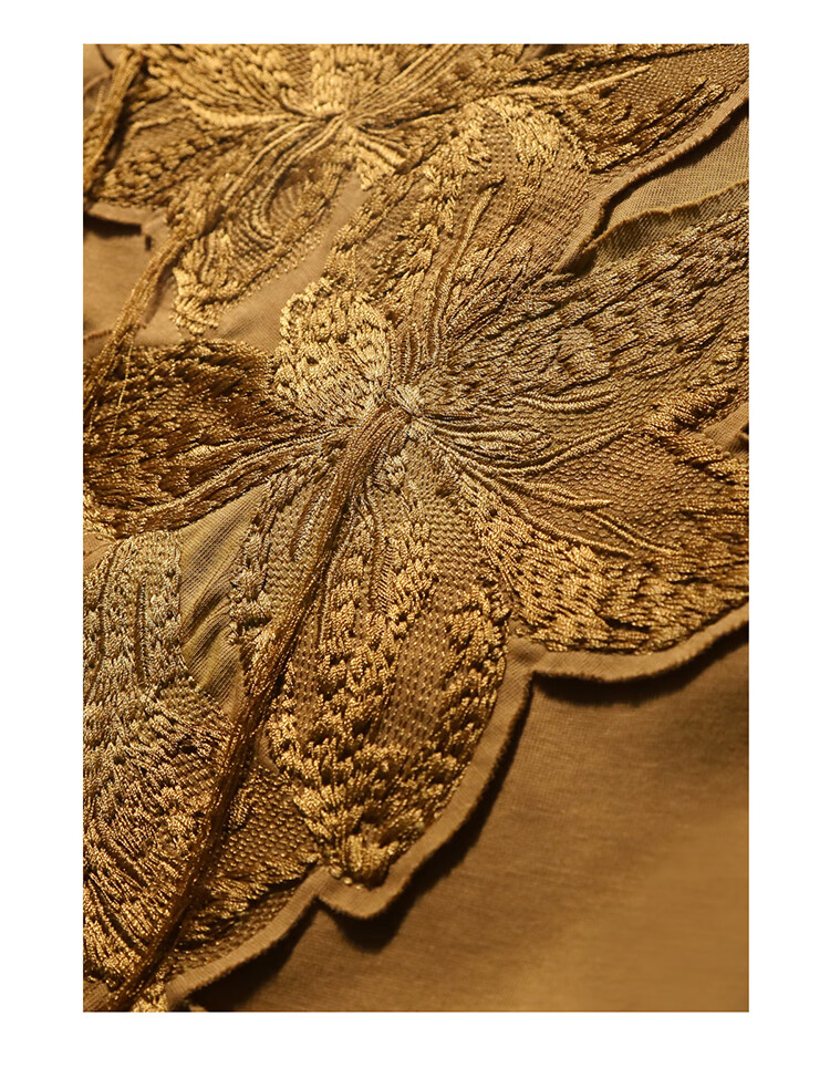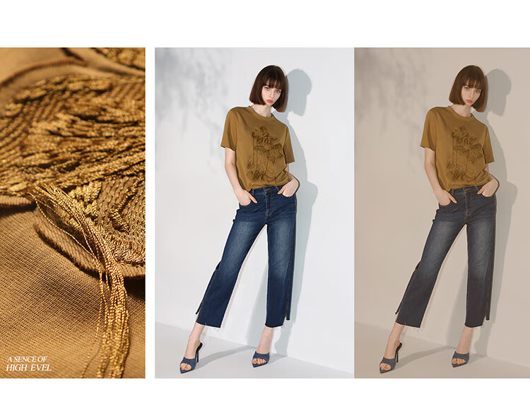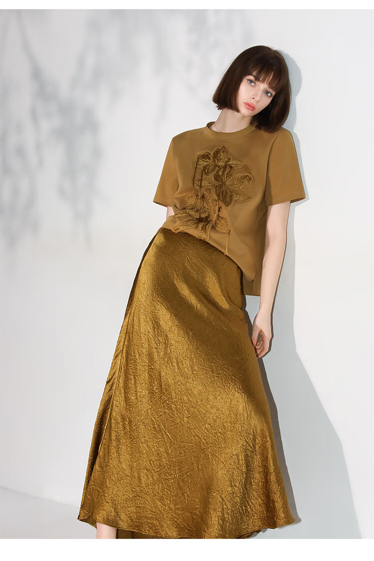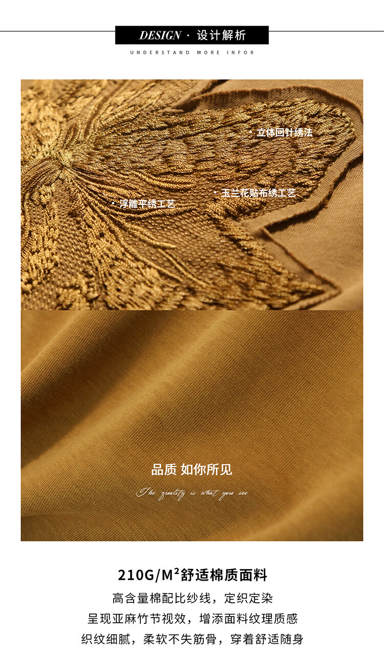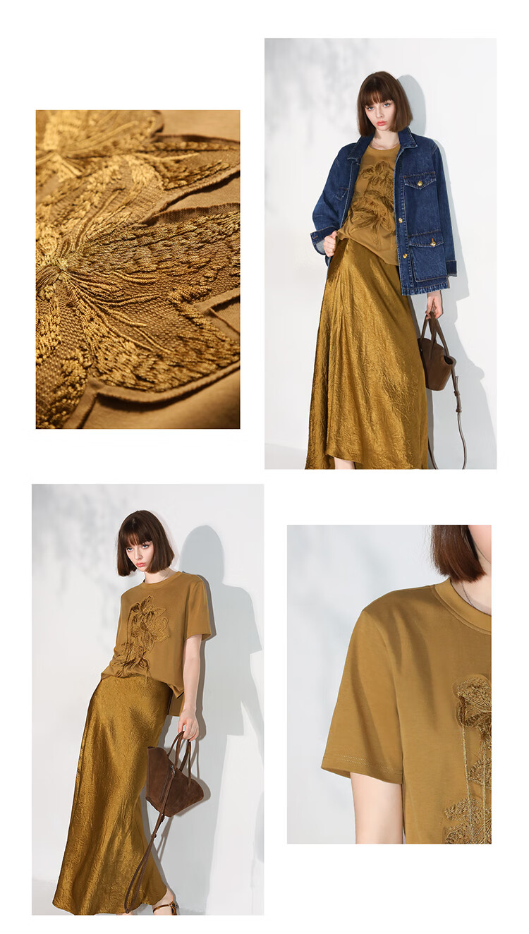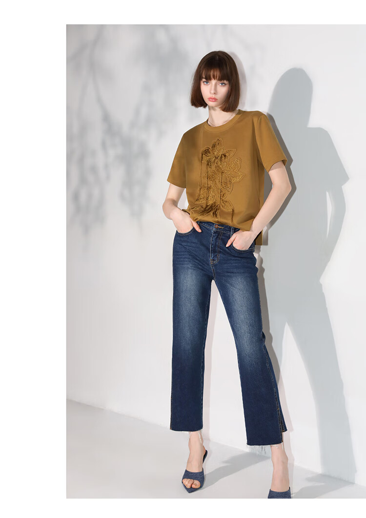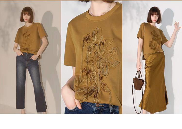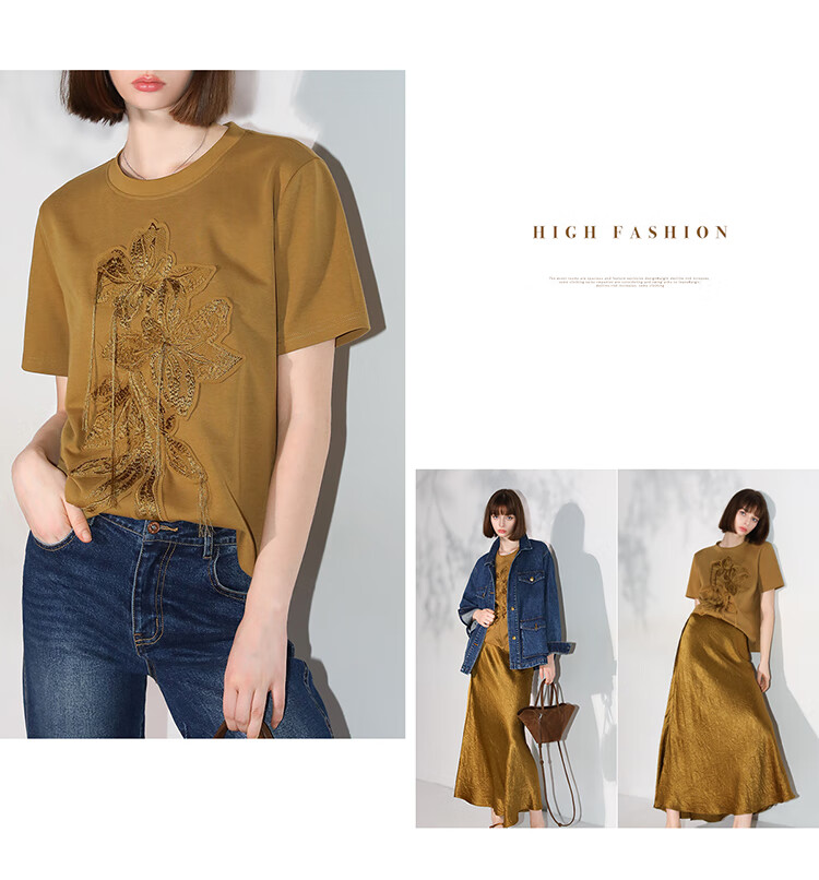 COCOBELLA立体回针流苏刺绣短袖T恤女质感通勤圆领上衣TS3012