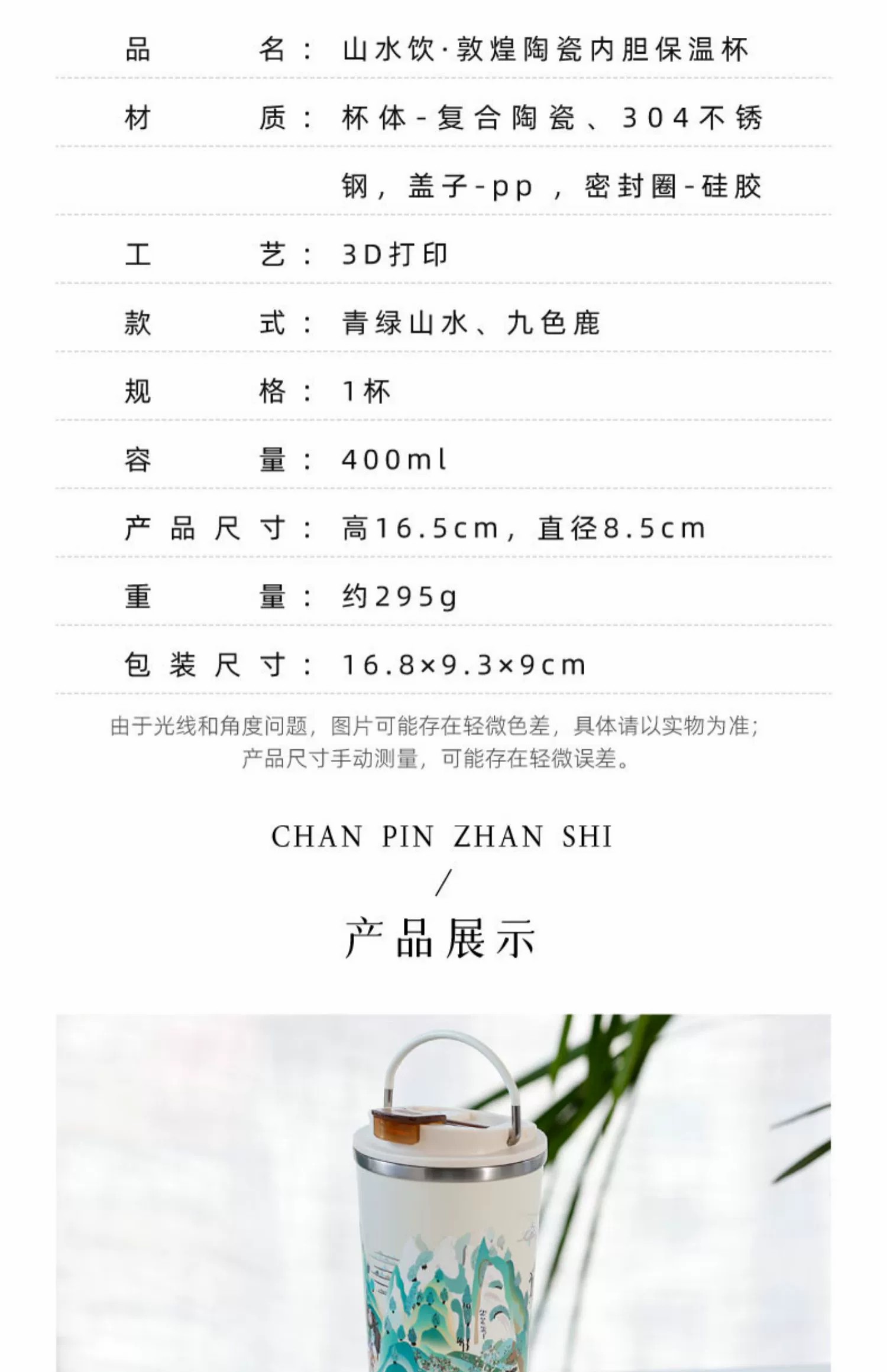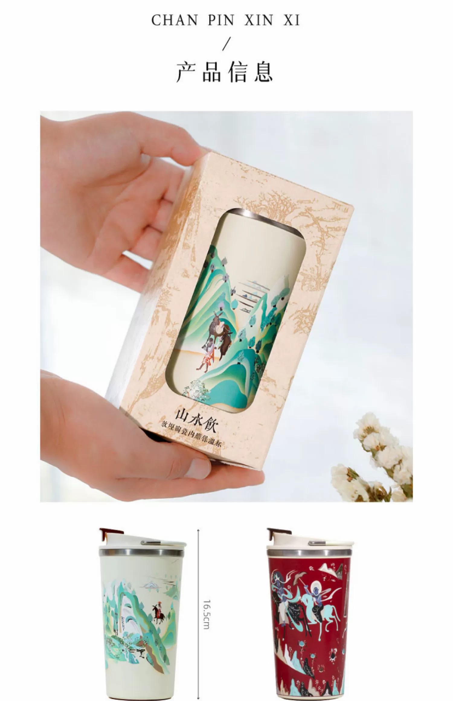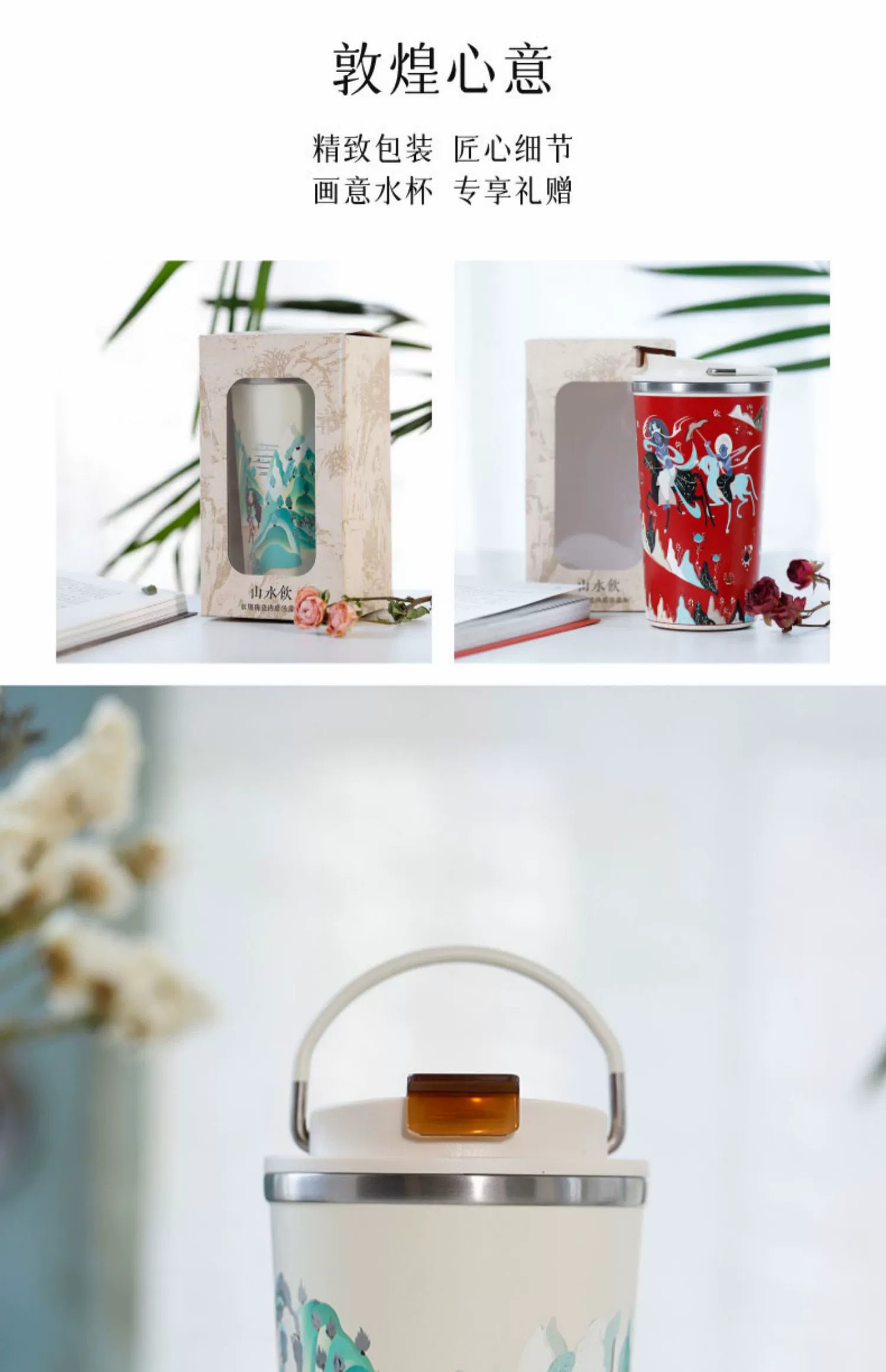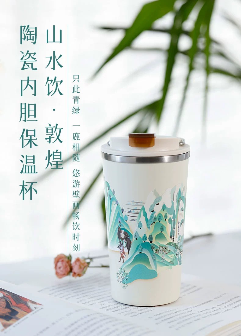 敦煌研究院 山水饮陶瓷内胆保温杯 便携不锈钢杯子博物馆文创礼物