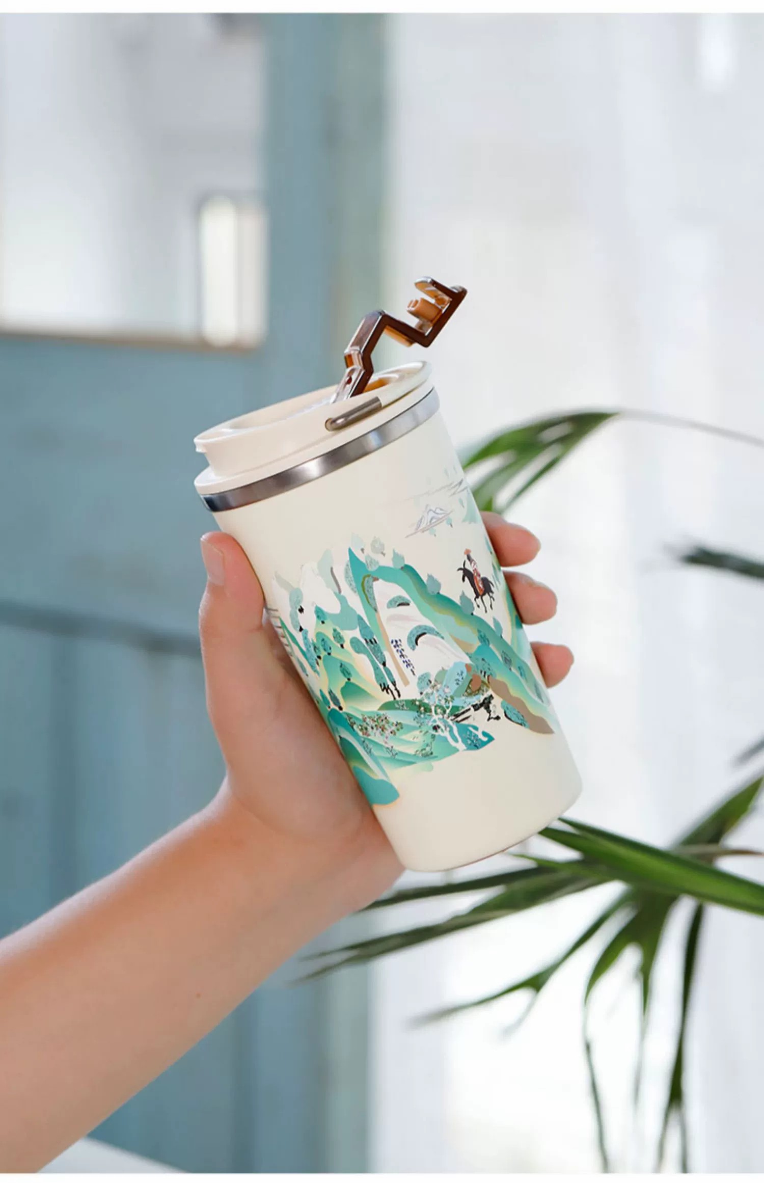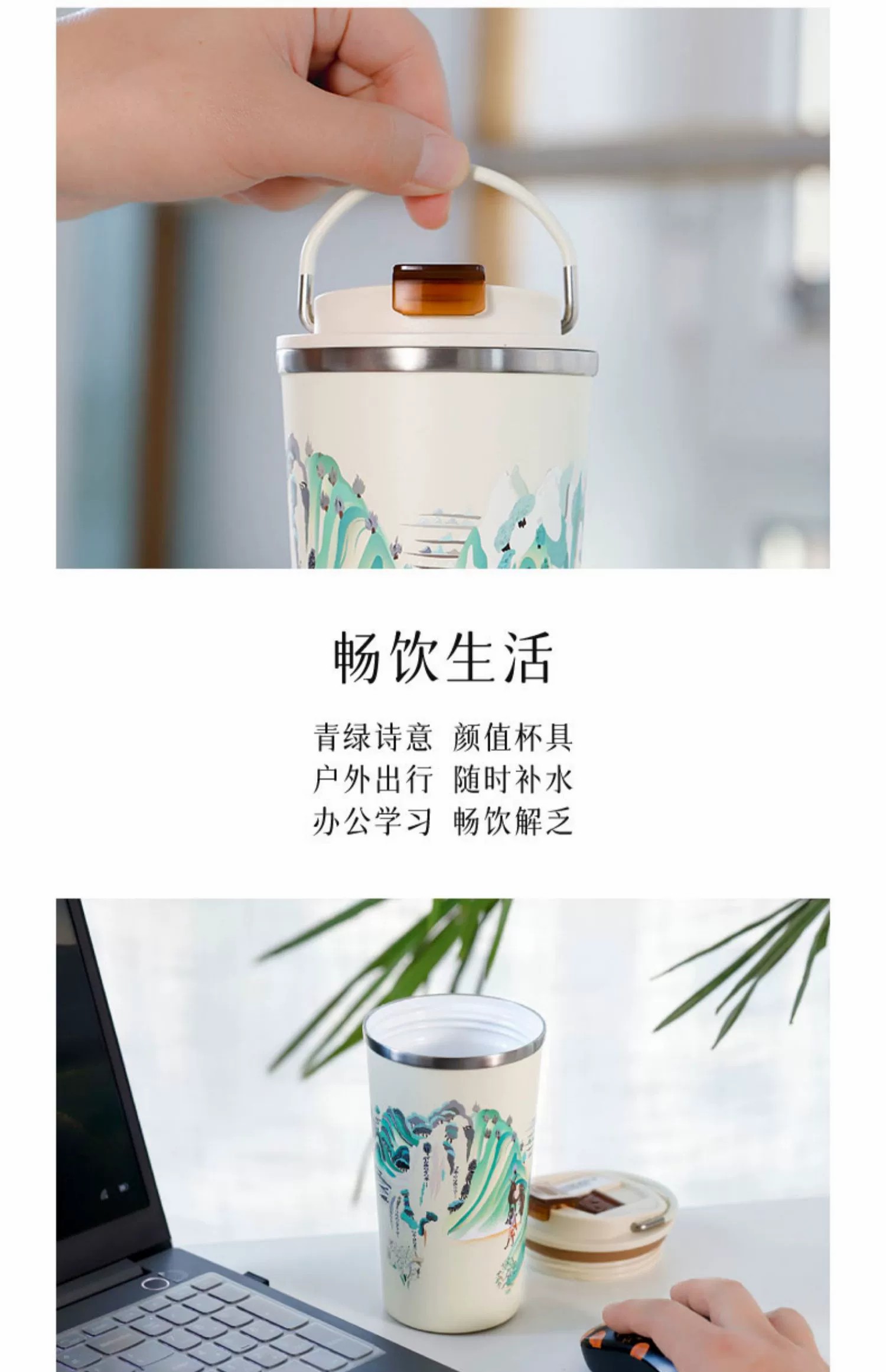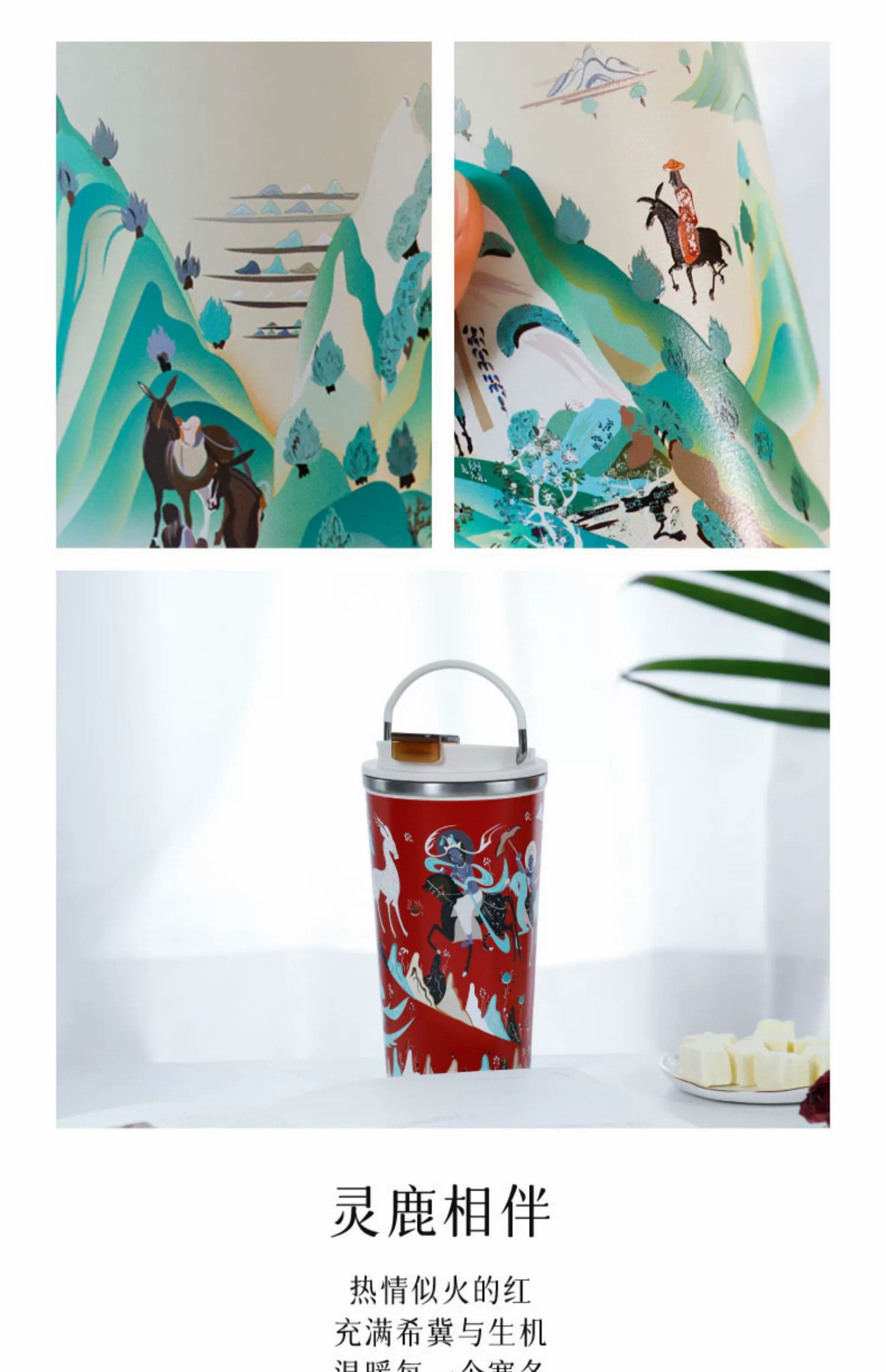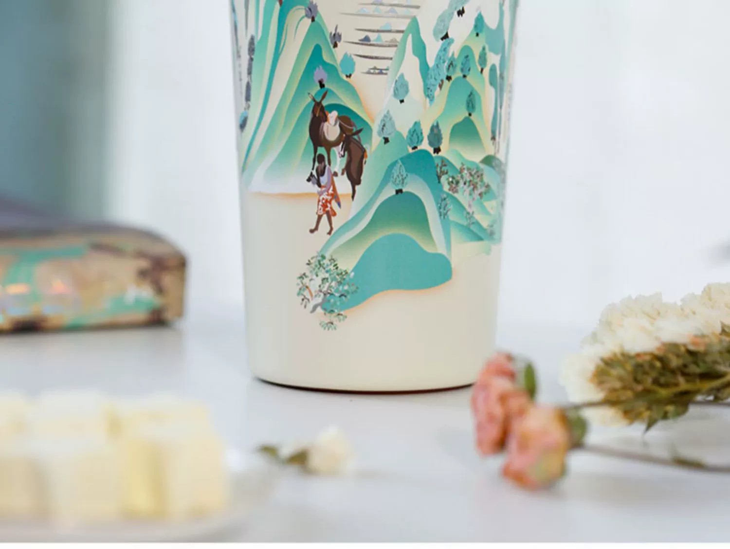 敦煌研究院 山水饮陶瓷内胆保温杯 便携不锈钢杯子博物馆文创礼物