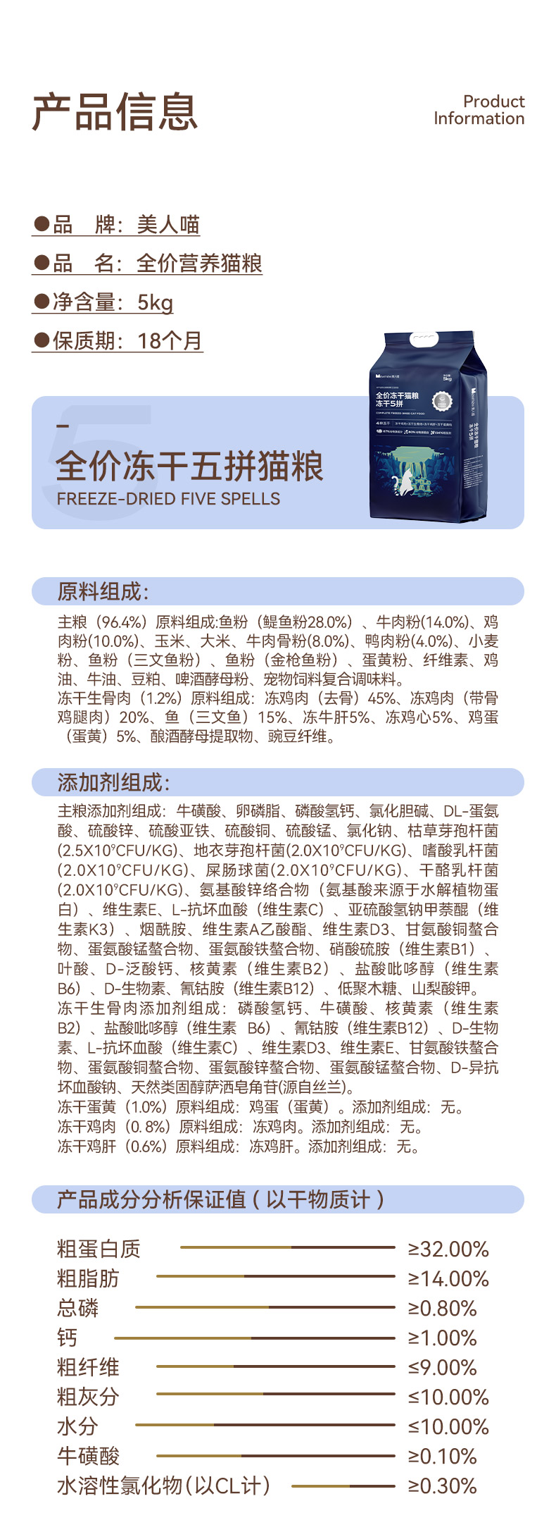 美人喵 蛋黄酥全价猫粮 5kg(10斤装) 添加鱼油牛磺酸靓毛增肥发腮