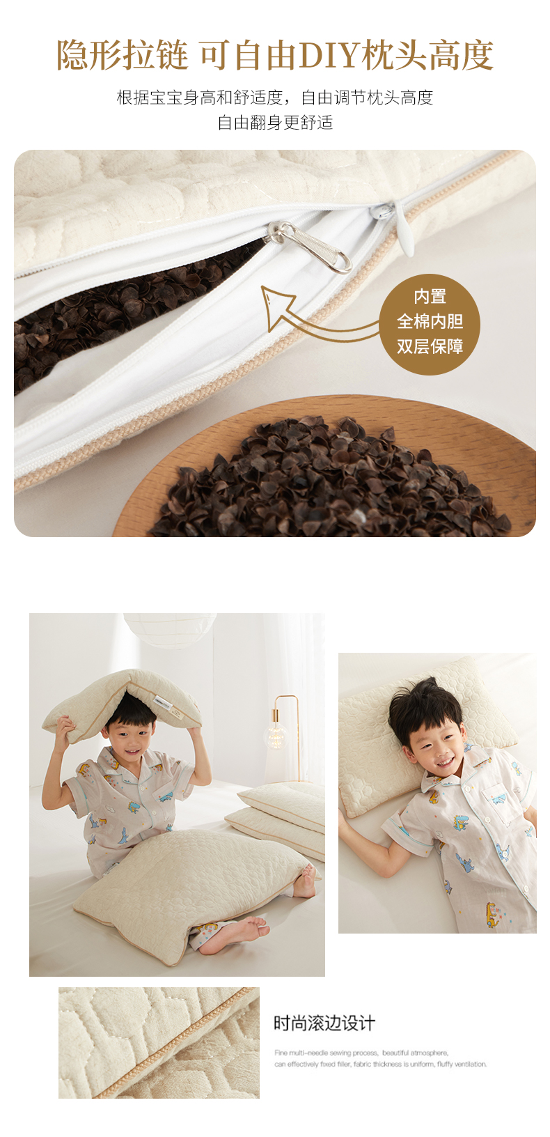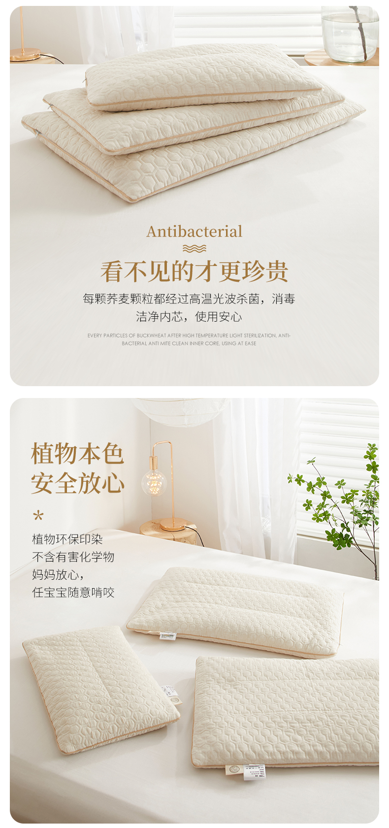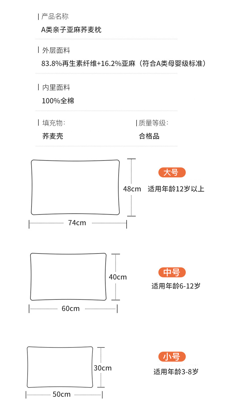 自然醒A类亲子亚麻荞麦枕全荞麦壳枕芯成人低枕家用护颈专用睡眠硬枕XK