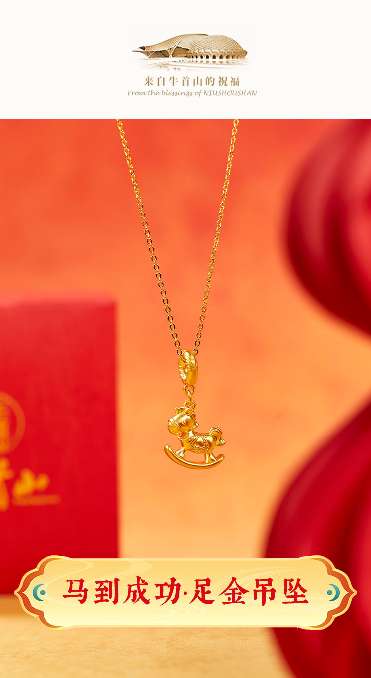 牛首山文创马到成功足金吊坠吉祥如意黄金饰品送礼佳品