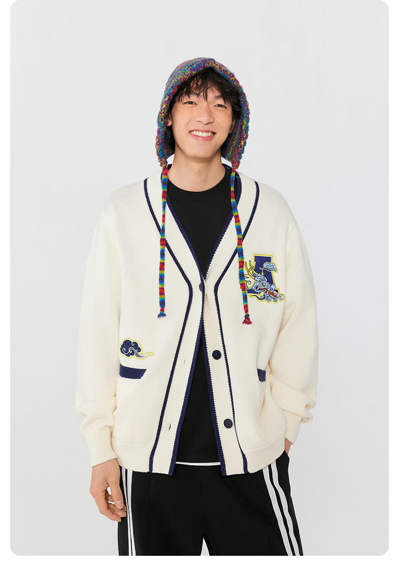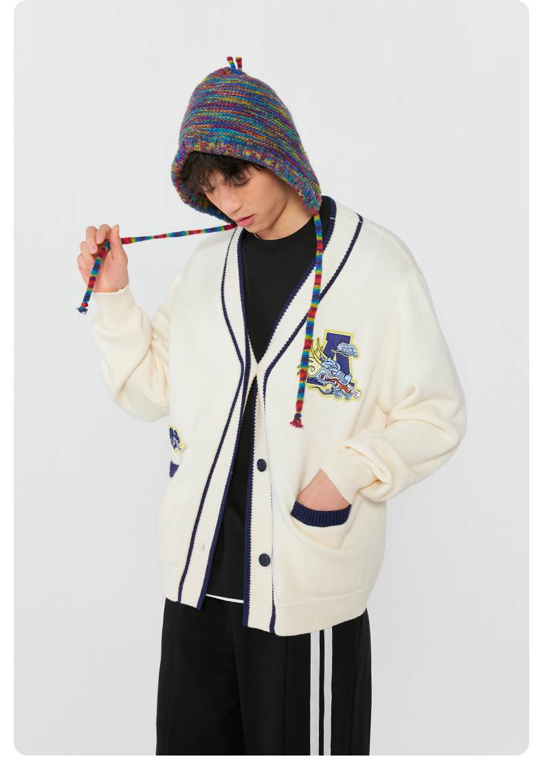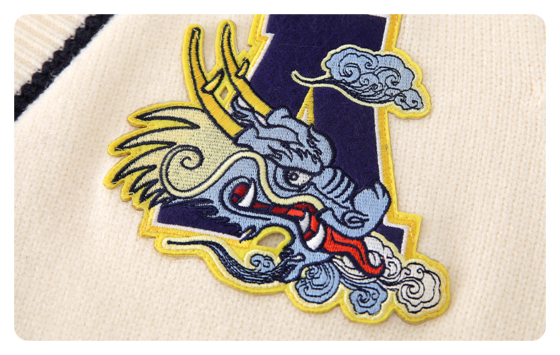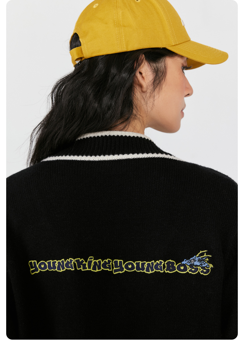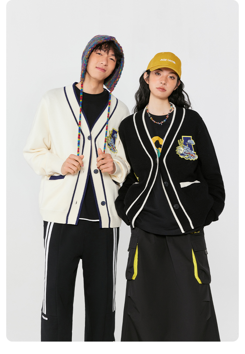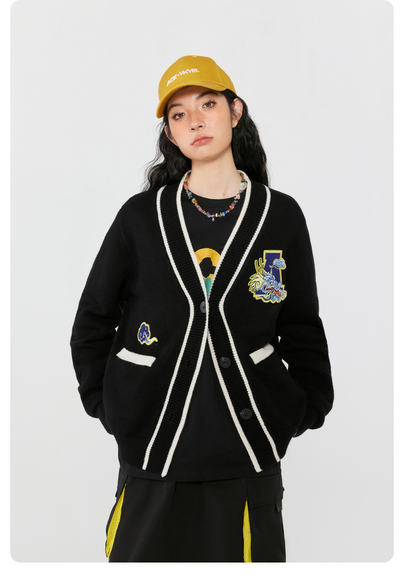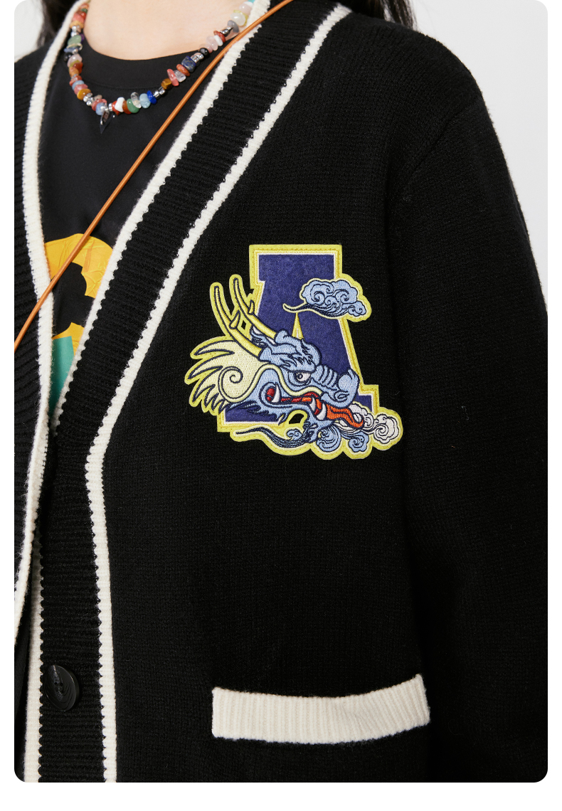 YKYB新款2025春龙年刺绣徽章图案针织开衫男女设计感撞色针织外套
