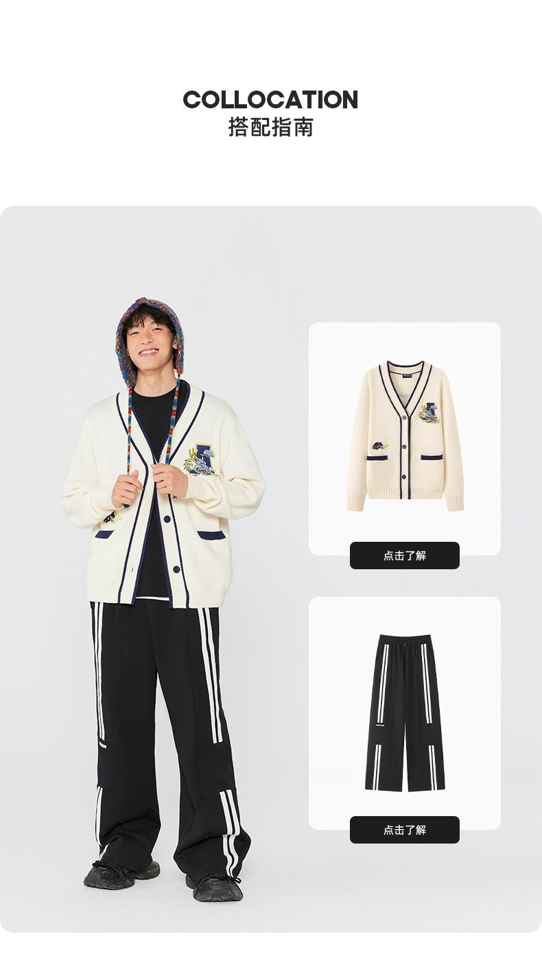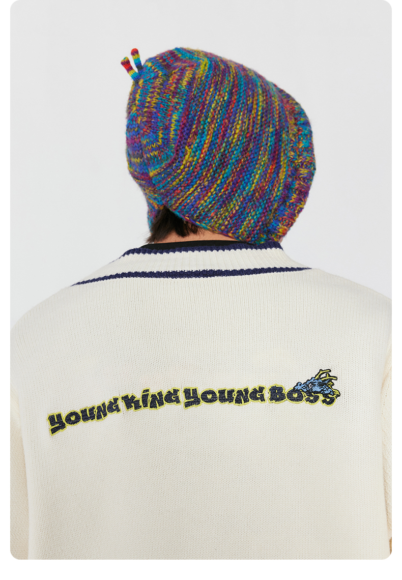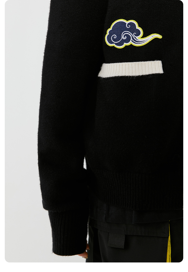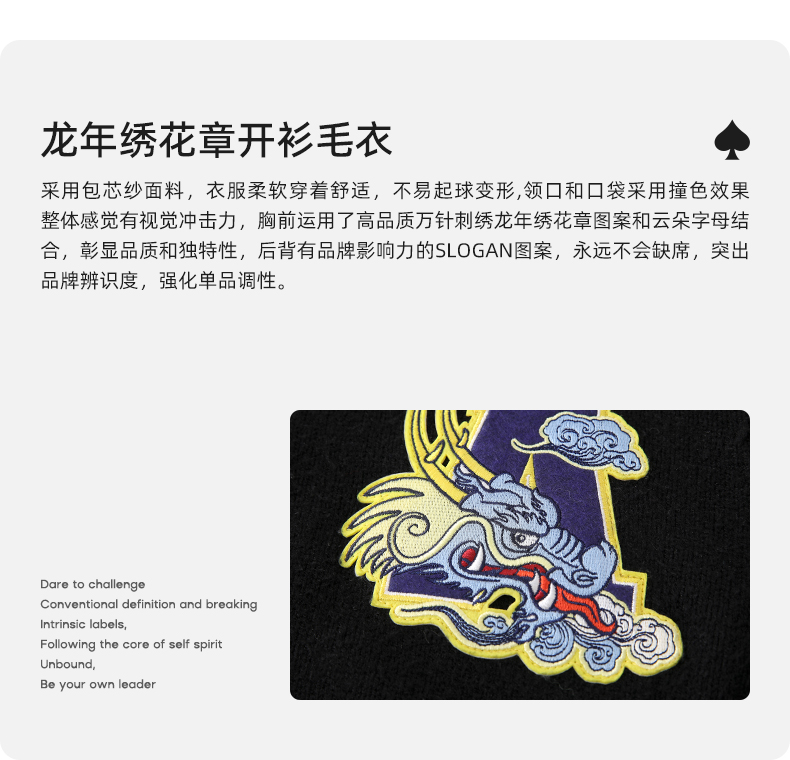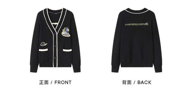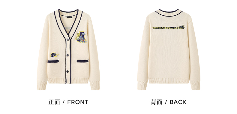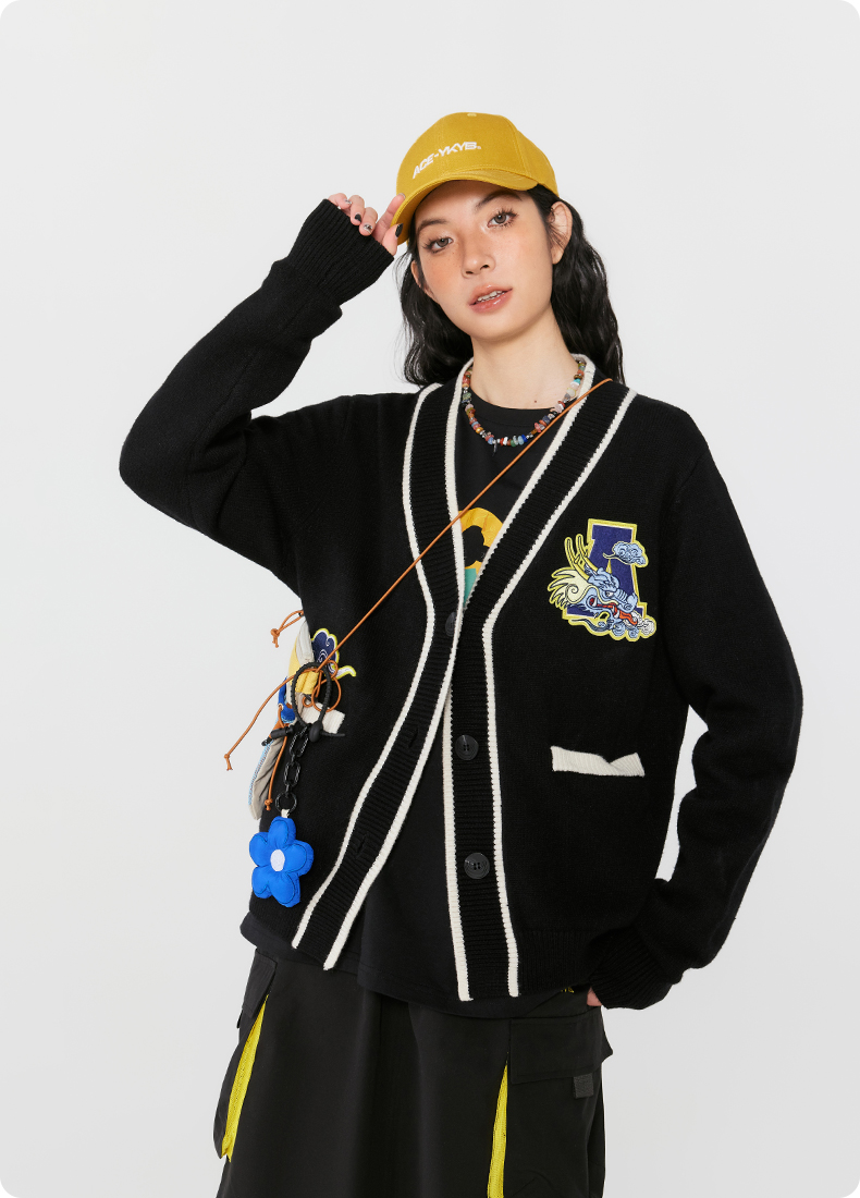 YKYB新款2025春龙年刺绣徽章图案针织开衫男女设计感撞色针织外套